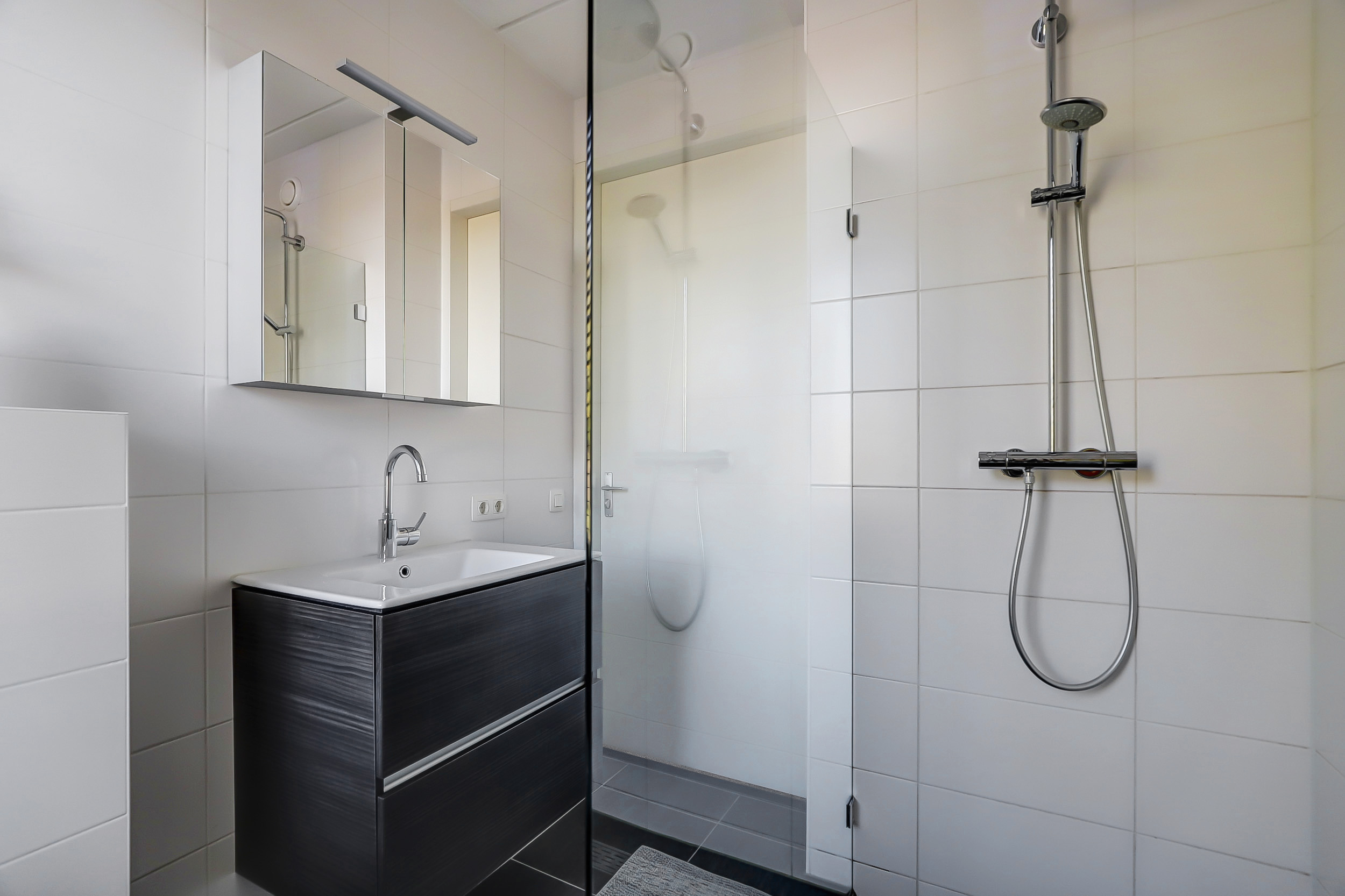 1e verdieping: overloop, 3 slaapkamers en badkamer voorzien van een inloopdouche, wandcloset en wastafel met meubel.
