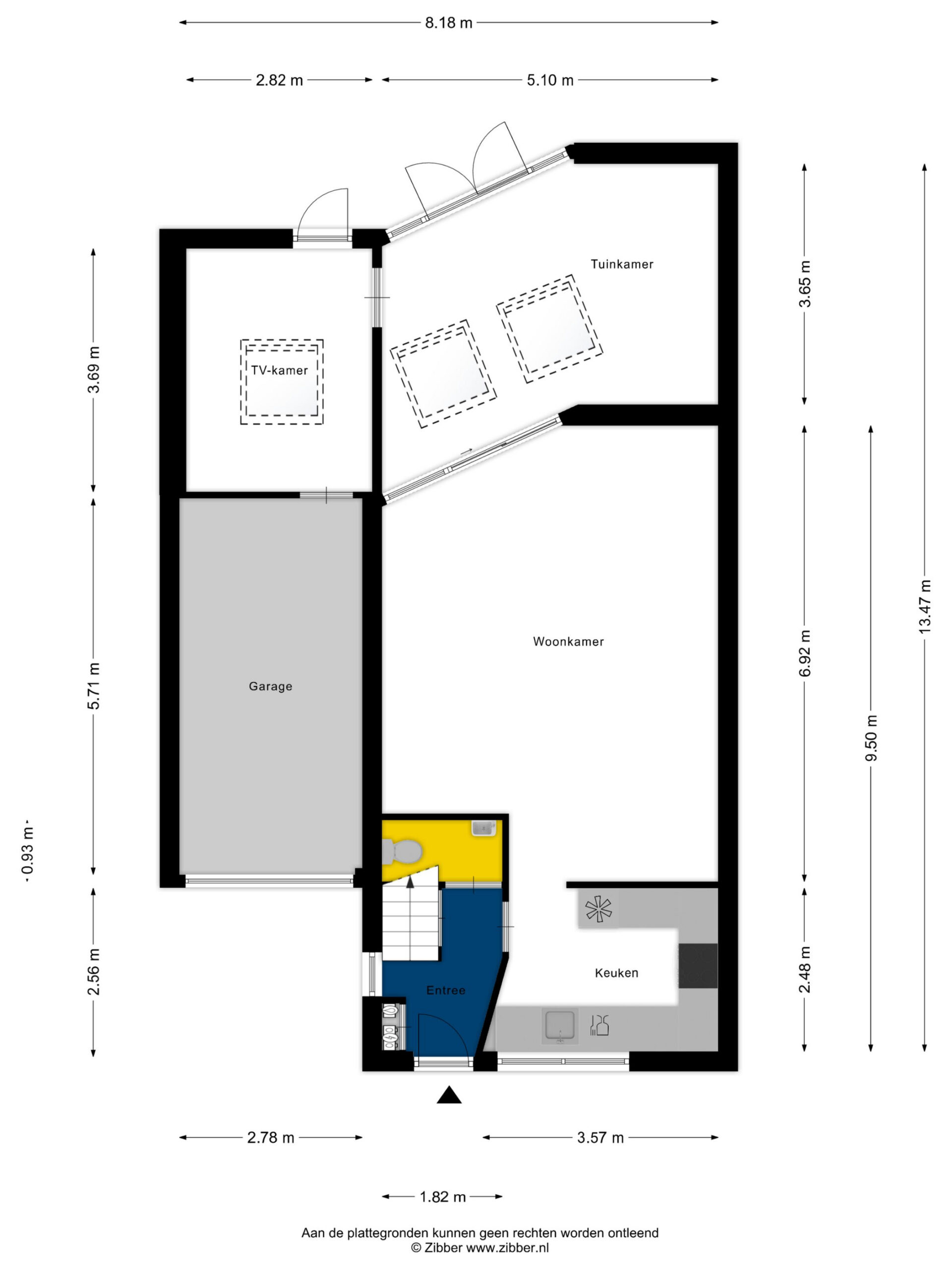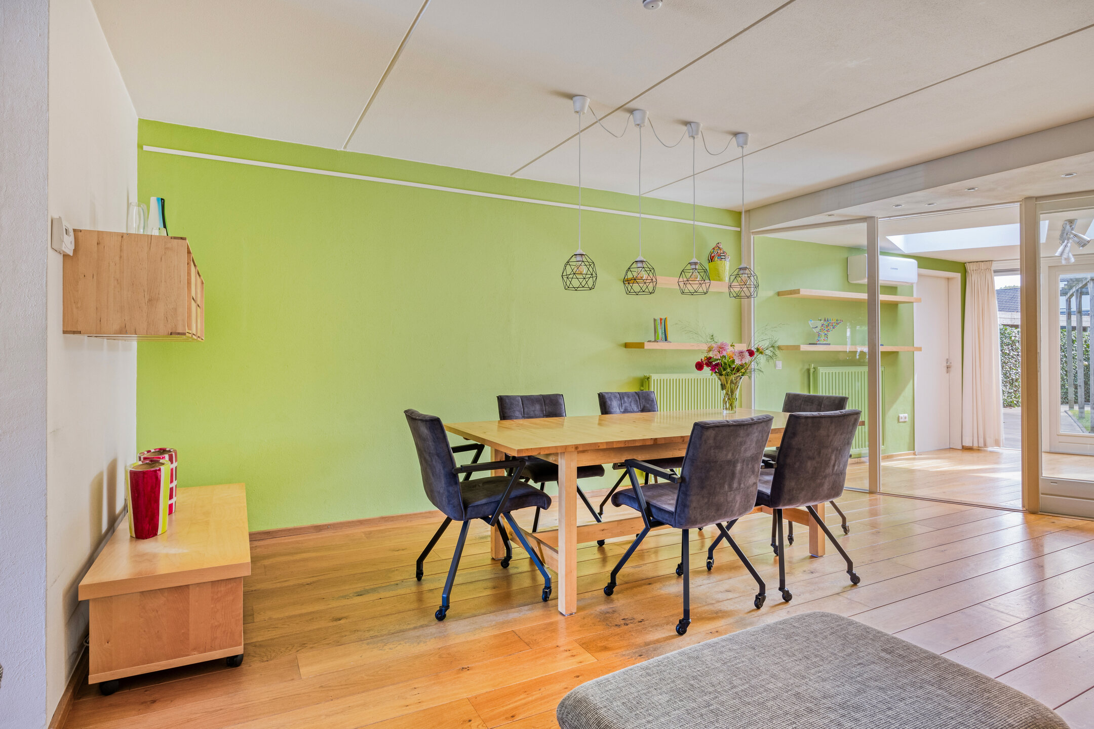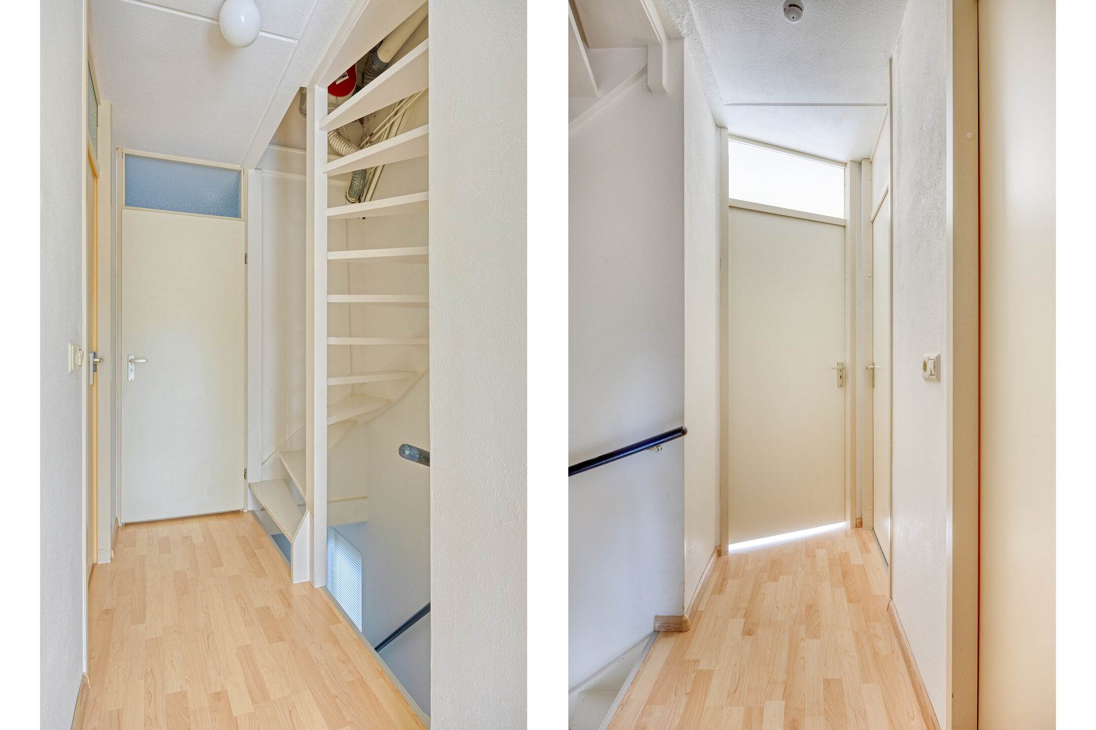 Begane grond: hal met meterkast en toilet met fonteintje. Een leuke en verrassende indeling met halfopen keuken, de centraal gelegen woonkamer, aansluitend een aangebouwde tuinkamer en tv-kamer met toegang tot de garage.