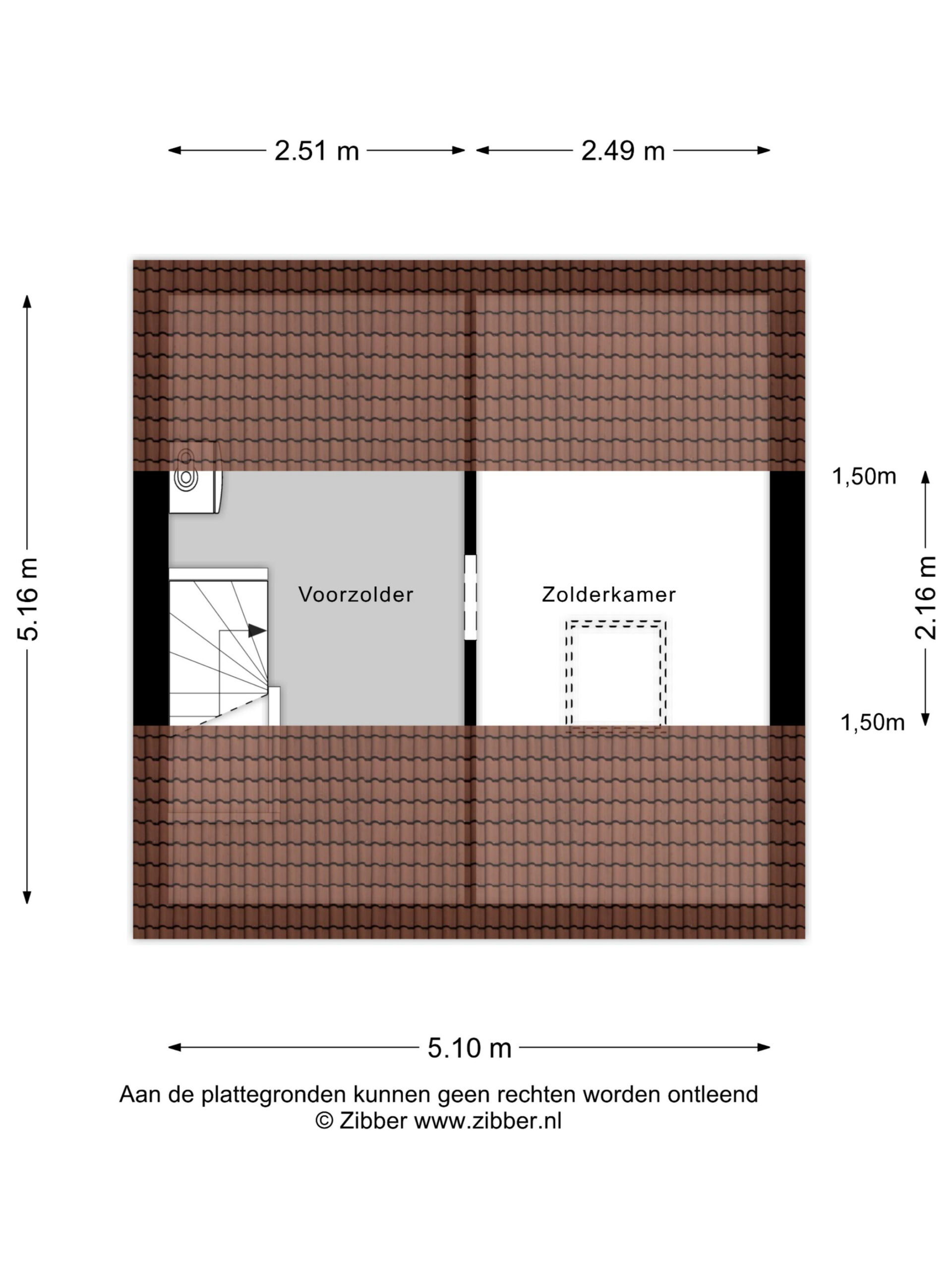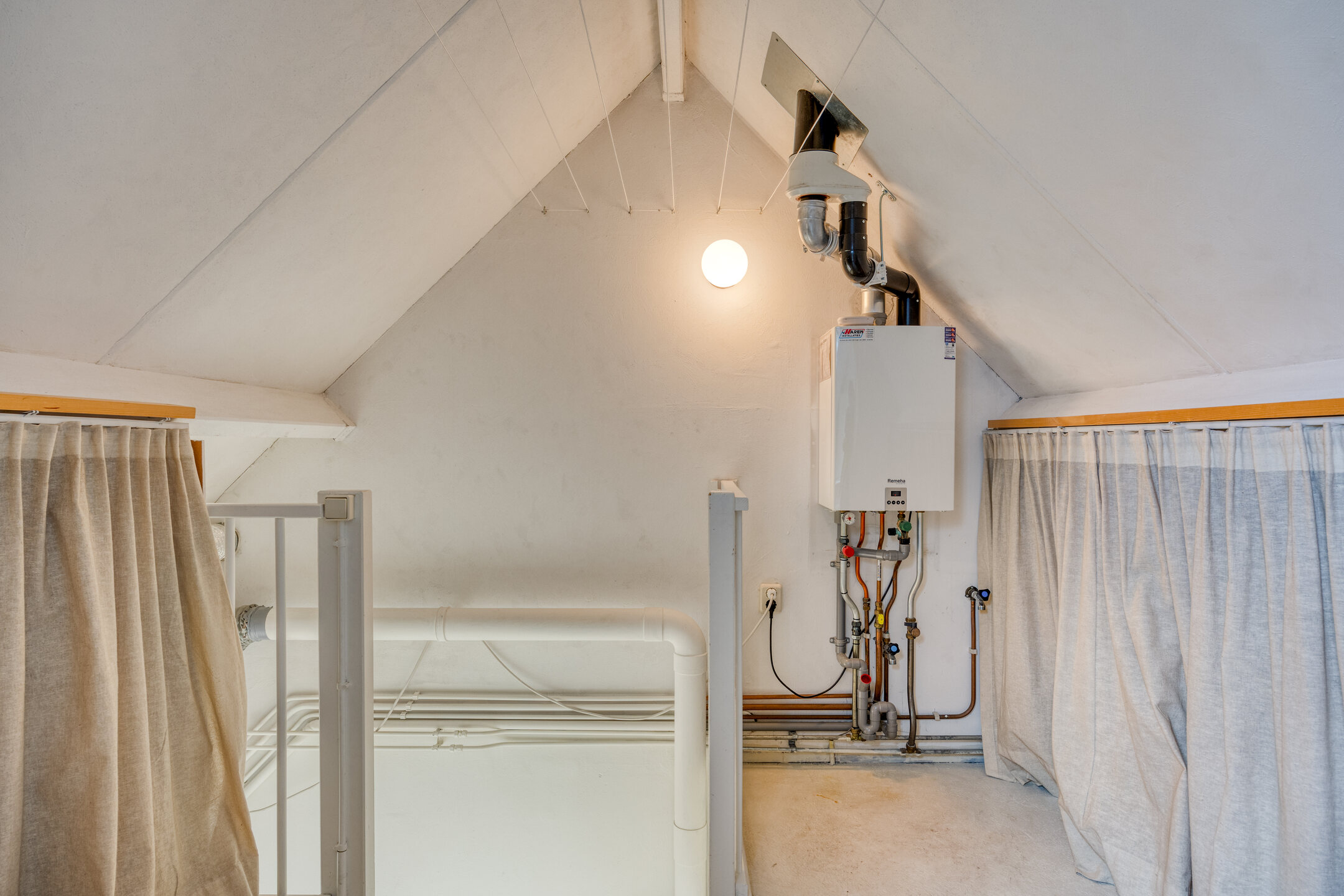 2e verdieping: voorzolder met de opstelling van de cv-ketel, zolderkamer met een Velux-dakraam (2024).