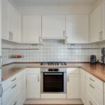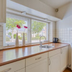 De keukenopstelling (2002) is voorzien van een vaatwasser (2021), koel-/ vriescombinatie (2024), 5-pits gaskookplaat, afzuigkap en oven (2021).