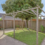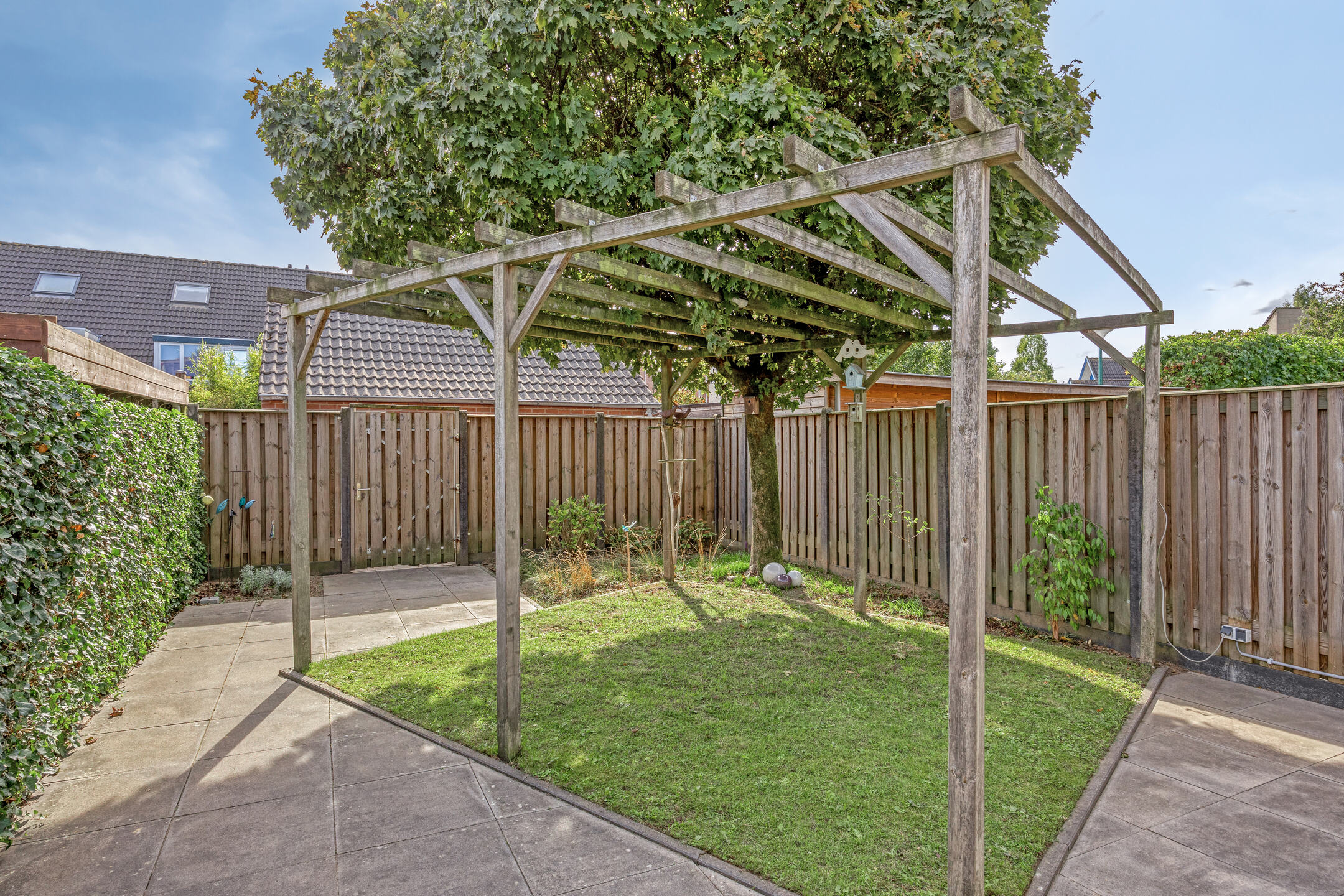 De zonnige tuin op het zuiden is via een eigen achterom bereikbaar.