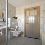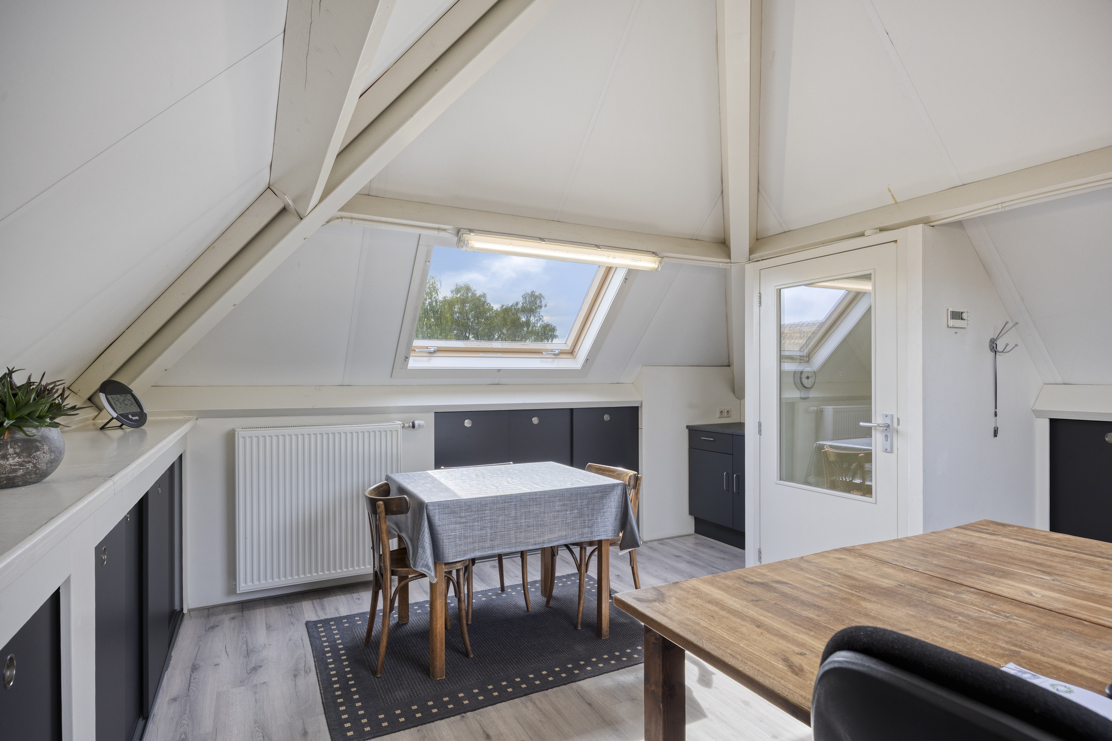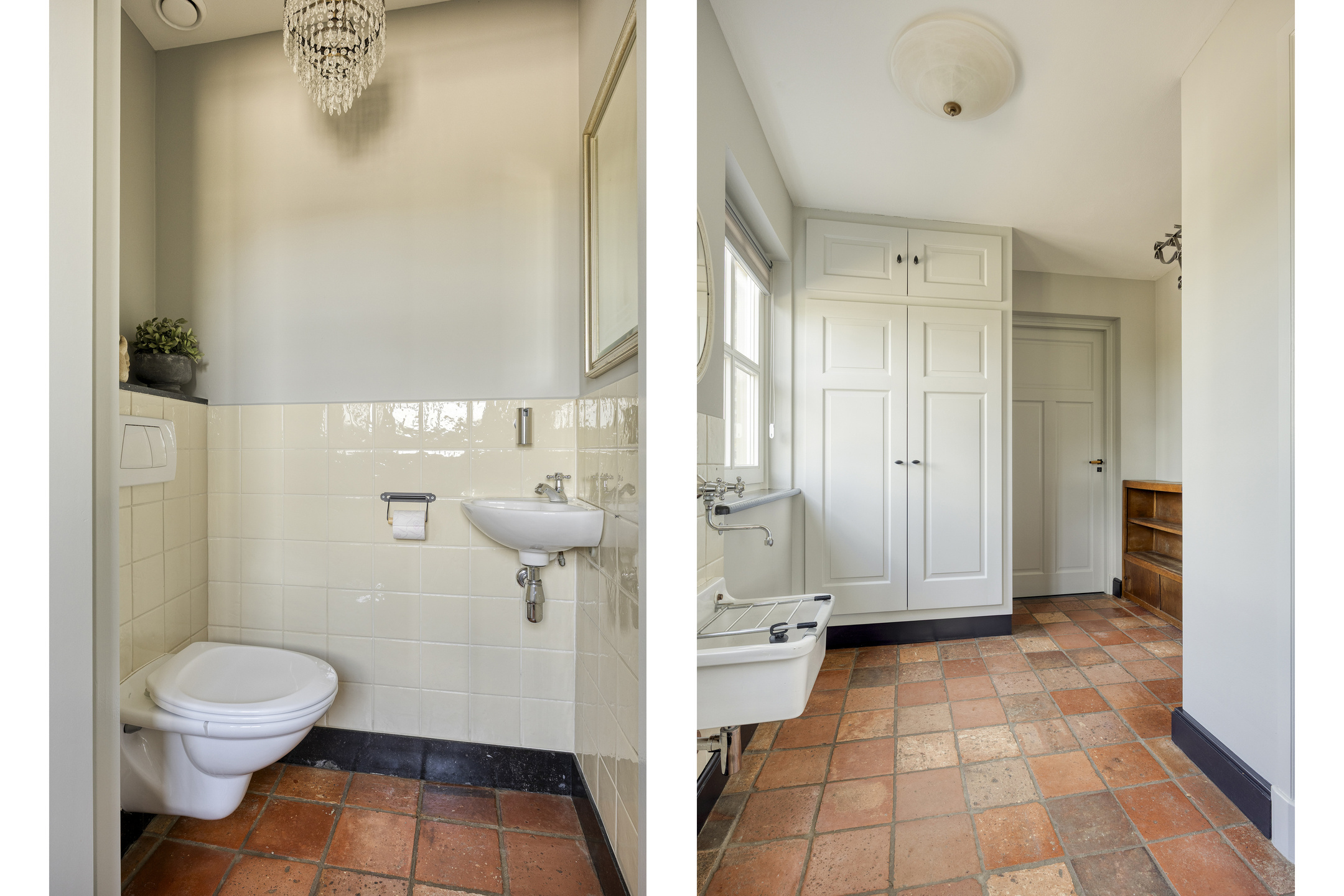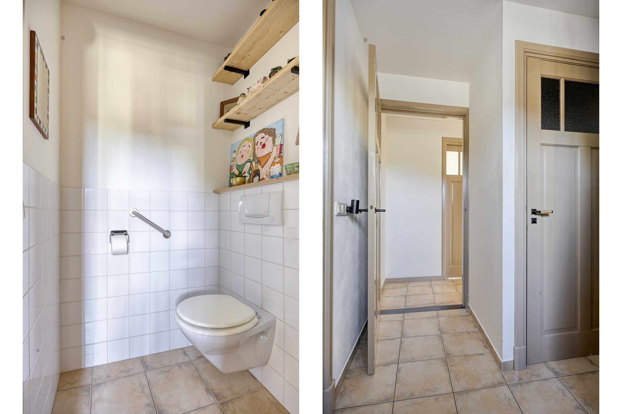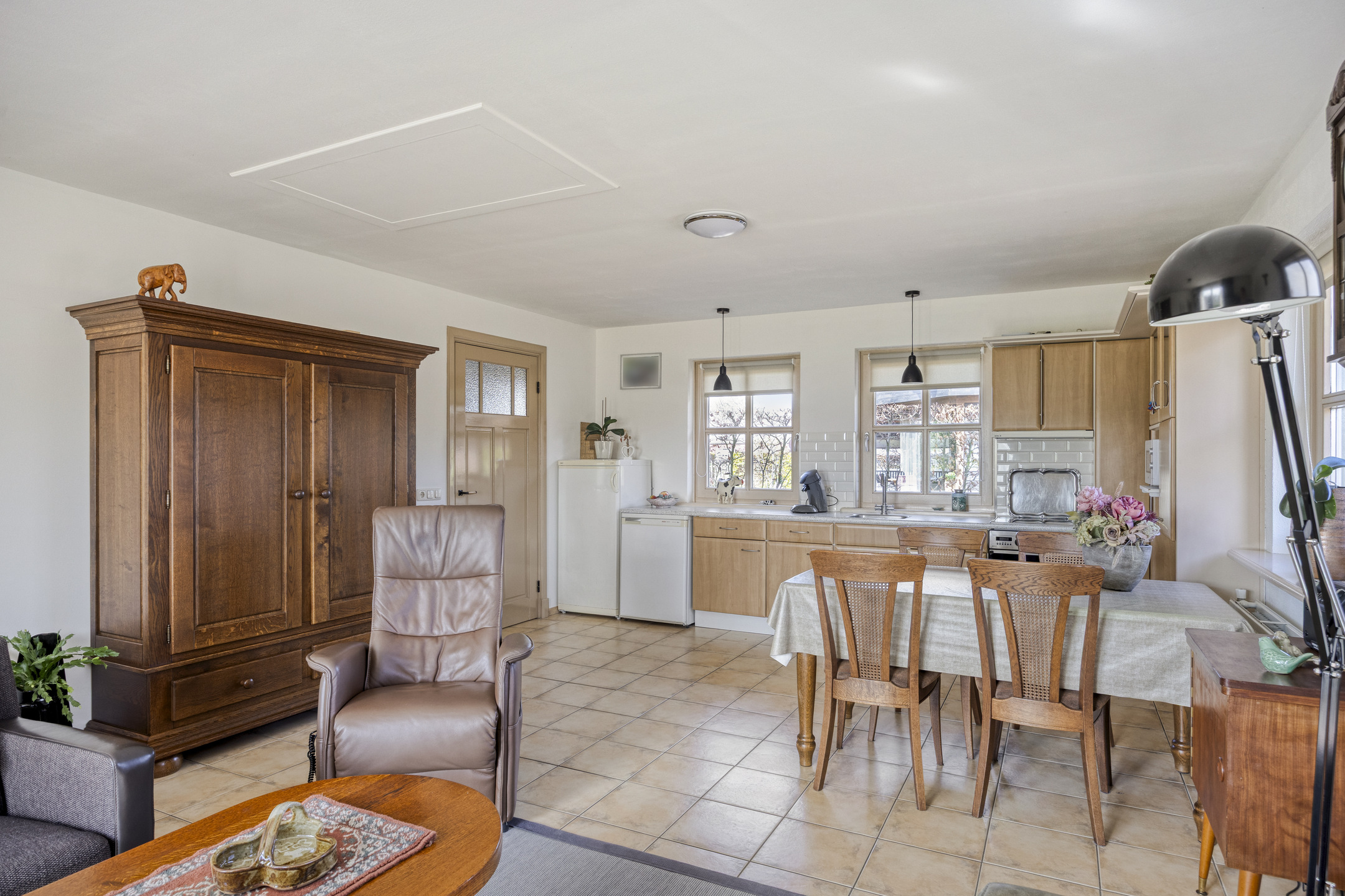Begane grond: entree met meterkast, een sfeervolle L-vormige woonkamer met fraai uitzicht over het buitengebied, woonkeuken met een moderne keukenopstelling voorzien van diverse inbouwapparatuur, bijkeuken met de toiletruimte voorzien van wandcloset en fonteintje en de cv-opstelling. Vanuit de bijkeuken is de mantelzorgwoning/ gastenverblijf bereikbaar.
