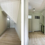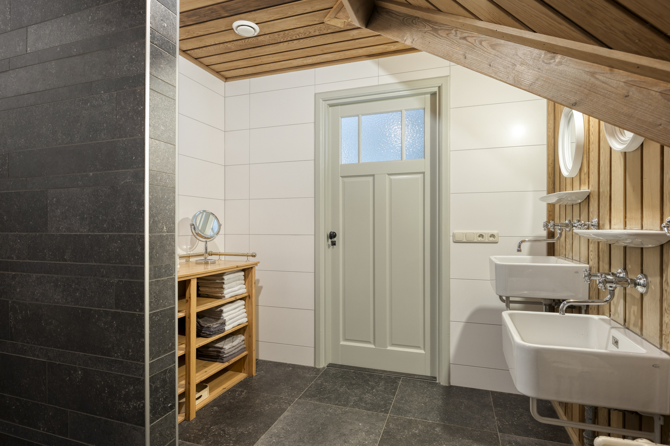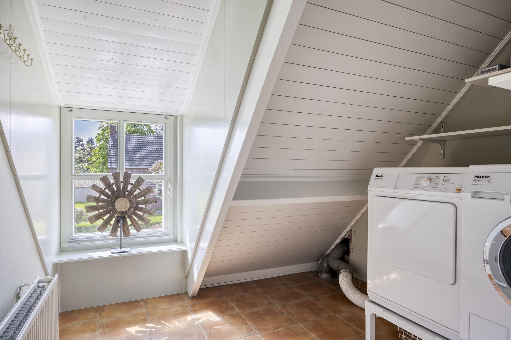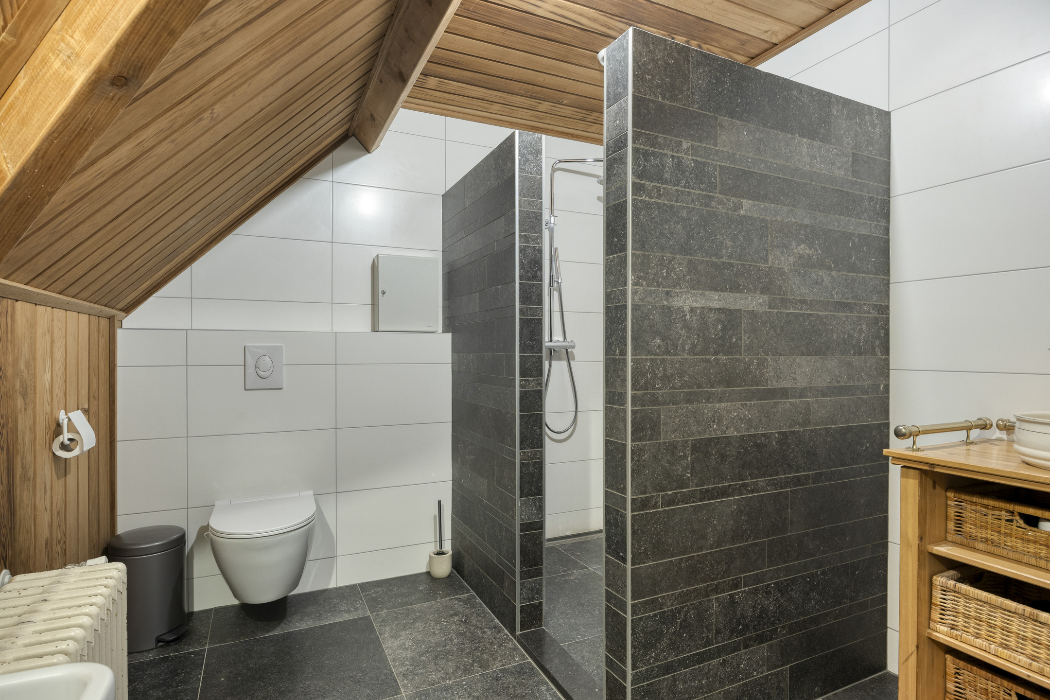 1e verdieping: royale overloop, praktische wasruimte met de witgoedaansluitingen, 3 ruime slaapkamers, allen voorzien van een praktische bergruimte. De moderne badkamer is ingericht met een dubbel wastafel en een inloopdouche.