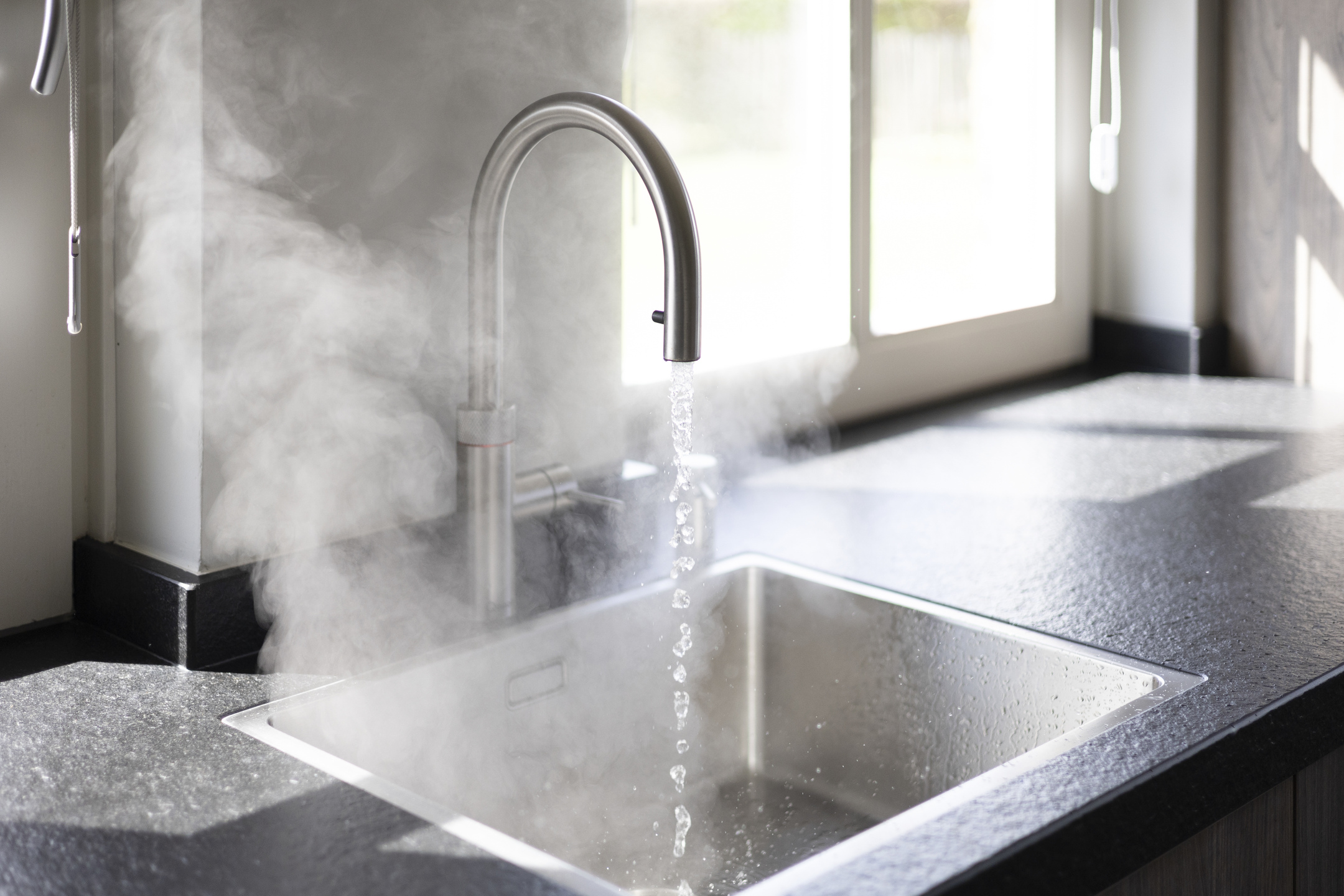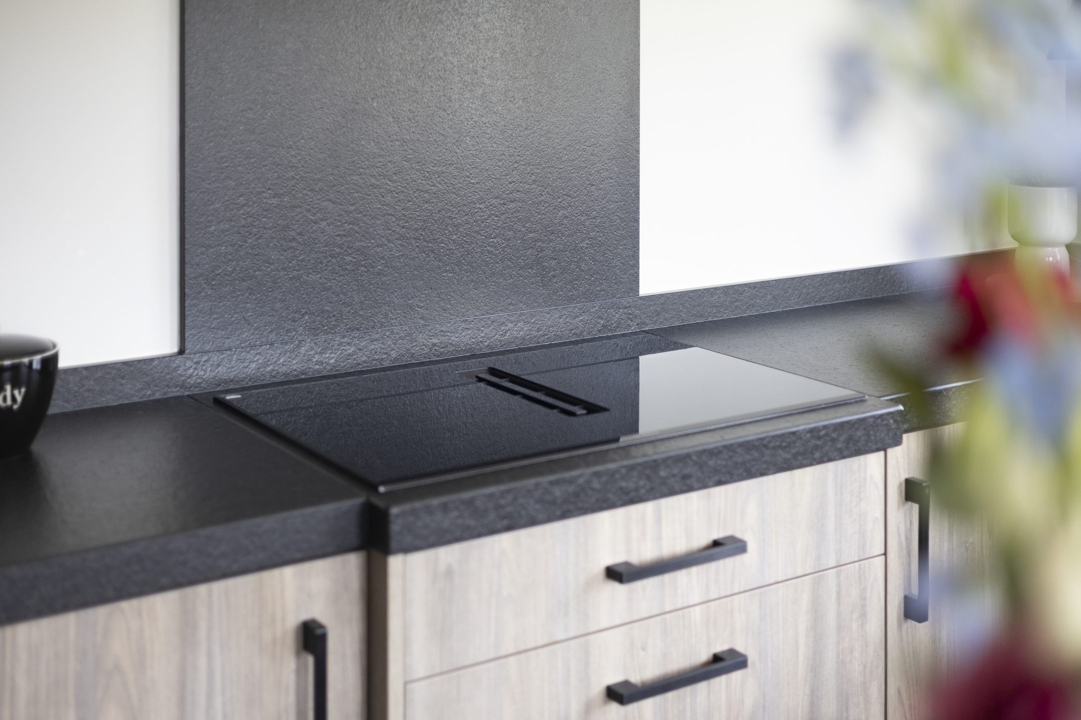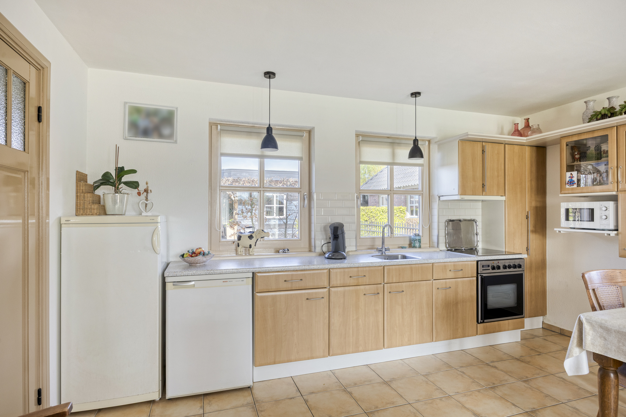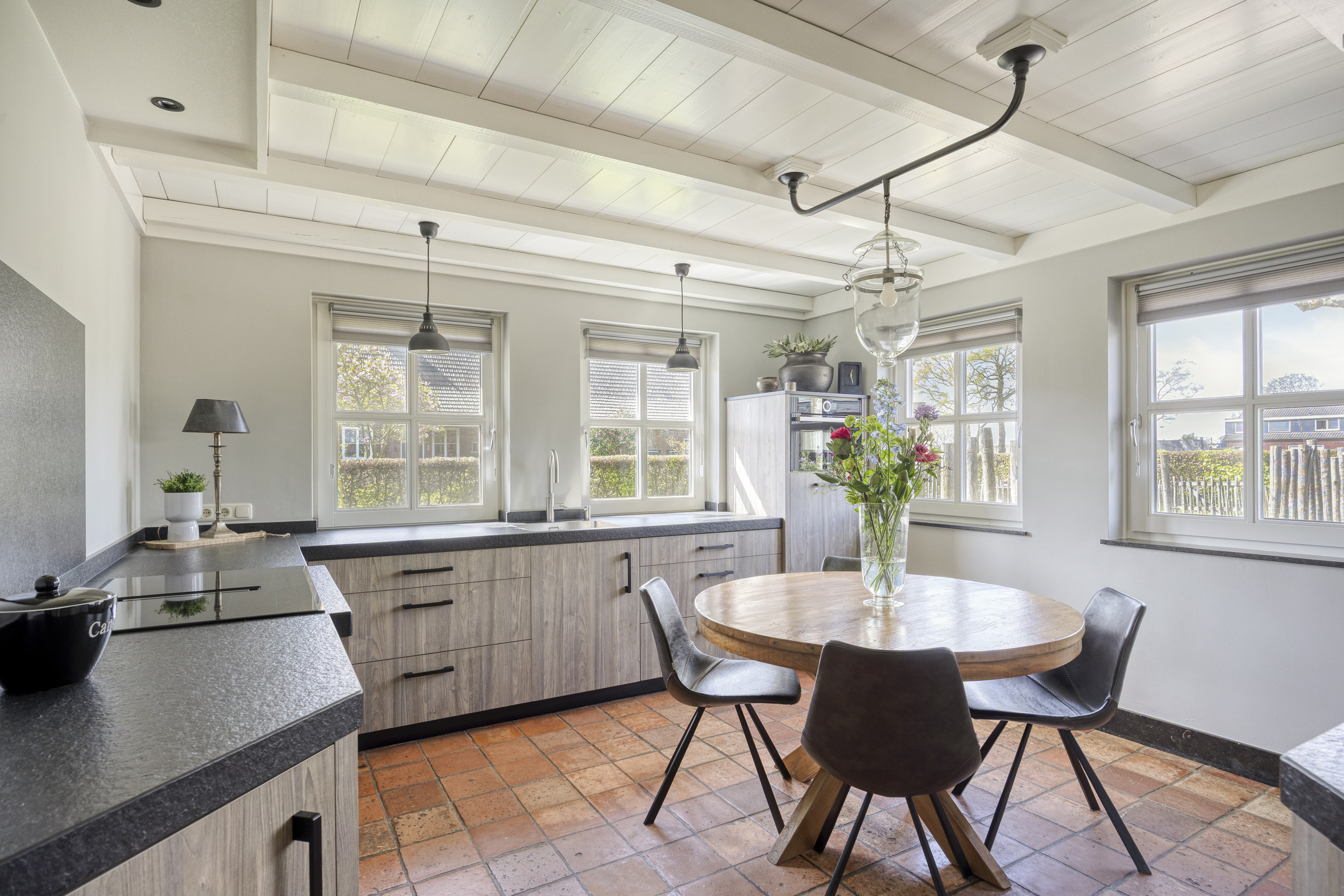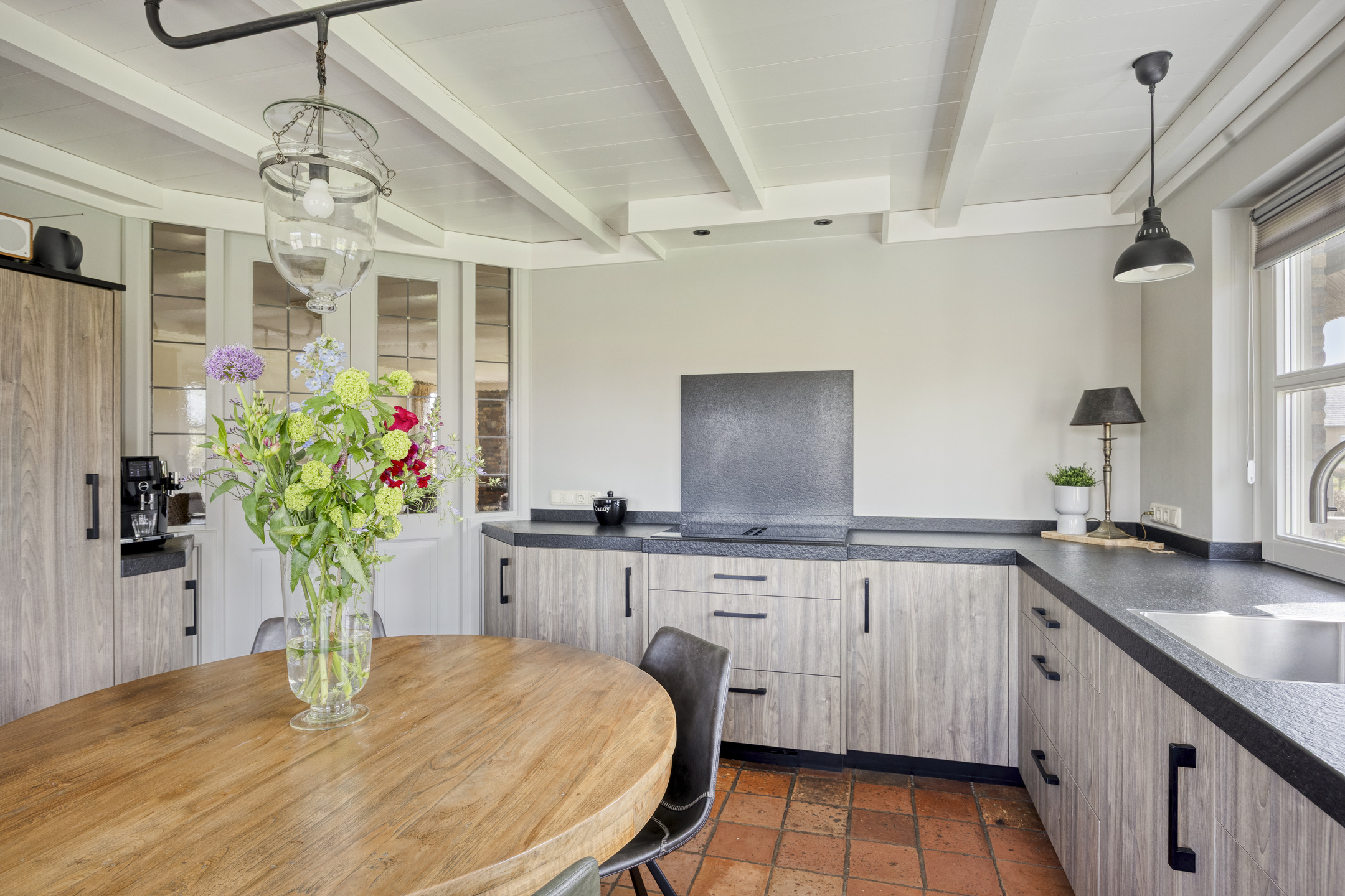 De moderne keukeninrichting (vernieuwd in 2023) bestaat uit een inductiekookplaat met geïntegreerde afzuiging, koelkast, vaatwasser, Quooker met mogelijkheid voor bruiswater, combioven en koffiecorner.