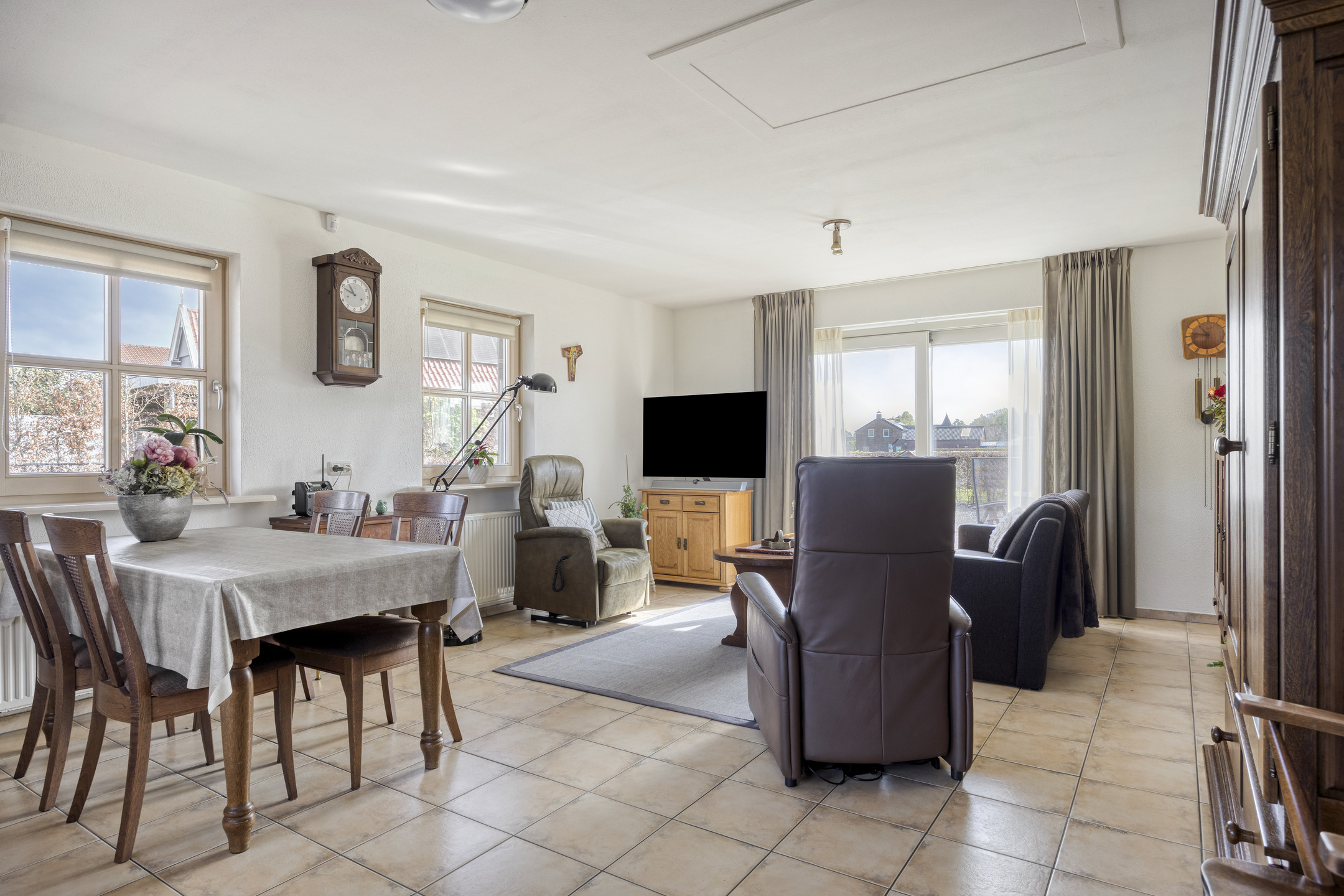 Begane grond: entree met meterkast, een sfeervolle L-vormige woonkamer met fraai uitzicht over het buitengebied,…