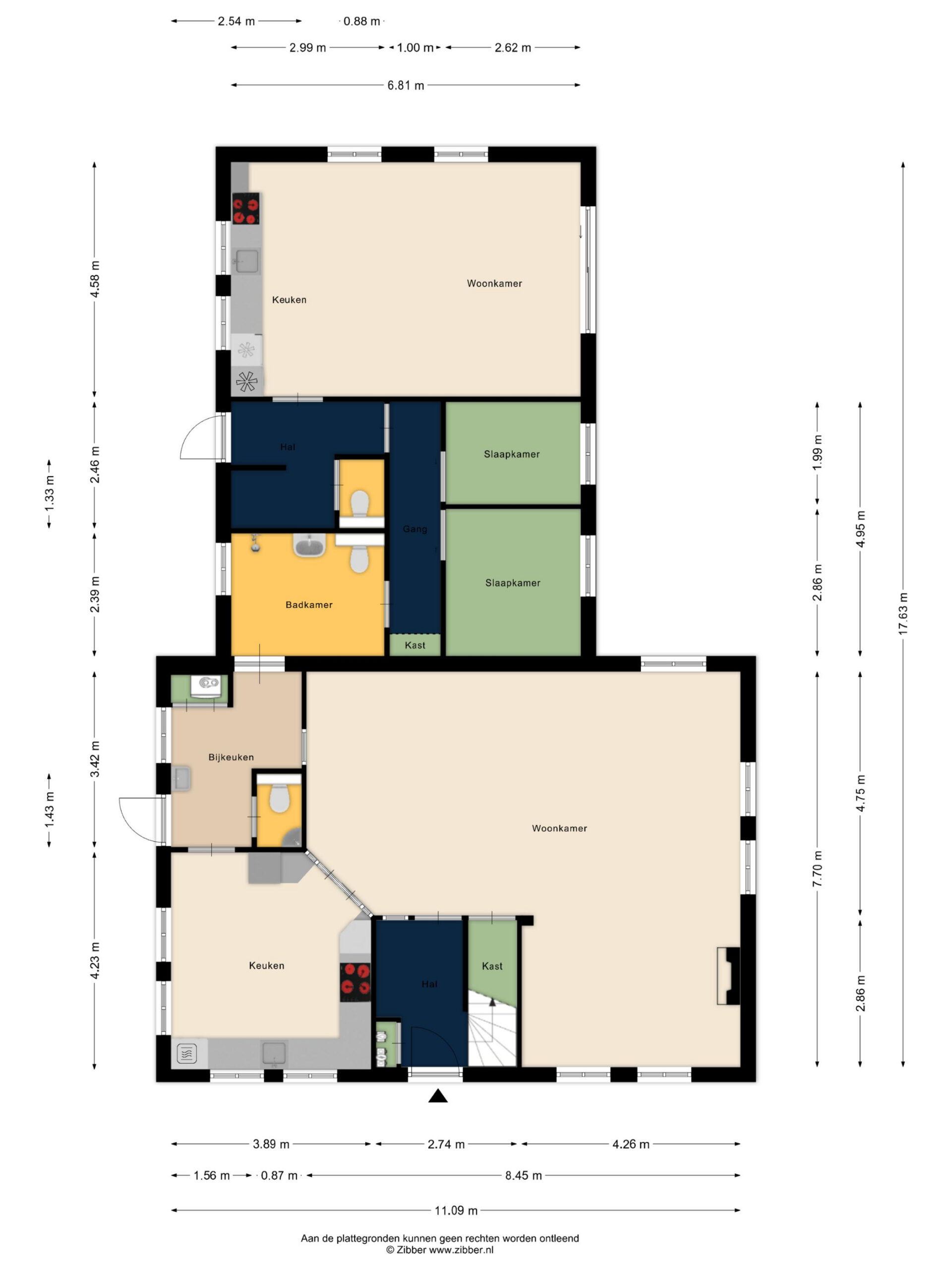 Begane grond: entree met de cv-opstelling, meterkast, witgoedaansluitingen en de toiletruimte, woonkamer met open keuken voorzien van diverse inbouwapparatuur, middels de schuifpui is er toegang tot de tuin, hal met 2 slaapkamers en een badkamer voorzien van douche, toilet en wastafel.