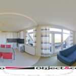 1e verdieping: hal, woonkamer met directe toegang tot het balkon met vrij uitzicht over het aan de voorzijde gelegen plantsoen, open keuken met een moderne keukenopstelling voorzien van diverse inbouwapparatuur, een geheel betegelde en in lichte kleuren afgewerkte badkamer voorzien van een ligbad, badmeubel en een toilet, slaapkamer met een aangrenzend balkon.