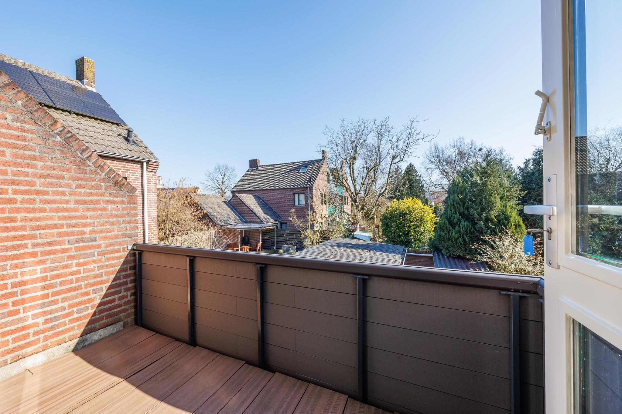 De raamkozijnen van de slaapkamer naar het balkon zijn voorzien van een rolluik.