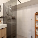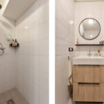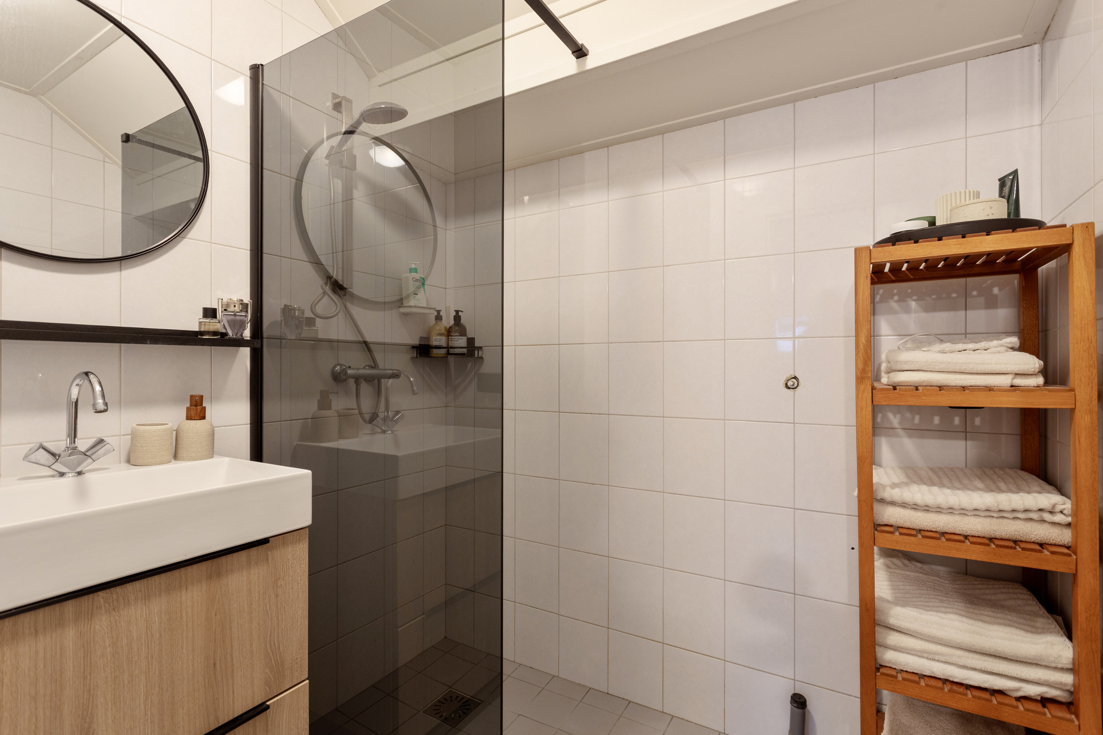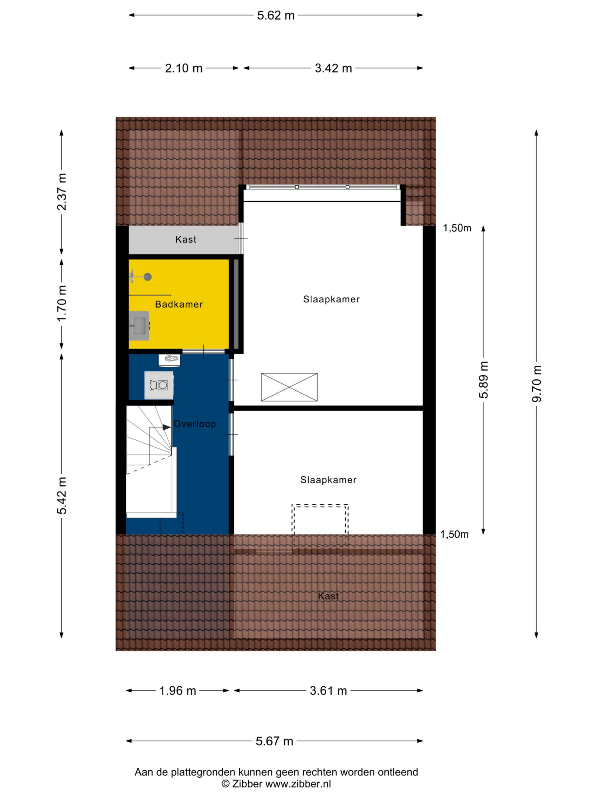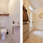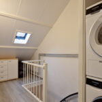 1e verdieping: overloop met de opstelling van de cv-ketel en de aansluitingen t.b.v. het witgoed. Twee slaapkamers, waarvan 1 beschikt over een dakkapel, moderne badkamer voorzien van een wastafel met meubel en inloopdouche.
