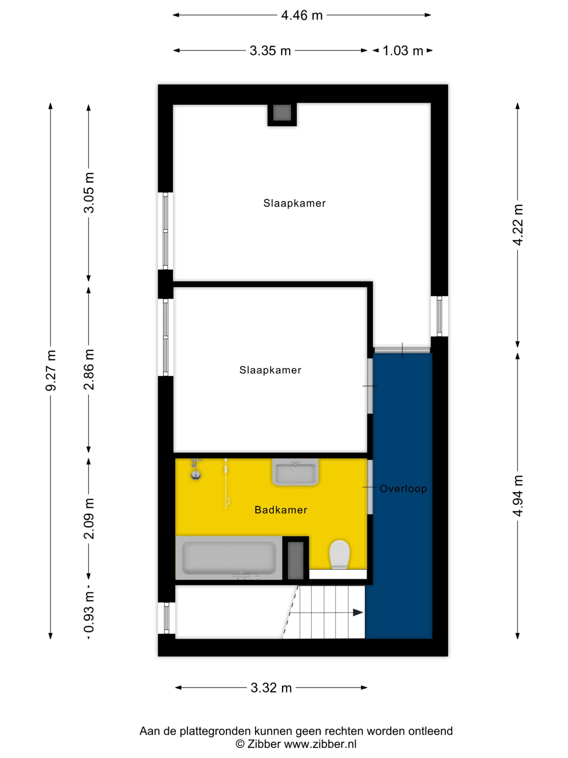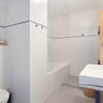 Overloop met toegang tot twee ruime slaapkamers en complete badkamer voorzien van toilet, douche, ligbad en dubbele wastafel.