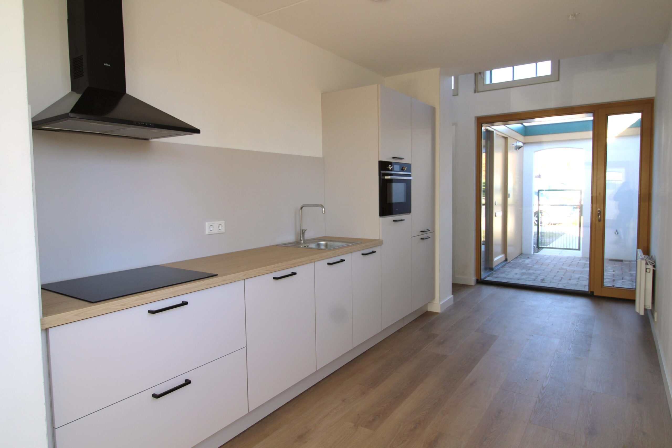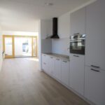 De keuken is voorzien van een inductiekookplaat, afzuigkap, vaatwasser, koelkast en combi-oven.