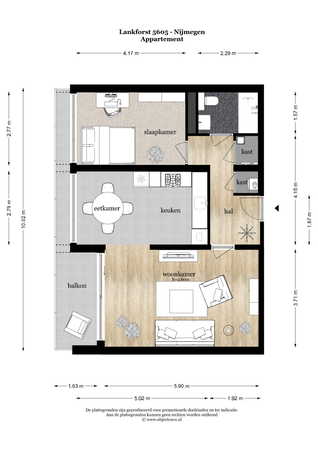 Het appartement is voorzien van houten kozijnen met dubbel glas en een schuifpui naar het balkon.