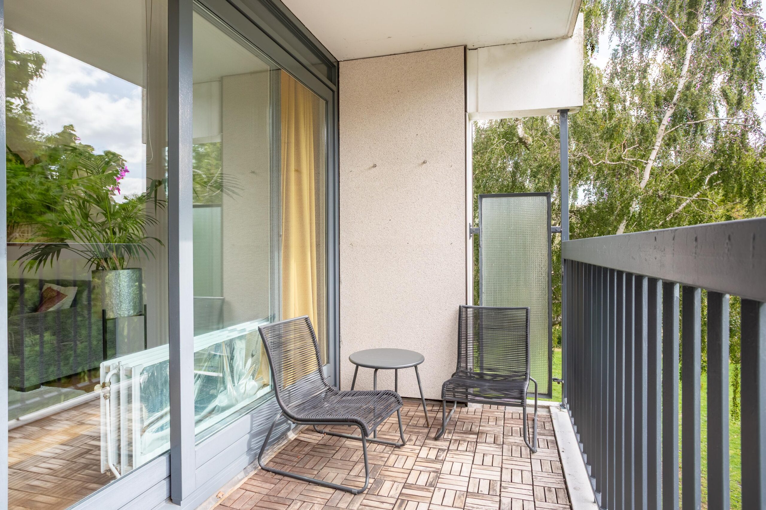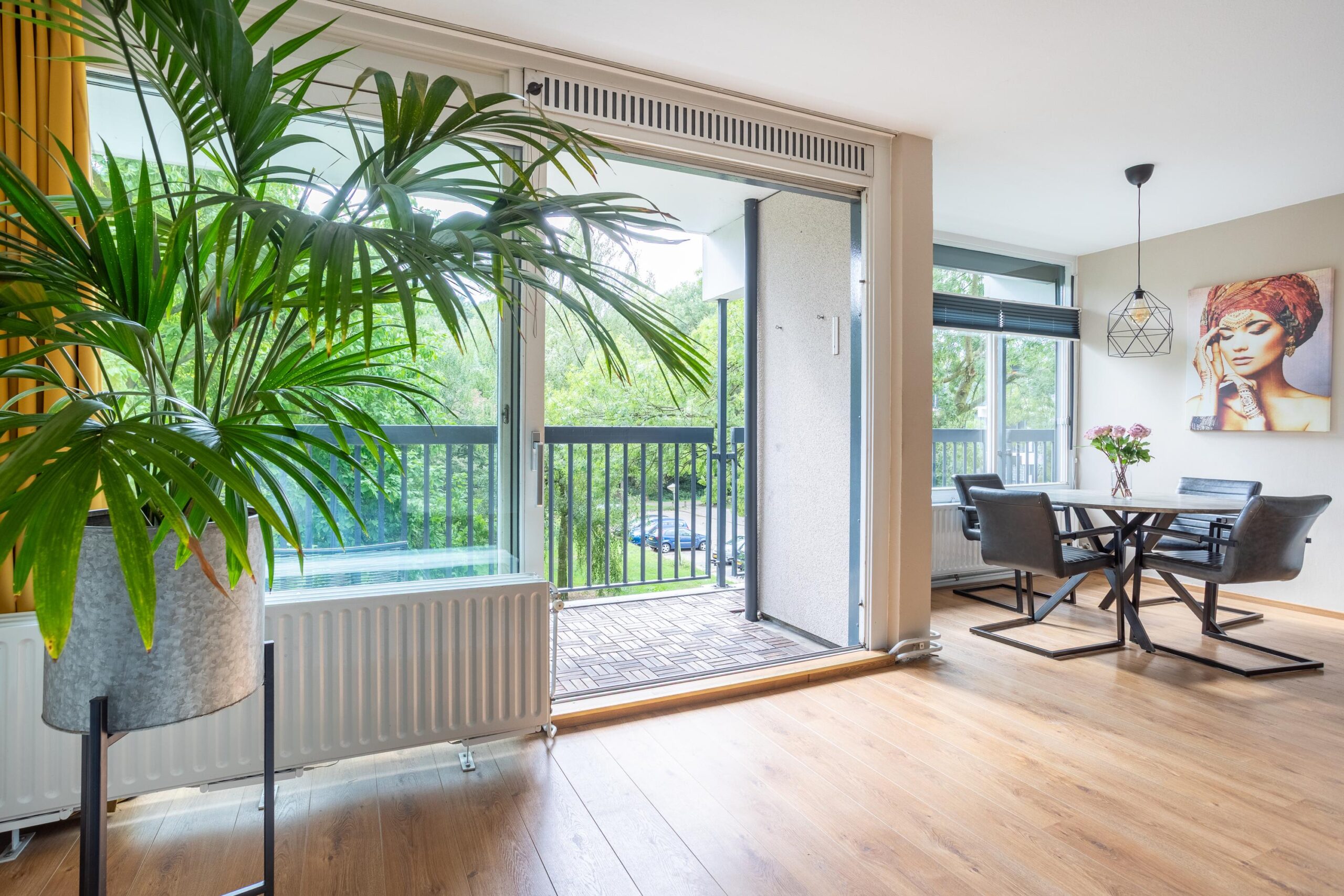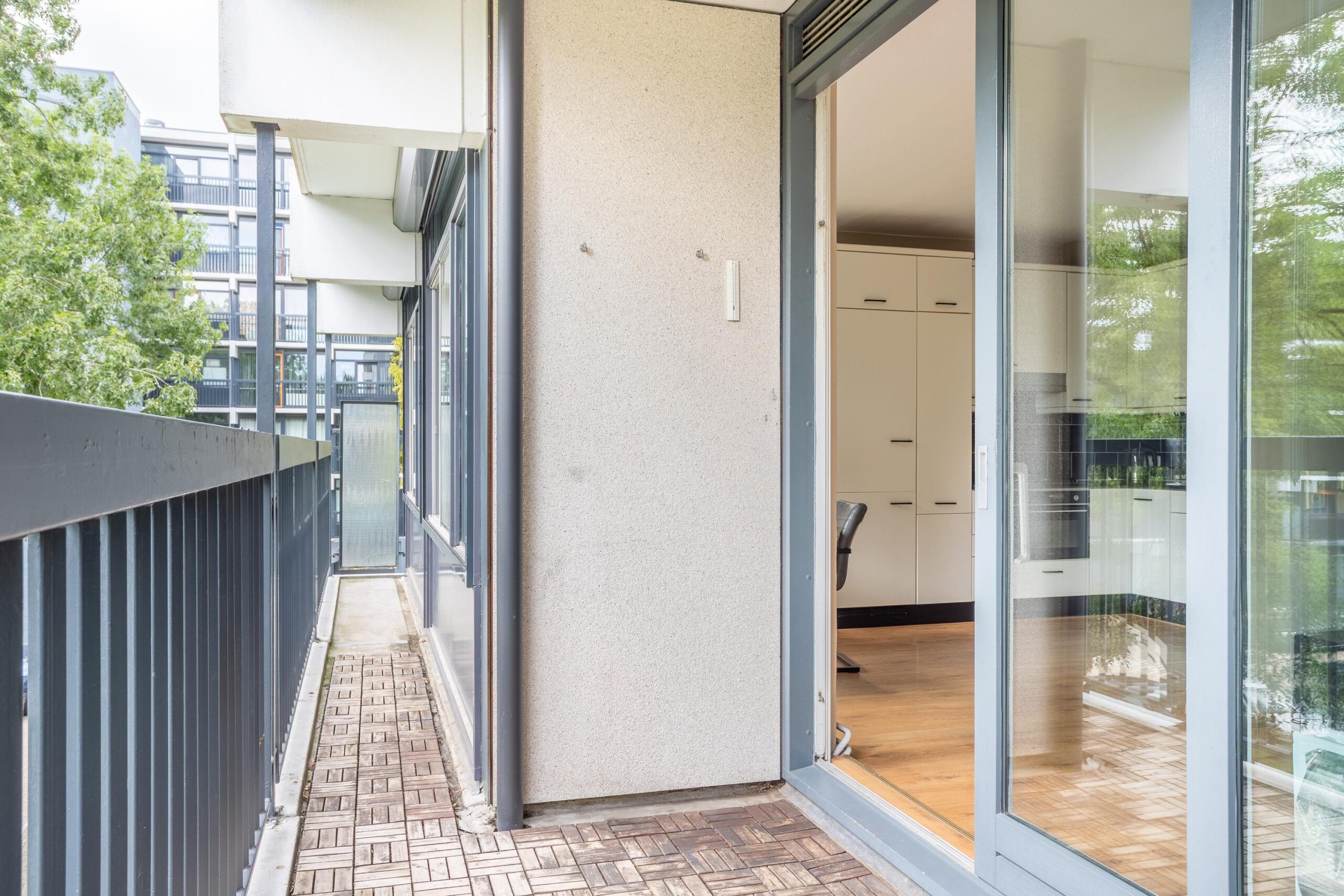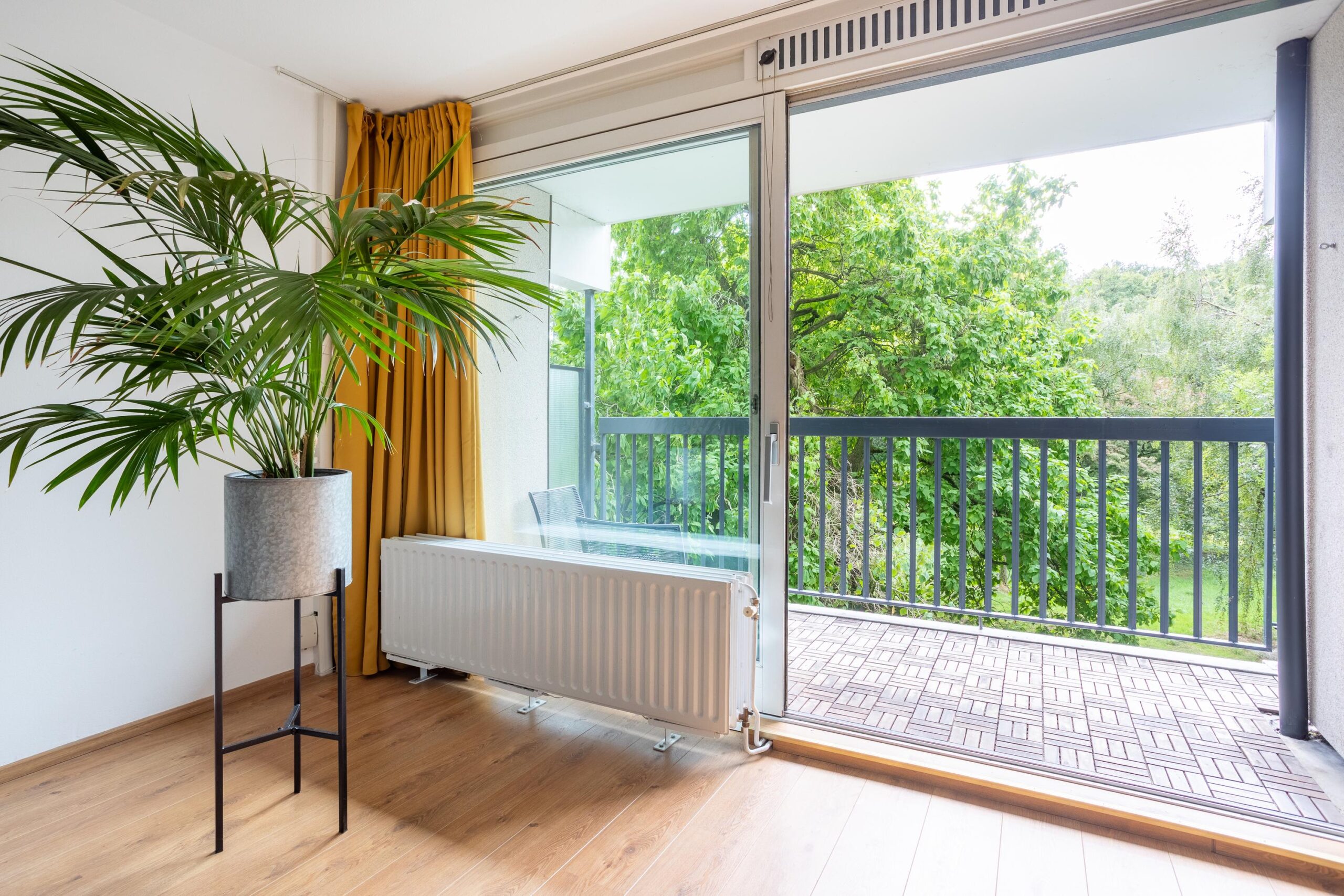 Zeer mooi, vrij uitzicht vanuit de woonkamer, keuken én slaapkamer. Door de bijzondere schakeling in de bouw heb je op het balkon aan beide zijdes geen directe buren.