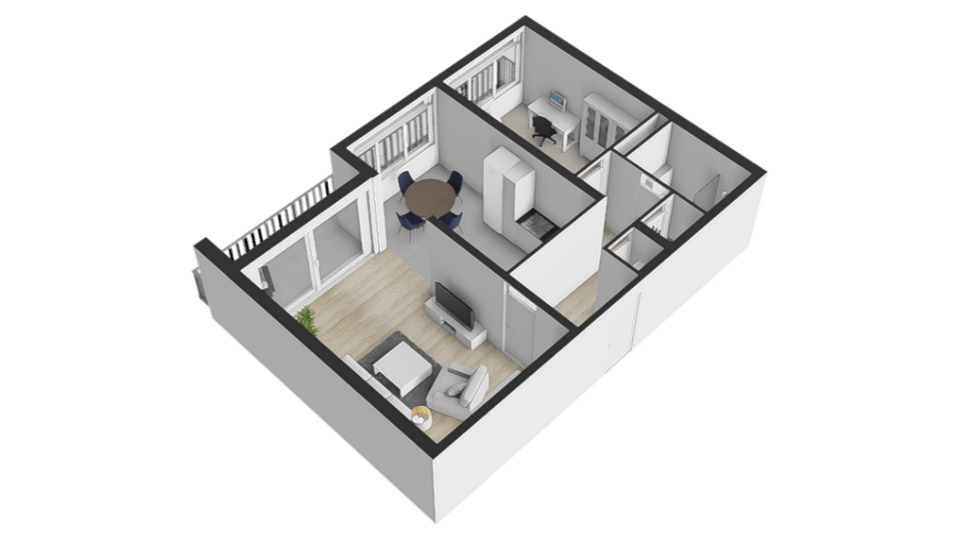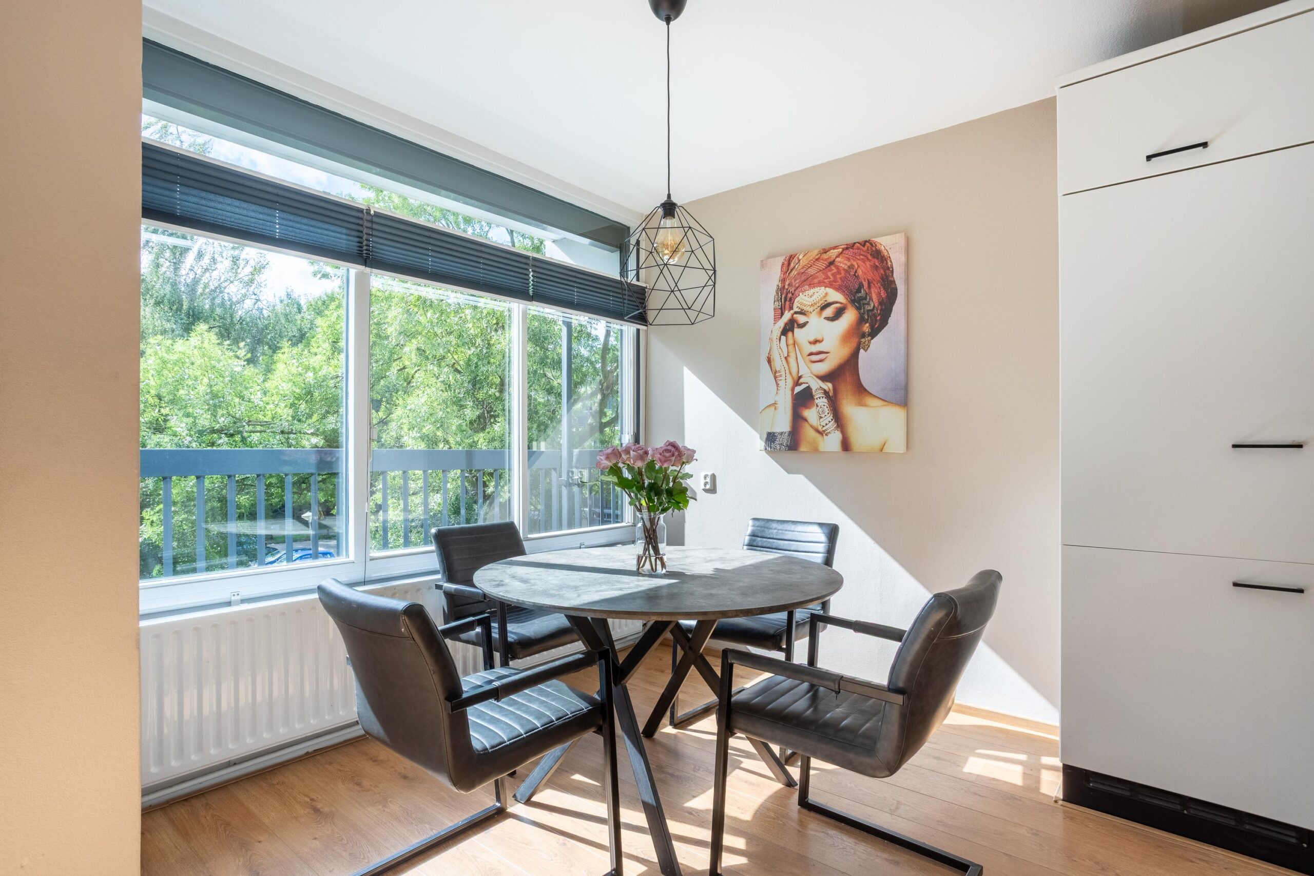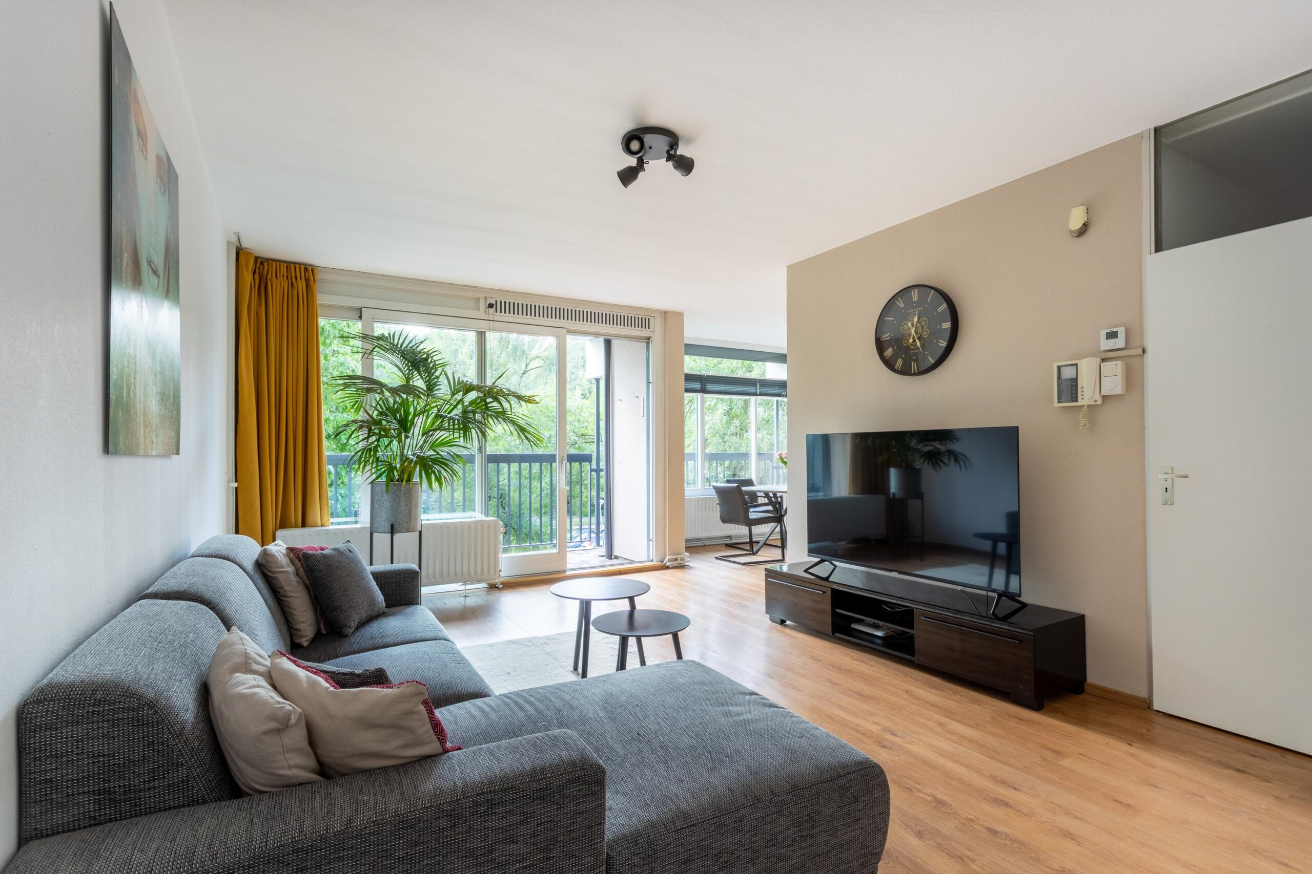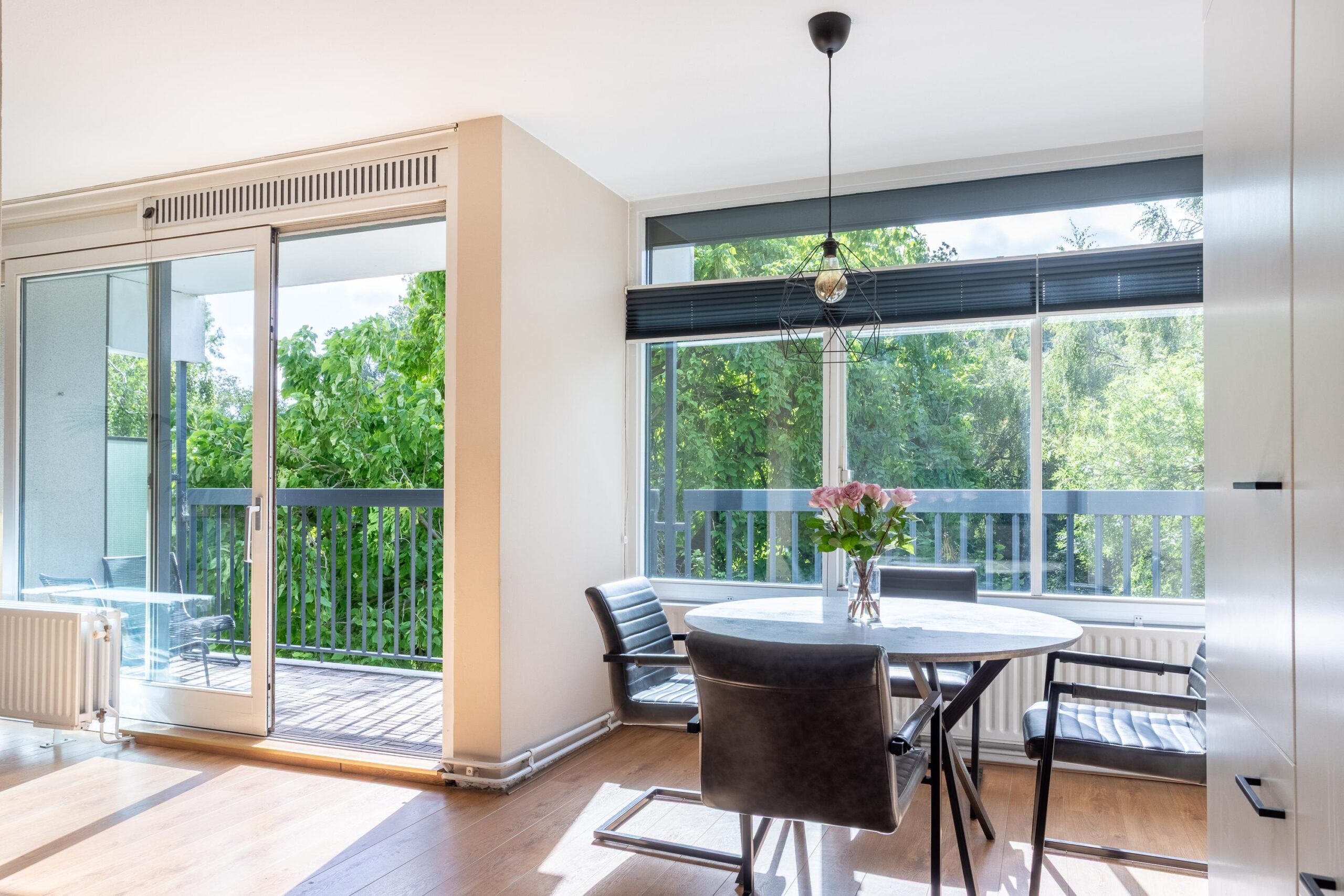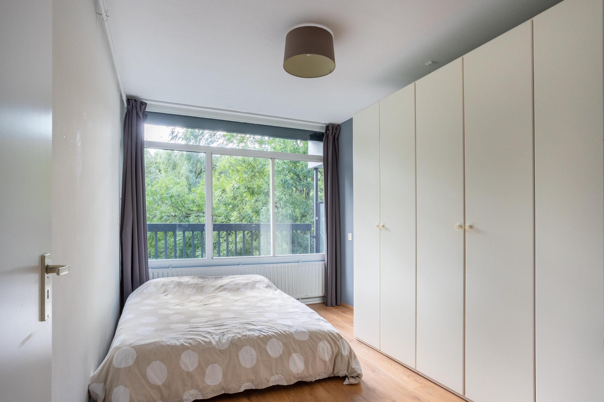 Zeer mooi, vrij uitzicht vanuit de woonkamer, keuken én slaapkamer. Door de bijzondere schakeling in de bouw heb je op het balkon aan beide zijdes geen directe buren.