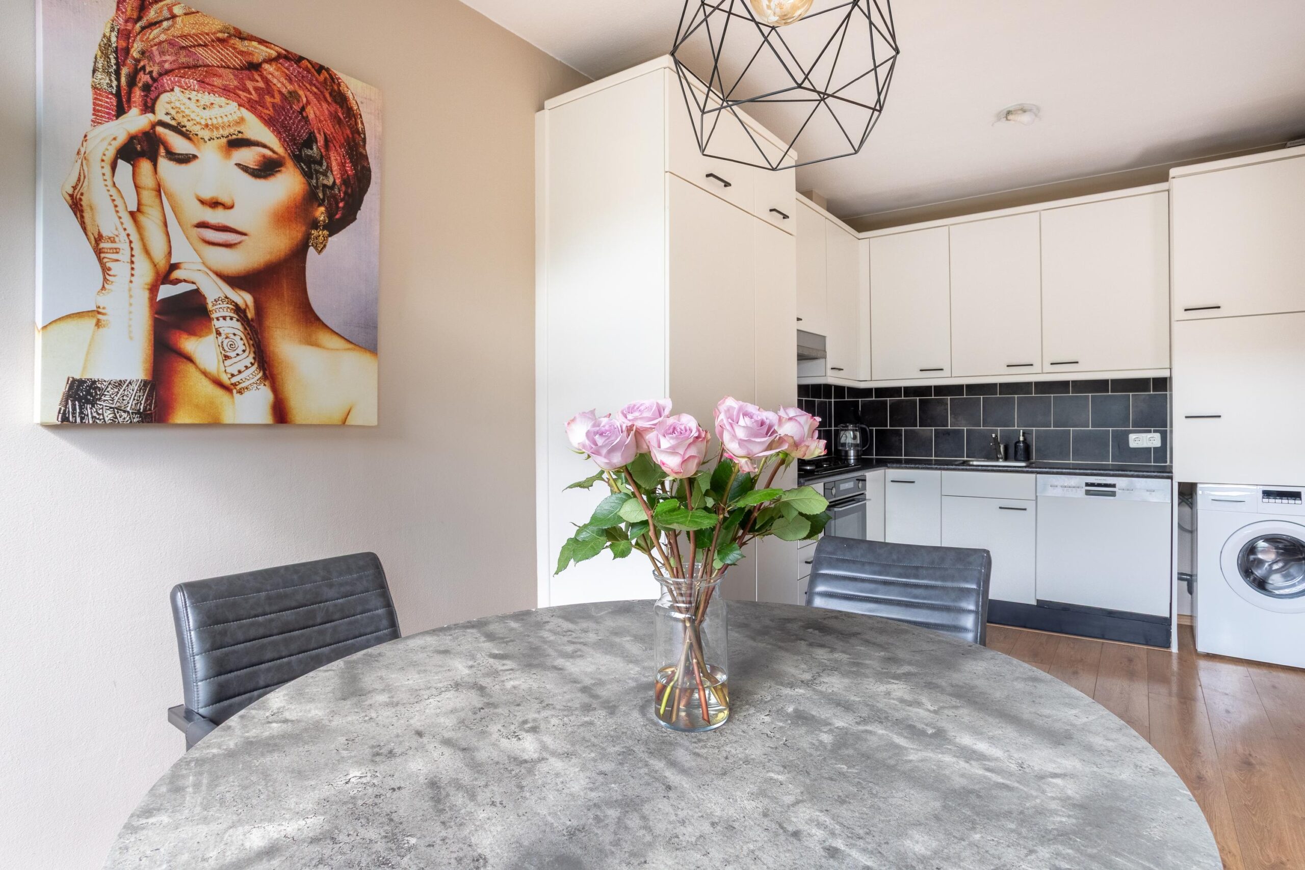 De keuken is voorzien van de volgende inbouwapparatuur: combimagnetron (2019), 4-pits gaskookplaat, afzuigkap, koel-vriescombinatie (2019), vaatwasser (2019) en een witgoedaansluiting.