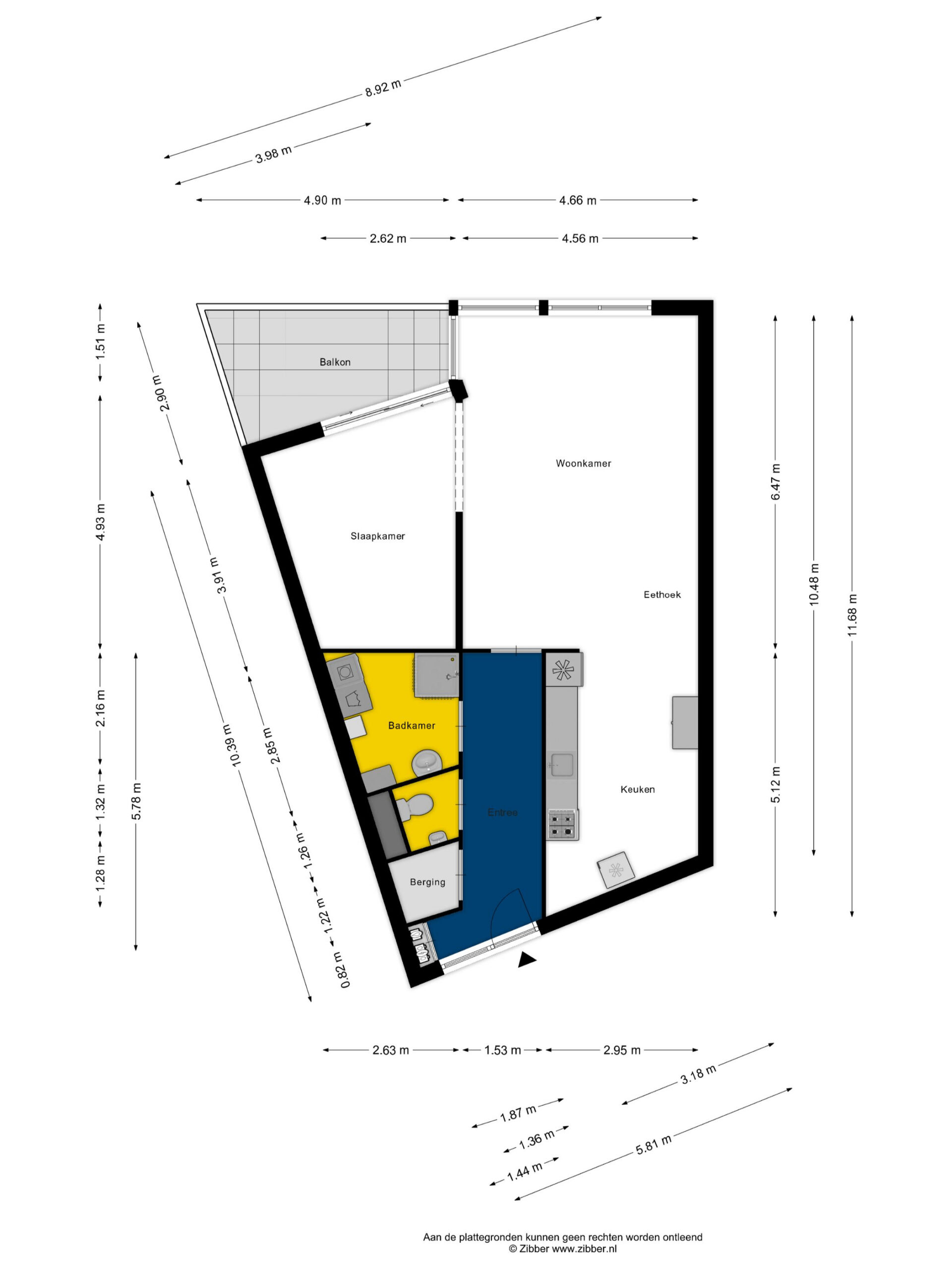 Een aantal aanpassingen van de indeling zijn mogelijk zoals het maken van een 2e kamer achter in de keuken met een deur naar de hal. Om daglicht te creëren is, met goedkeuring van de VvE, het mogelijk om een dakraam te plaatsen, daarnaast is er een mogelijkheid om een deur te maken van de slaapkamer naar de badkamer. Hierdoor kan de gang worden ingekort en creeër je meer leefruimte in de keuken/ woonkamer.