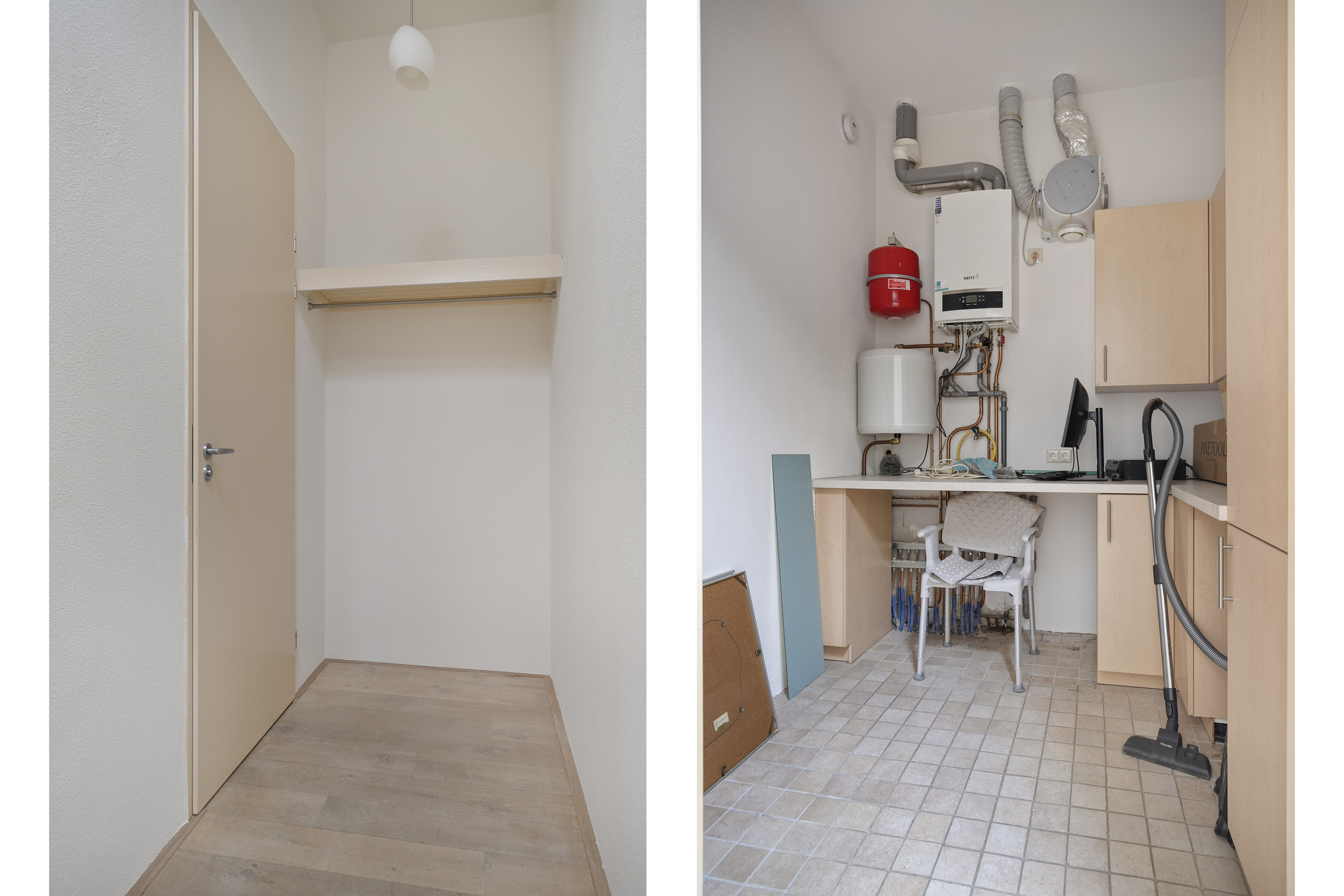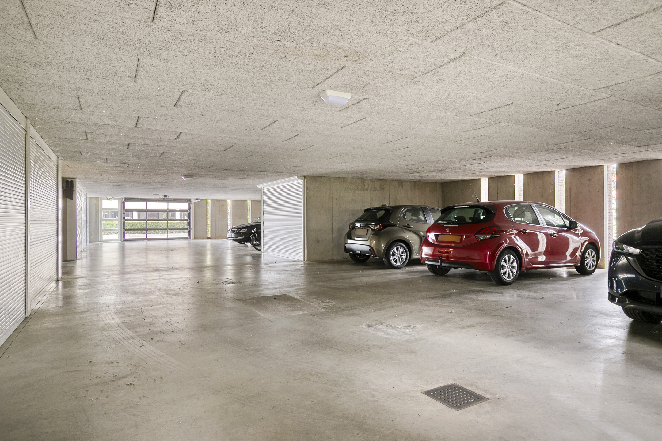 Op de begane grond is een afgesloten garagebox beschikbaar en een eigen berging.