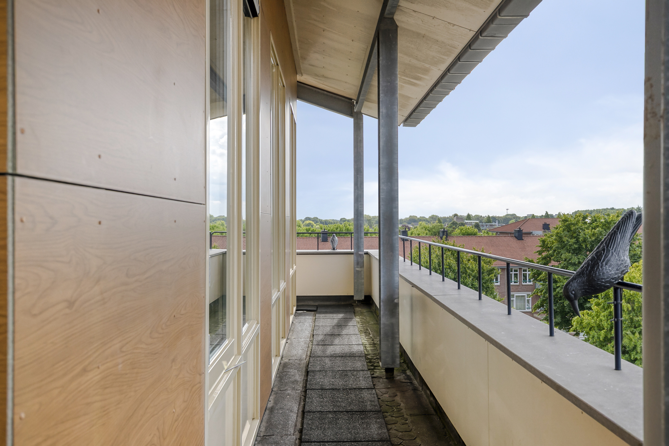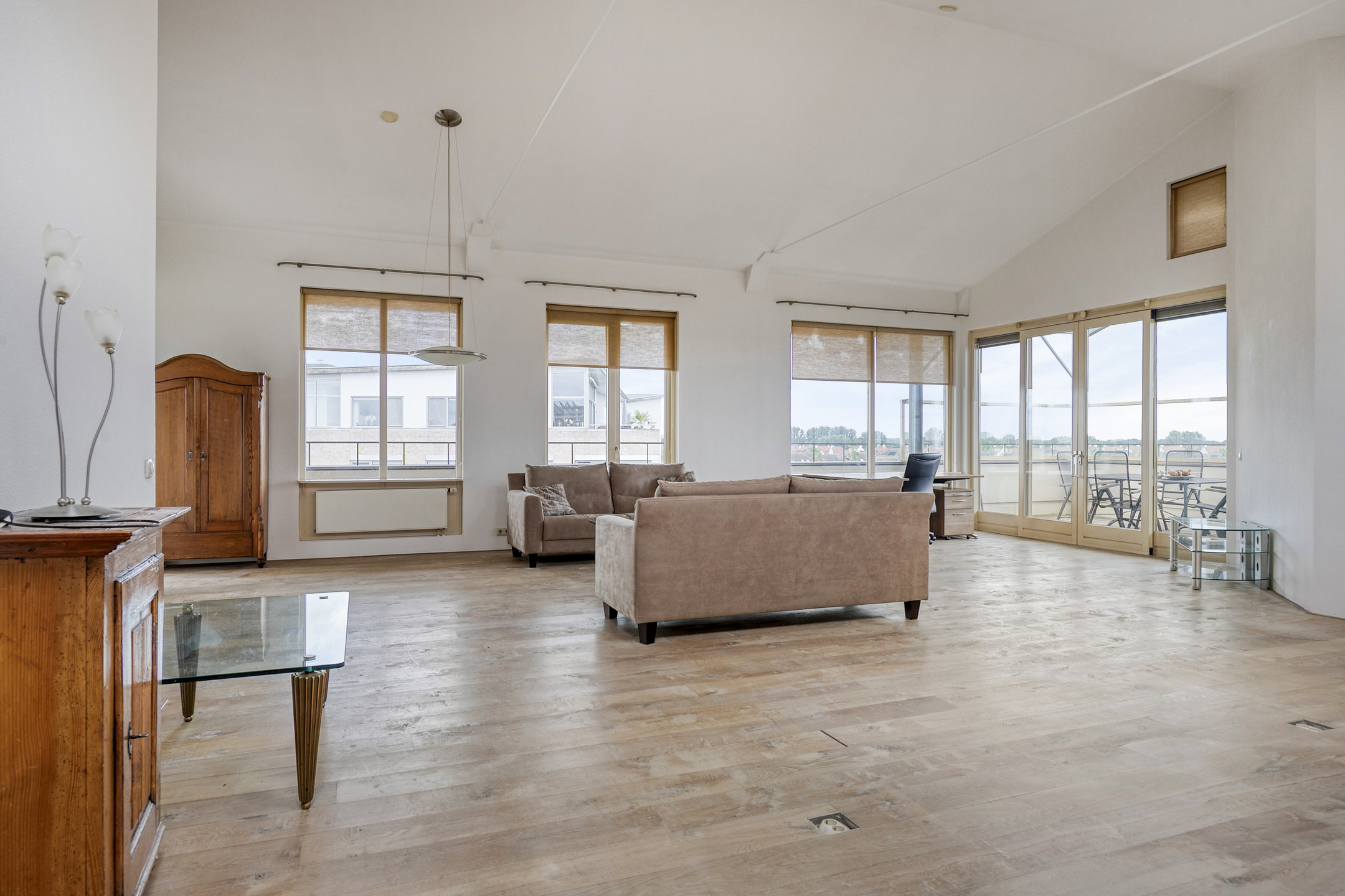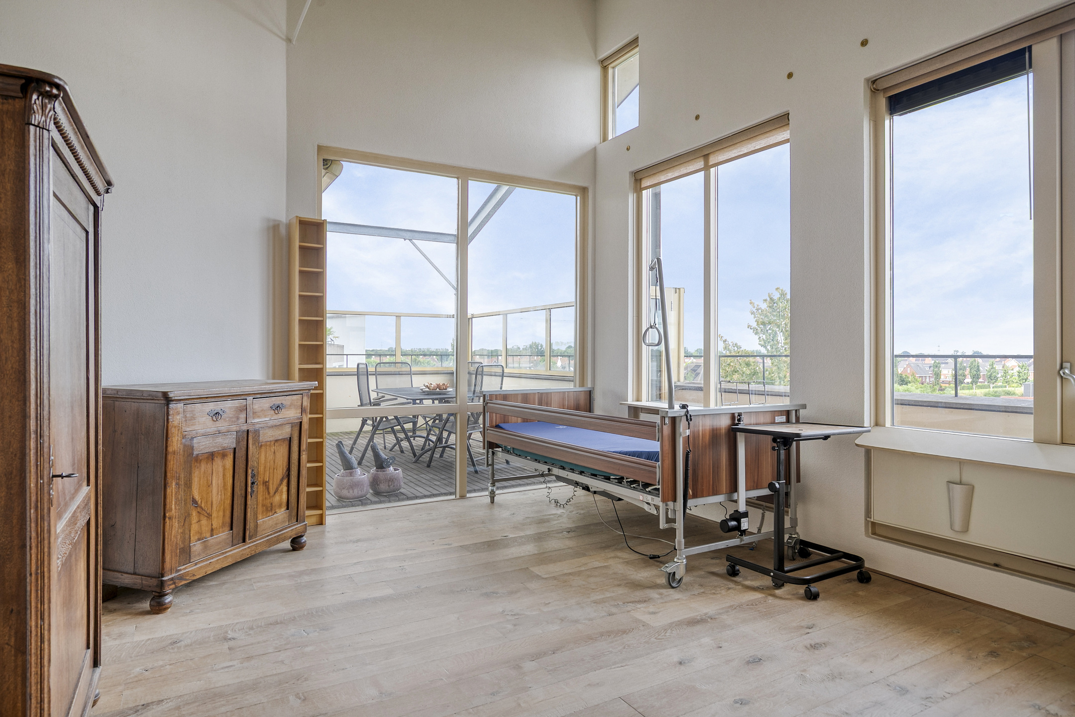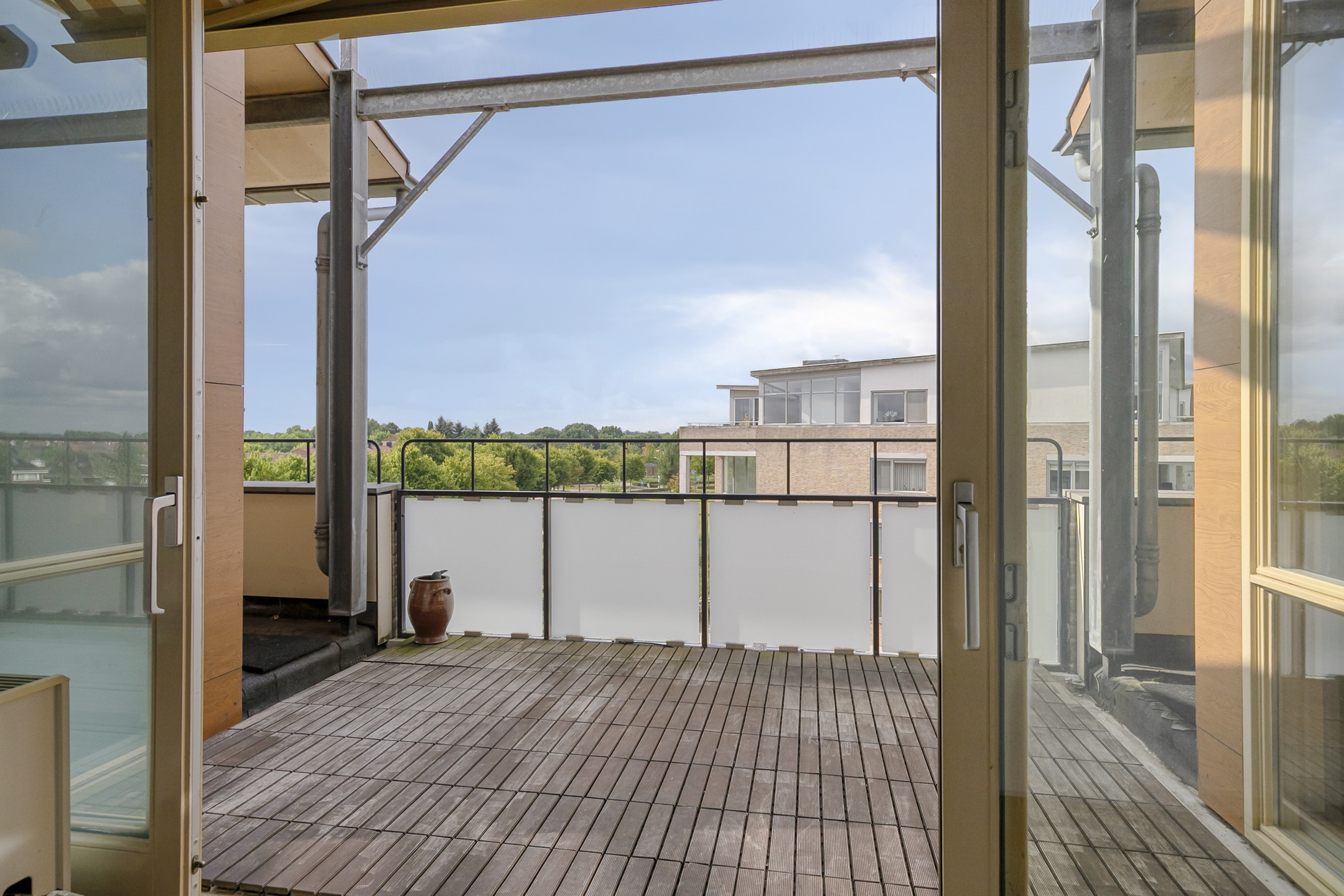 Gelegen op de 4e verdieping, hal met meterkast en garderobenis. Toiletruimte met zwevend toilet, bidet en fonteintje, een inpandige bergruimte met de cv-opstelling en de witgoedaansluitingen. Via de hal kom je in de sfeervolle woonkamer met gashaard, er is veel lichtinval door de vele raampartijen en via de openslaande tuindeuren is het zonneterras toegankelijk. Aansluitend een extra studeer-/ werkkamer met een prachtig uitzicht. Vanuit de woonkamer kom je in de halfopen keuken, voorzien van de benodigde inbouwapparatuur en via de openslaande tuindeuren is er toegang tot de 2e loggia. Vanuit de hal zijn de 3 slaapkamers te bereiken en de geheel betegelde badkamer is voorzien van een ligbad, douche, zwevend toilet en dubbele wastafel.