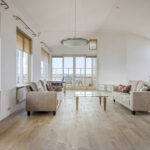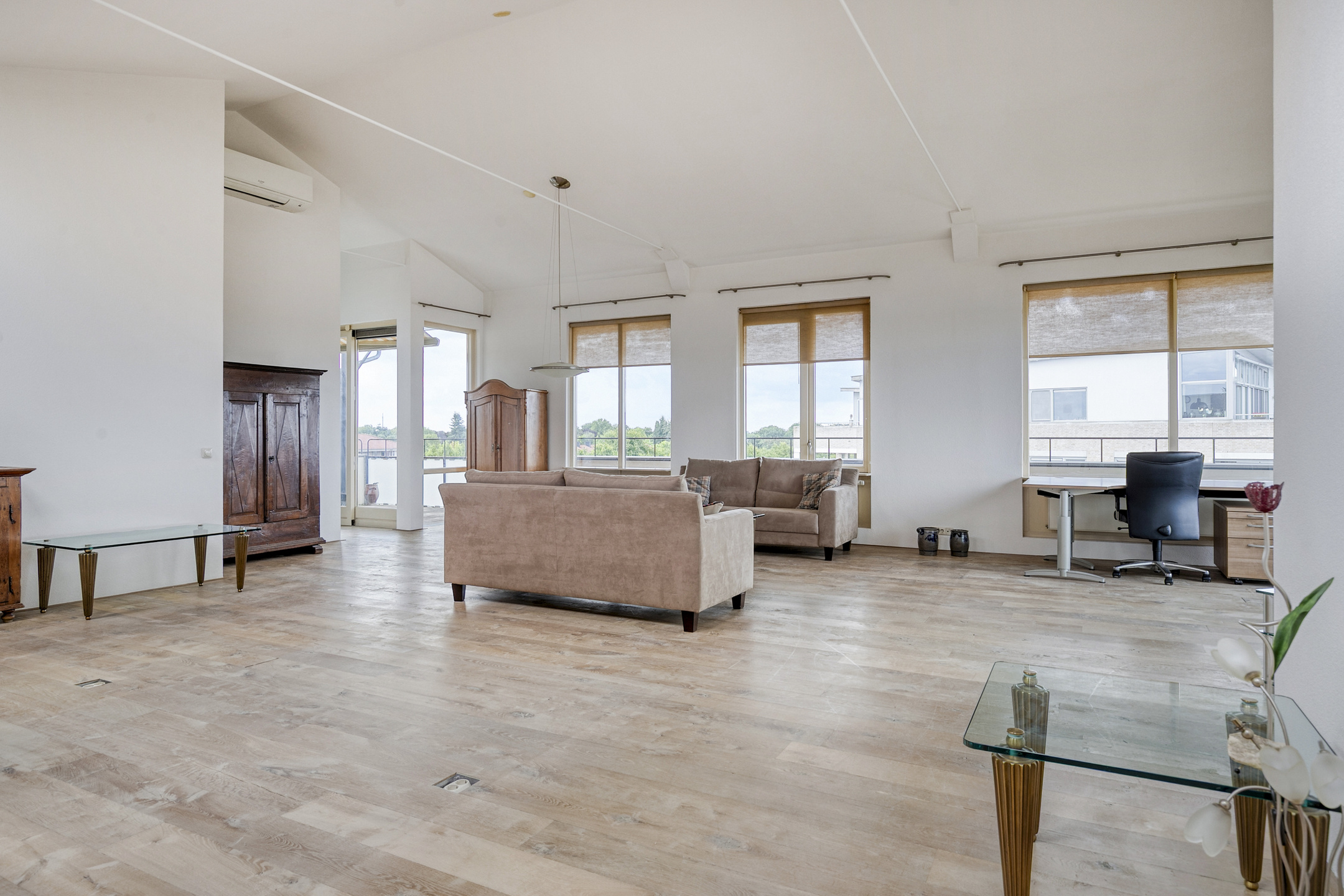 Het appartement is volledig geïsoleerd, uitgerust met meerdere airco's en grotendeels voorzien van een houten vloer en hoge plafonds met meerdere dakramen.