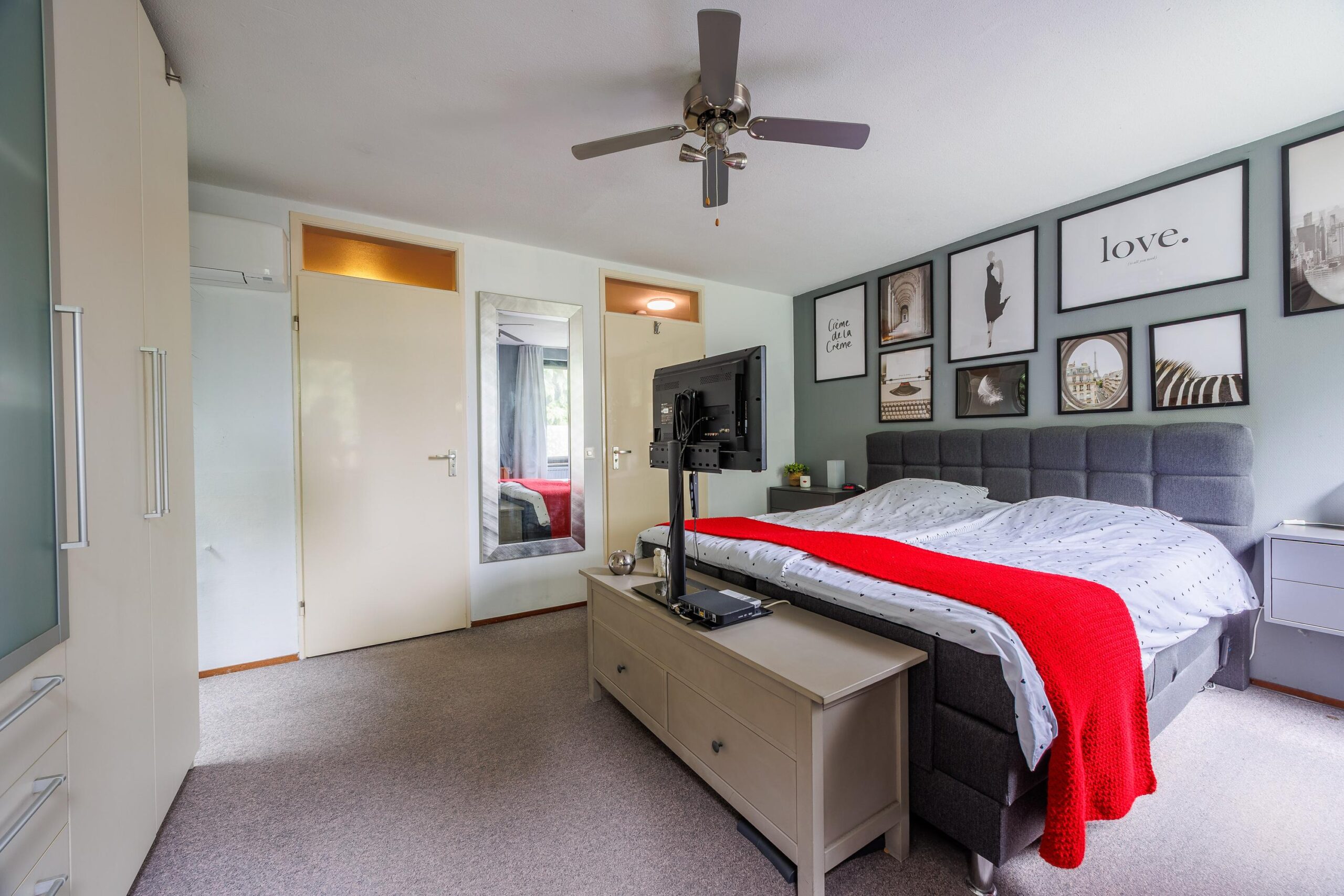 2e verdieping: via de overloop kom je uit in de primaire slaapkamer (met airco) en de badkamer. Via de opgang kom je in de tweede en derde slaapkamer.