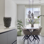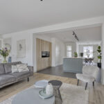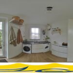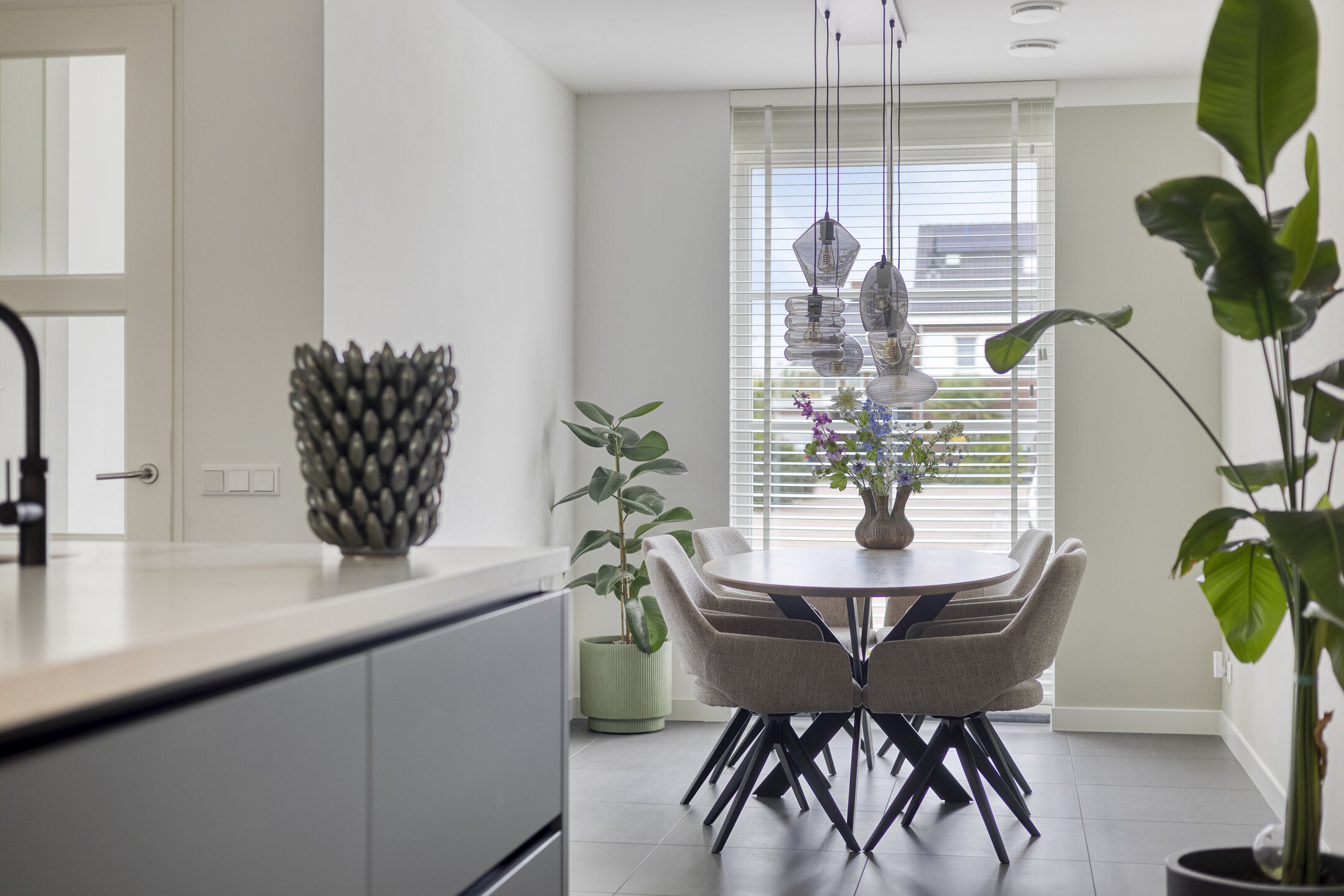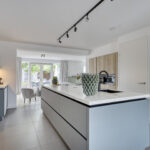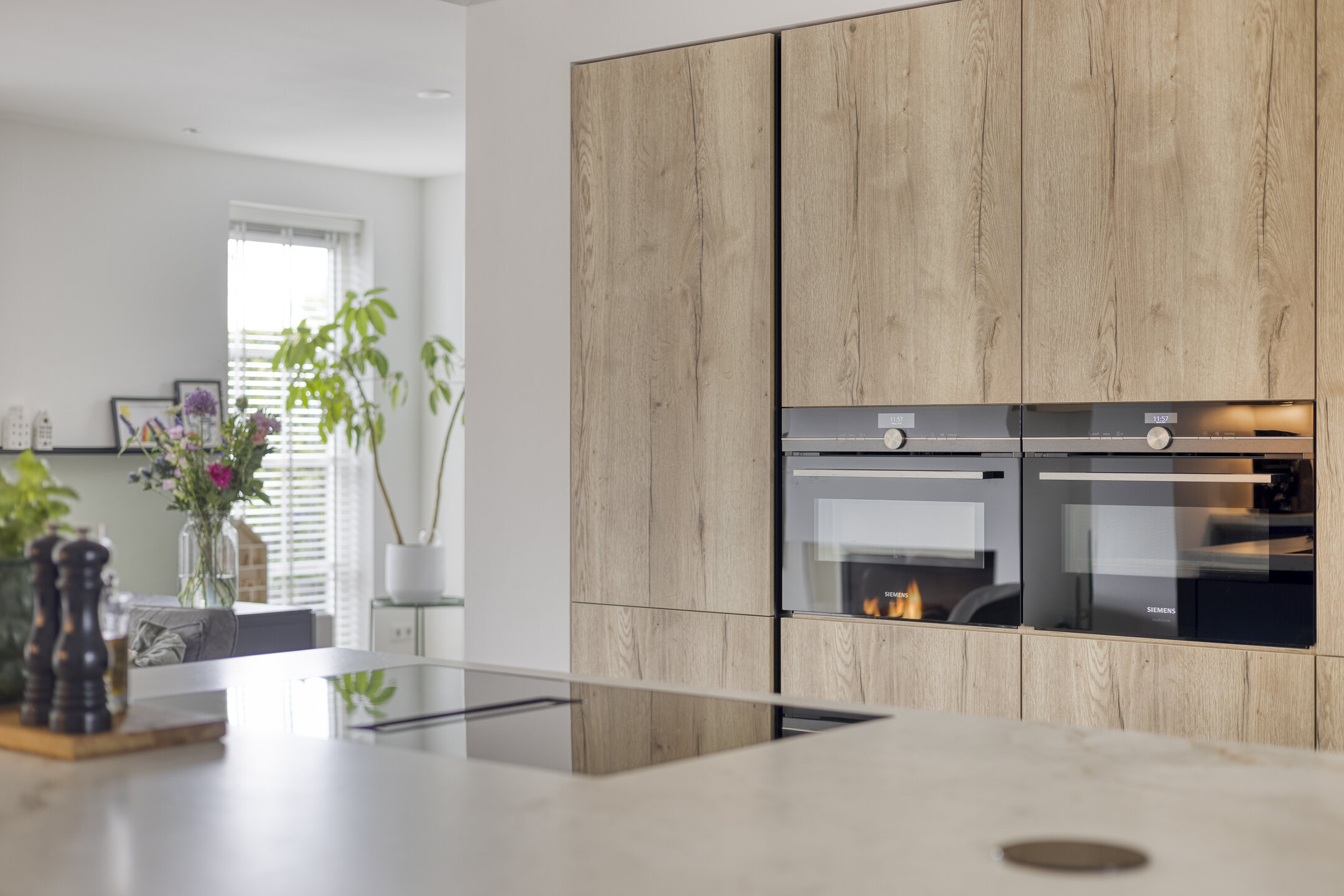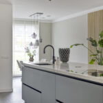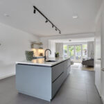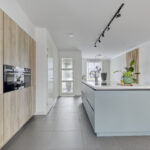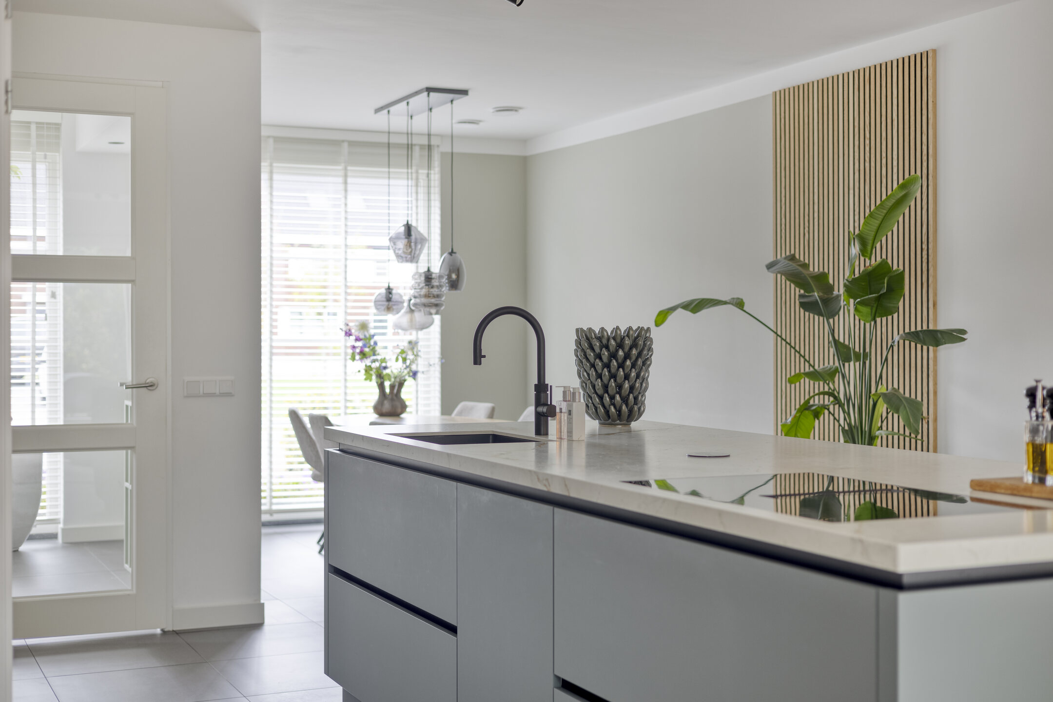 De luxe keukenopstelling is in 2022 compleet vernieuwd en luxe ingericht met o.a. een kookeiland met een inductiekookplaat met geïntegreerde afzuiging, oven, combimagnetron, vaatwasser en Quooker.