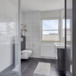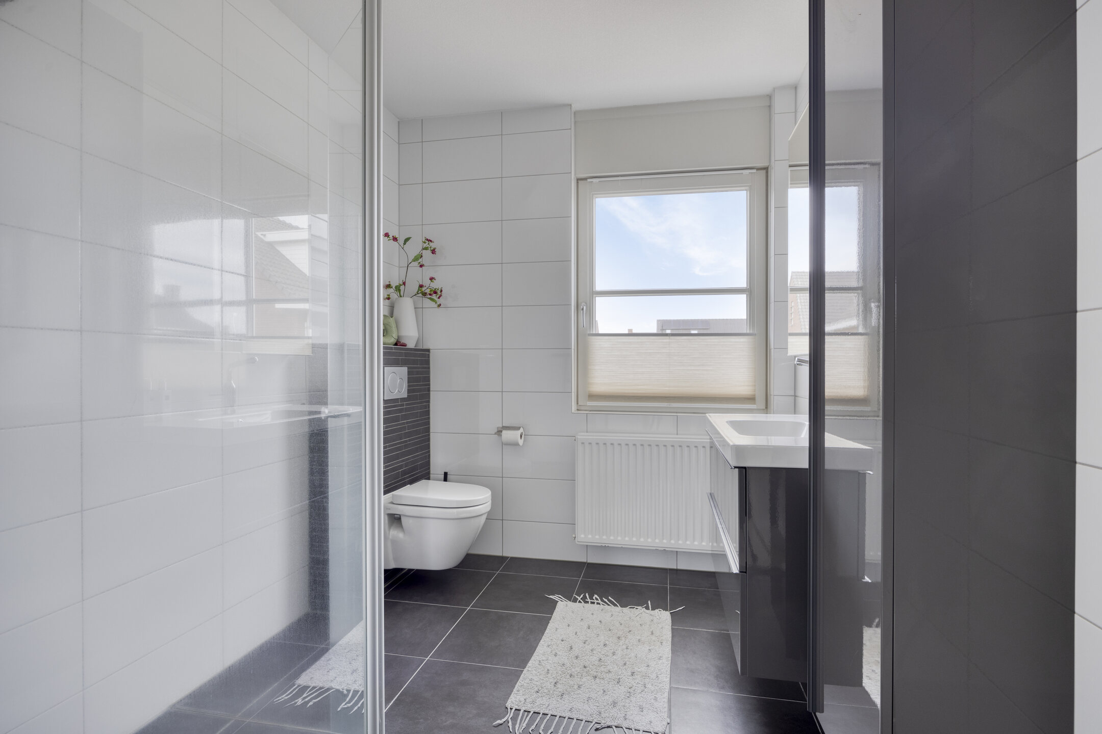 1e verdieping: overloop, 3 slaapkamers, een geheel betegelde badkamer voorzien van een inloopdouche, wandcloset en wastafel met meubel.