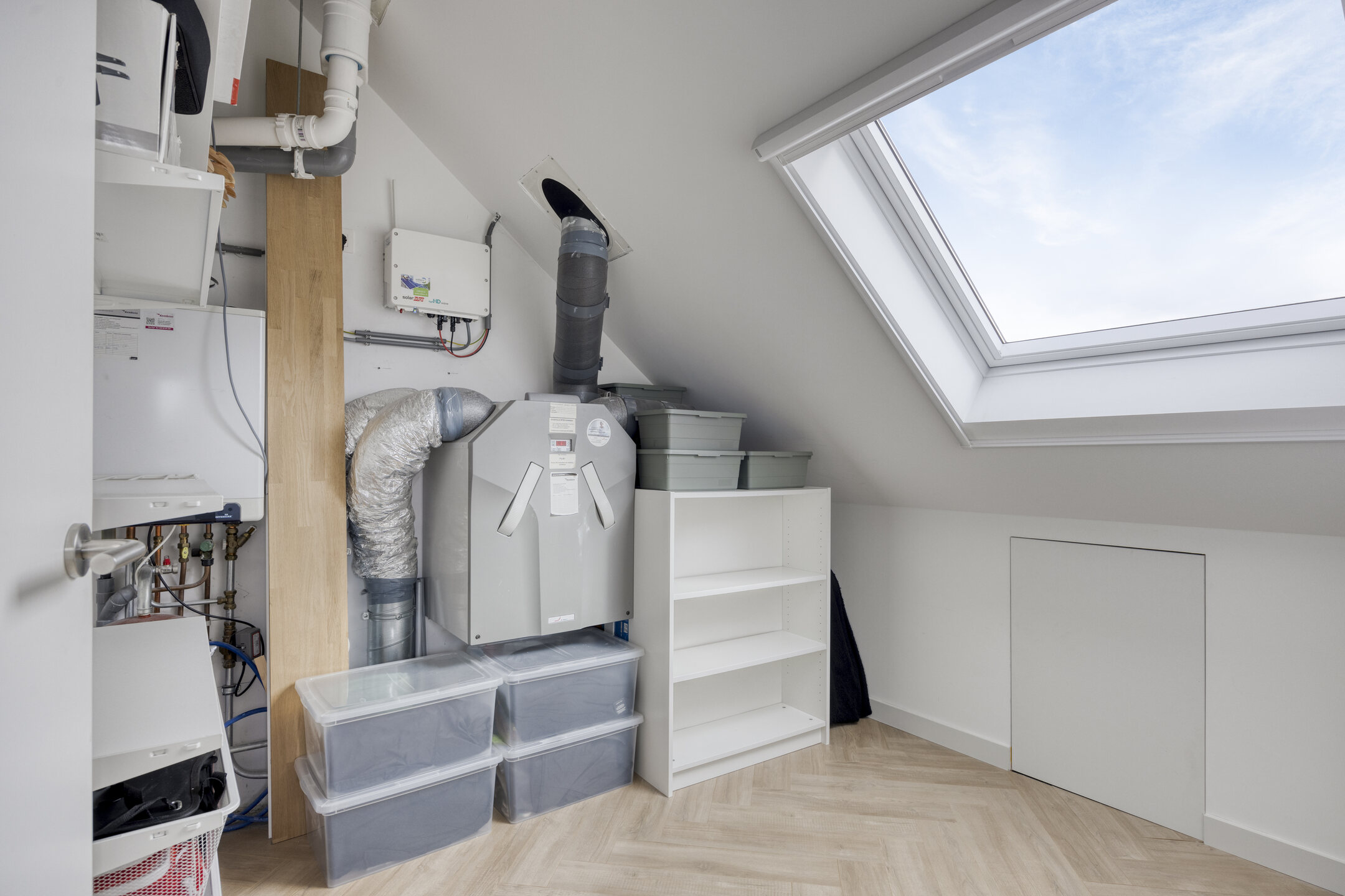2e verdieping: via een vaste trap te bereiken voorzolder met aparte cv-ruimte met volop bergruimte en een riante 4e slaapkamer met dakkapel.