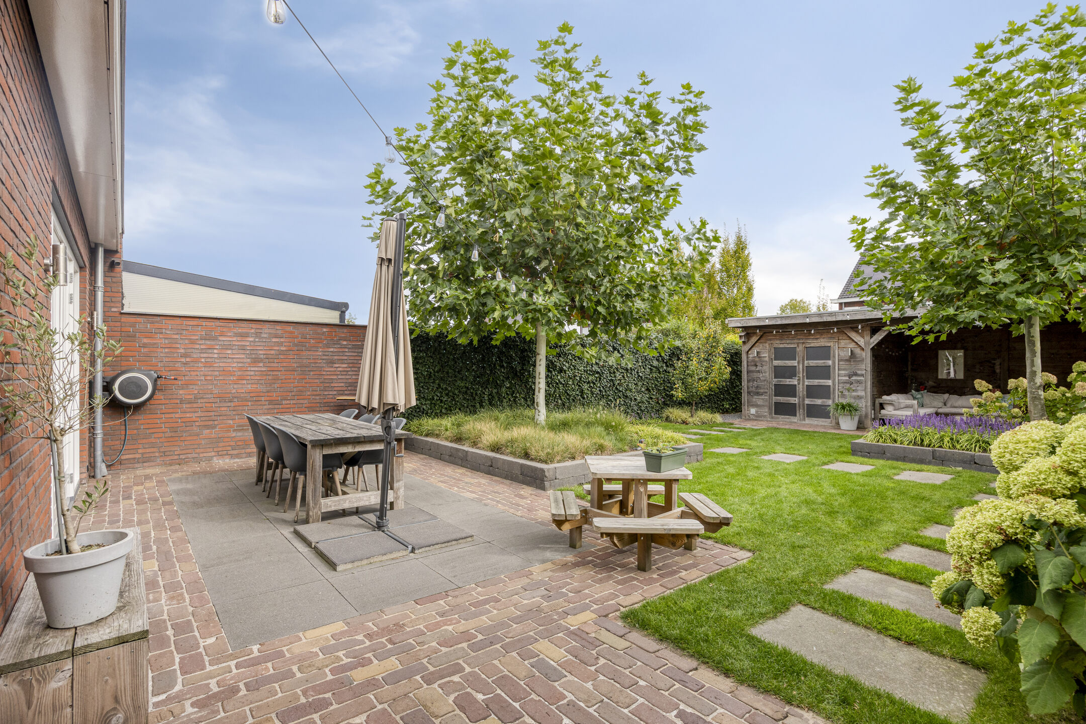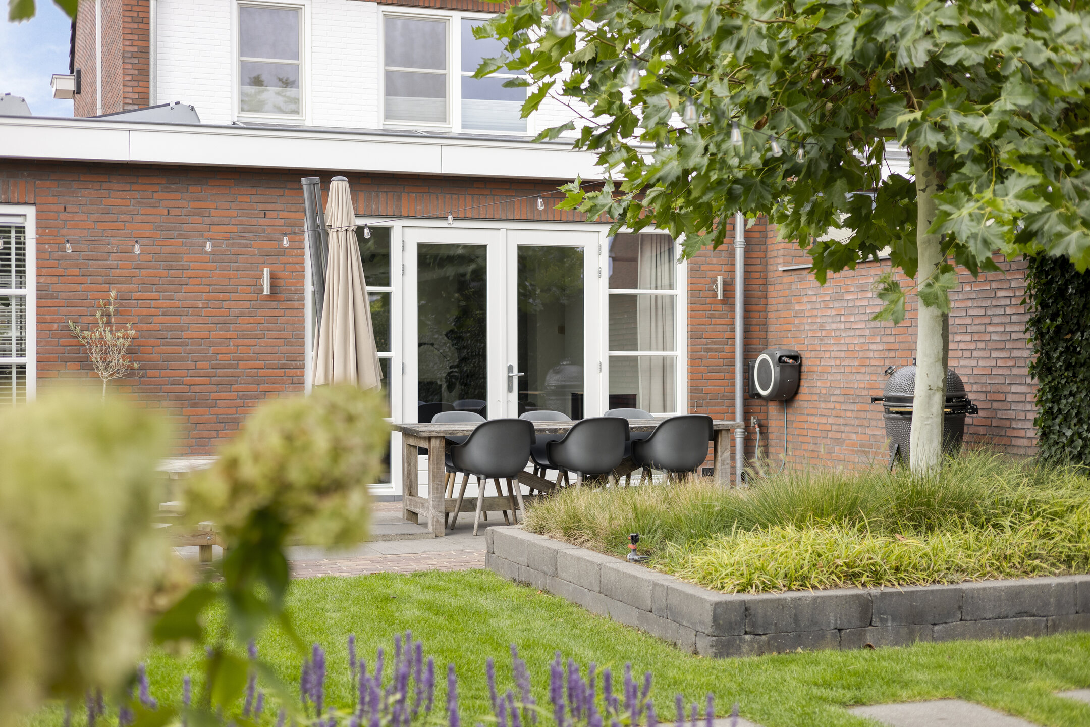 De royale achtertuin is gunstig gelegen t.o.v. de zon en biedt veel privacy.