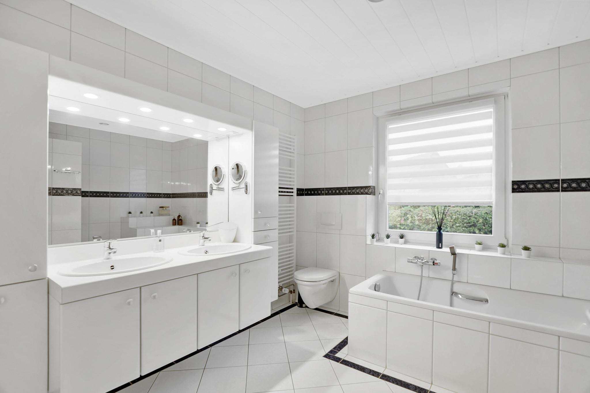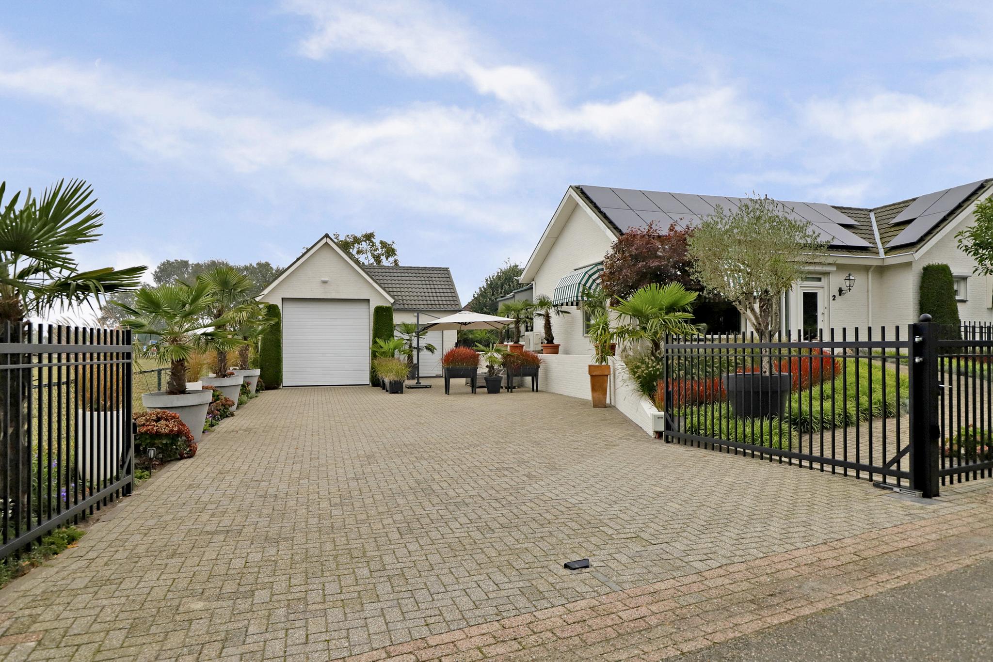 De woning beschikt over een inpandige garage én een luxe vrijstaande garage voorzien van verwarming, 2 elektrische roldeuren, water, een grondwaterpuls en een vliering.