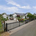 Links en rechts van de woning bevinden zich elektrische toegangspoorten.