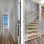 Begane grond: hal met meterkast en toiletruimte voorzien van zwevend toilet en fonteintje, ruime woonkamer met verrassende indeling door een moderne keuken in het midden van de ruimte, aan…
