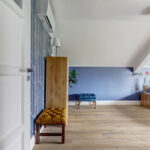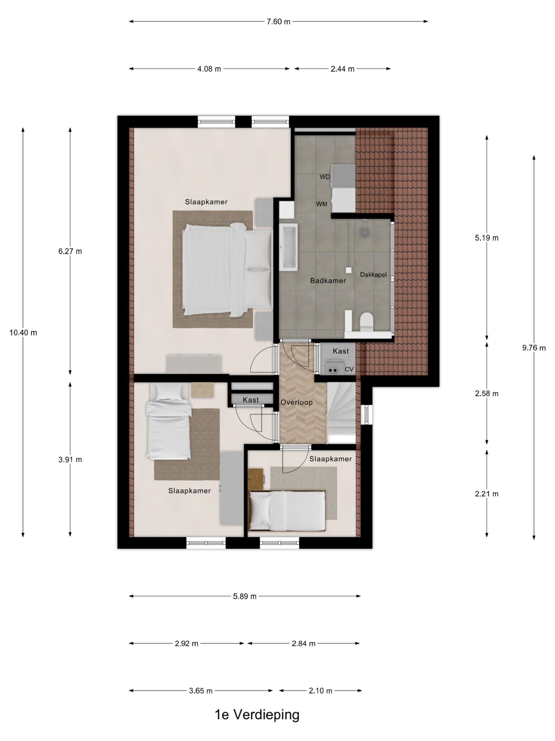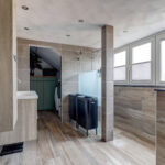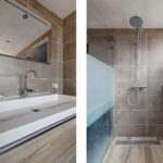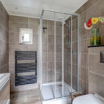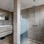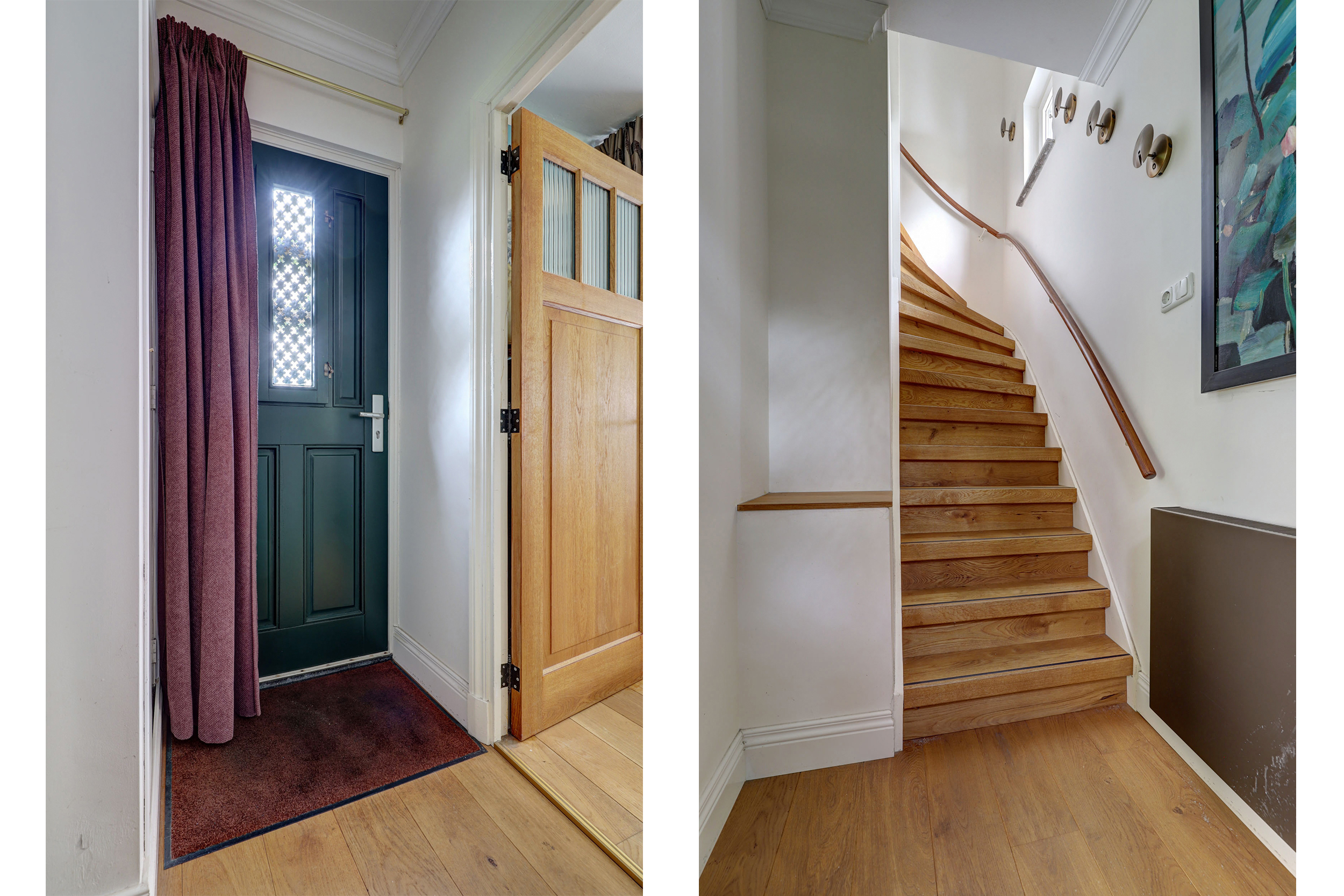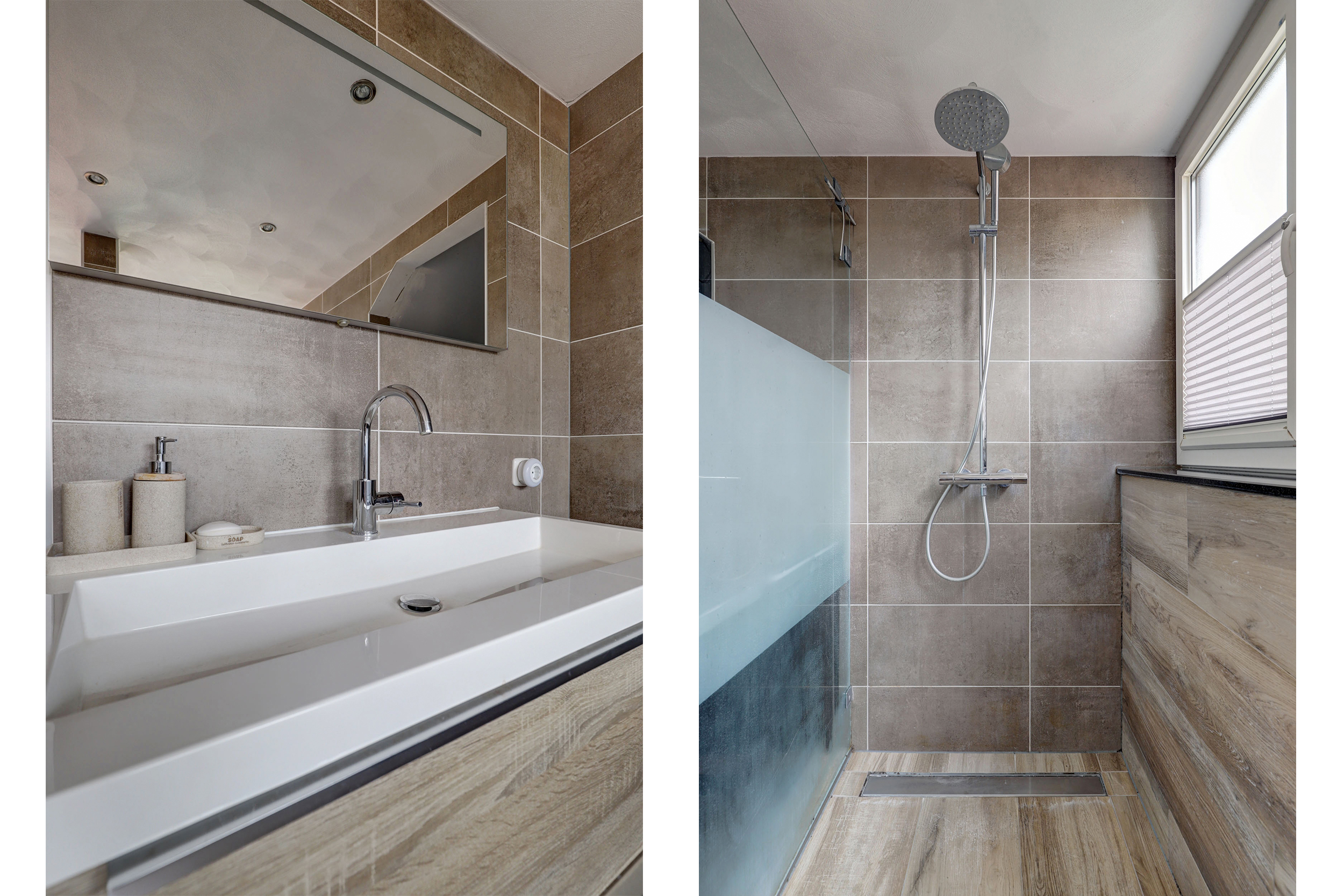 1e verdieping: overloop, 3 slaapkamers, in 2019 vernieuwde badkamer voorzien van inloopdouche, toilet, dubbele wastafel, geïntegreerde wasruimte met witgoedaansluitingen en de cv-opstelling.