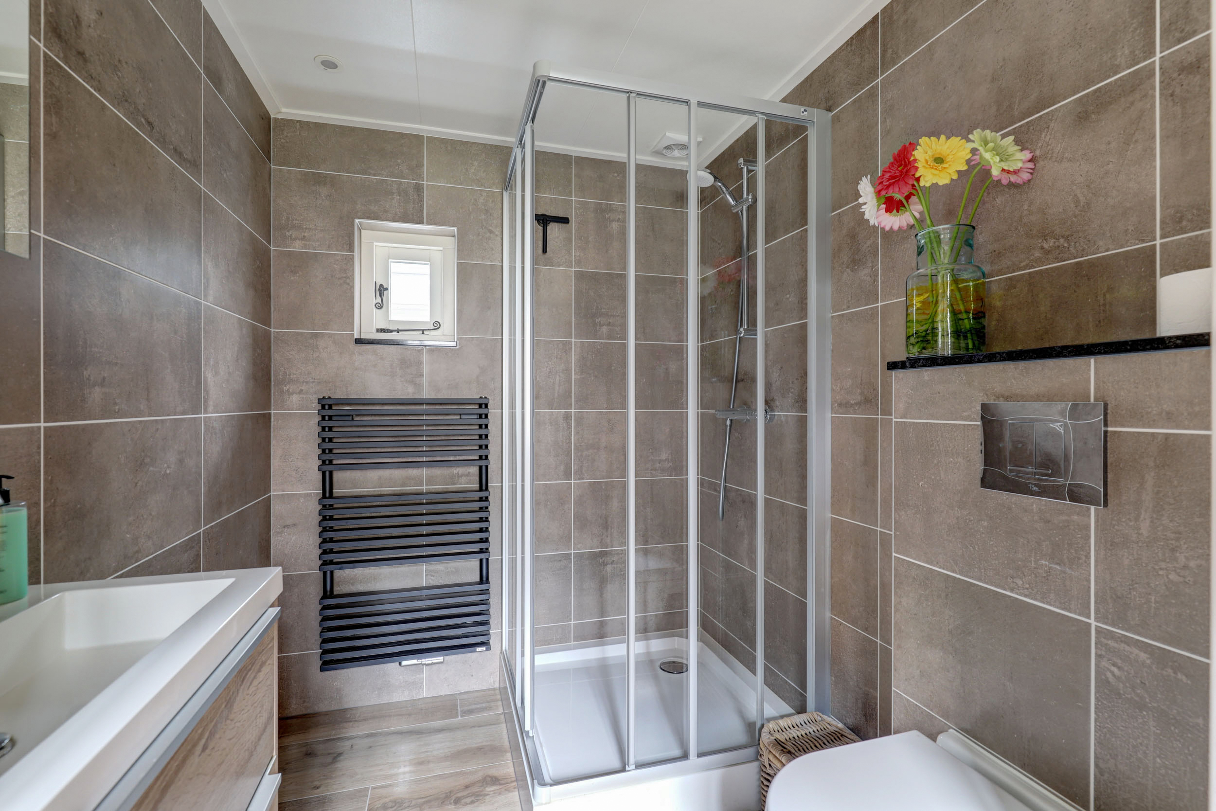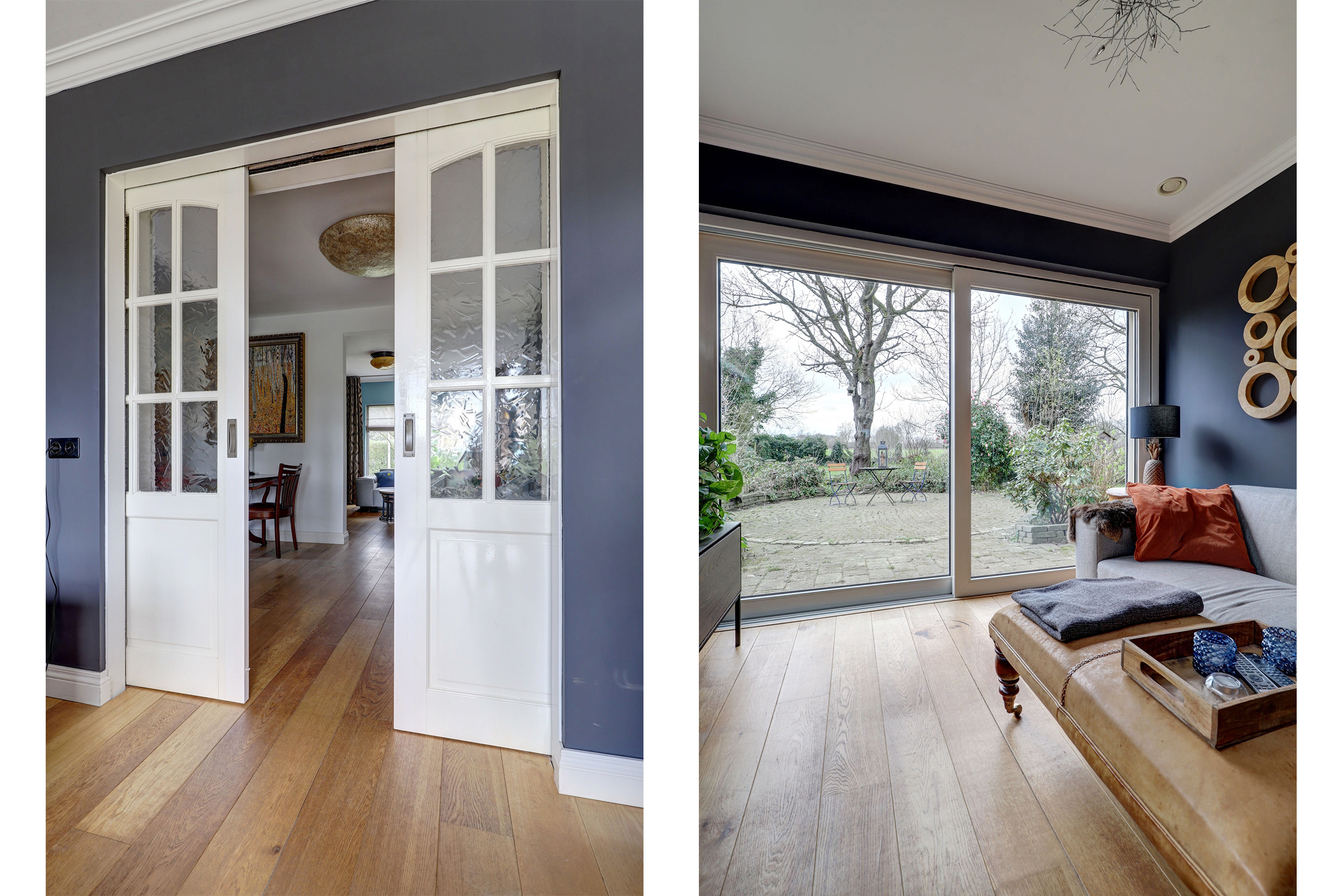 Een groot gedeelte van de begane grond is voorzien van vloerverwarming (deel van de woonkamer, bijkeuken, keuken en douche).