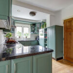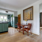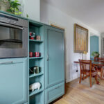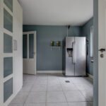 De keuken beschikt over de volgende inbouwapparatuur: 5-pits gaskookplaat, vaatwasser, combioven, afzuigkap en dubbele spoelbak.