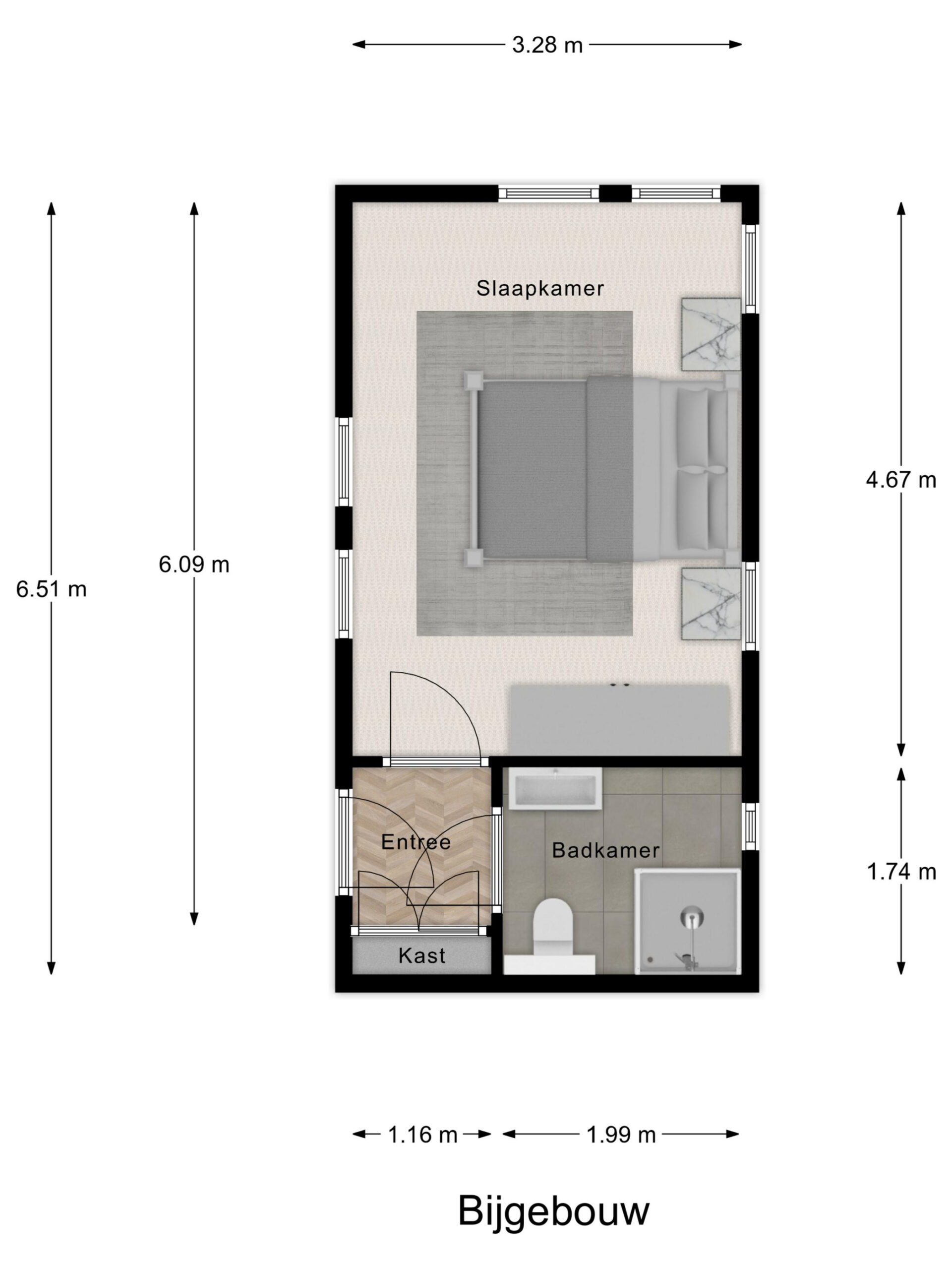 Het fraaie vrijstaande bijgebouw is voor meerdere doeleinden geschikt; bijvoorbeeld als gastenverblijf, een huisgebonden beroep of kantoorruimte. Deze geïsoleerde ruimte beschikt over een doucheruimte, toilet, vloerverwarming, airco en een eigen cv-ketel.