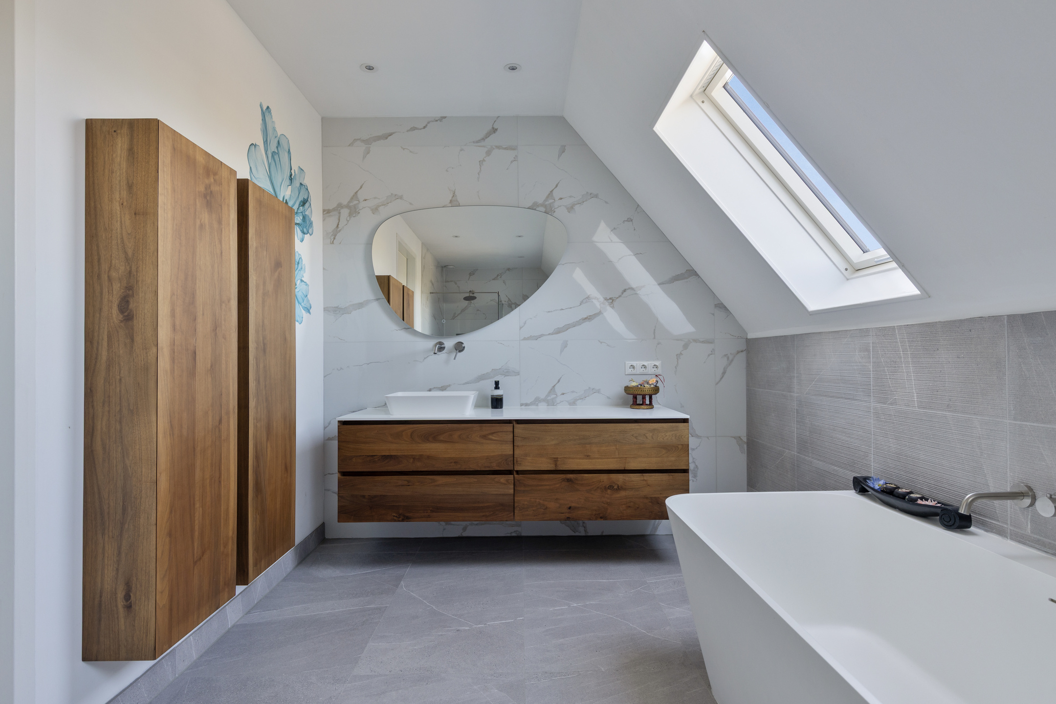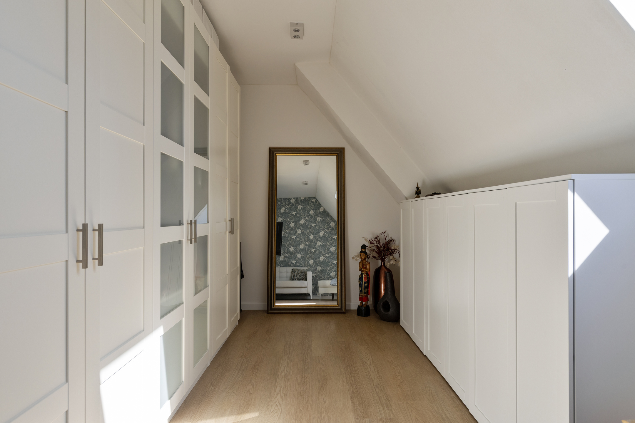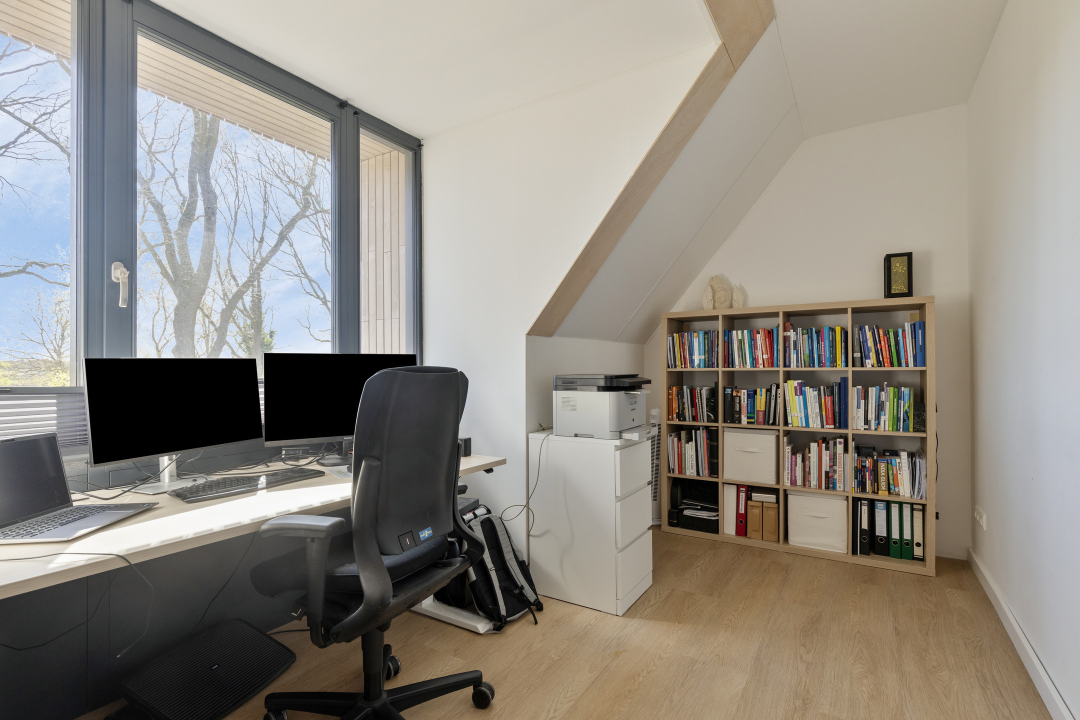 1e verdieping: overloop, 3 slaapkamers waarvan 1 riante ouderslaapkamer met een walk-in closet. Werkkamer en een badkamer voorzien van een ligbad, inloopdouche, wandtoilet en wastafel.