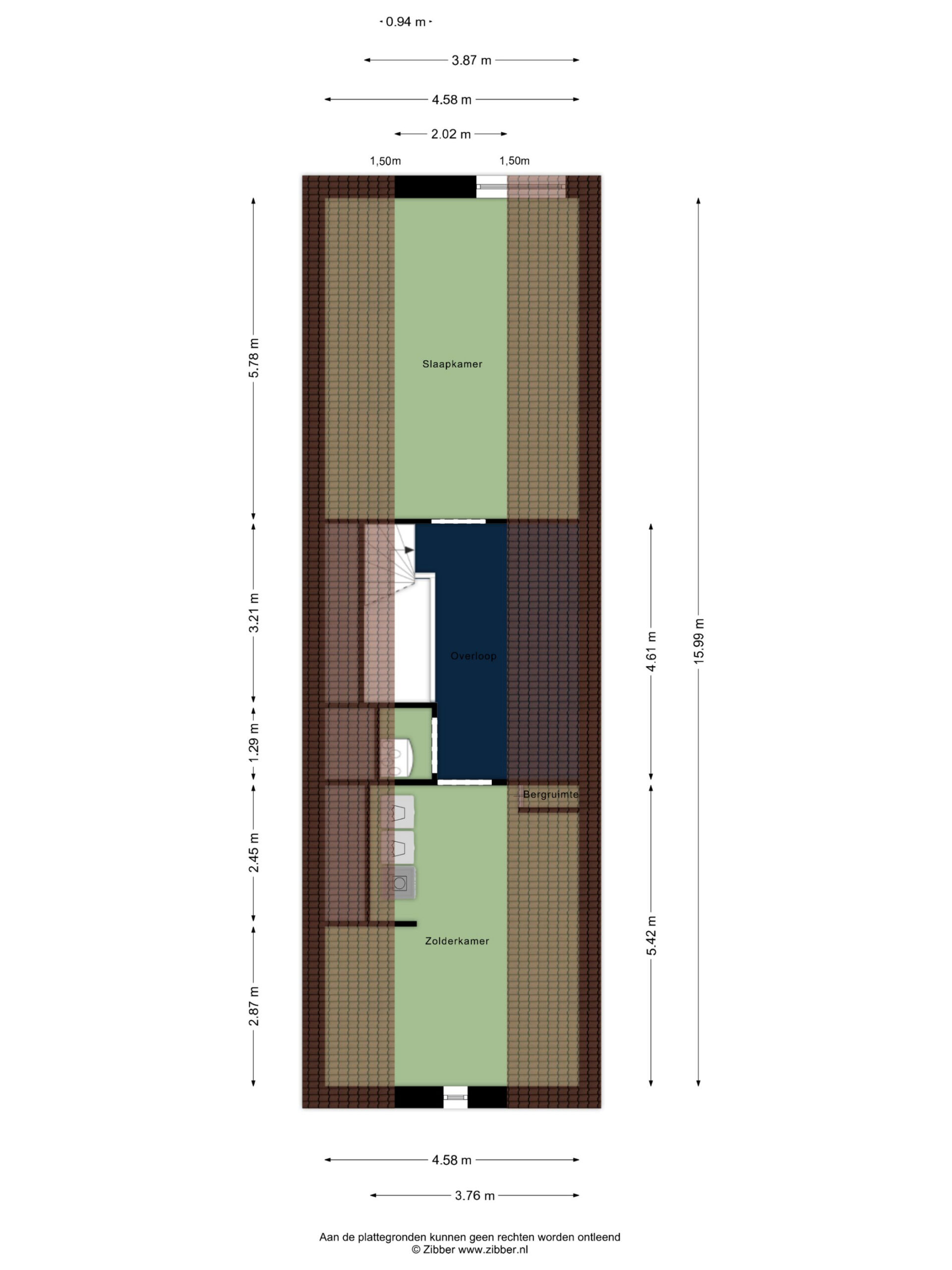 2e verdieping: via een vaste trap bereikbare zolderverdieping welke nu ingericht is met 2 slaapkamers en een bergzolder.