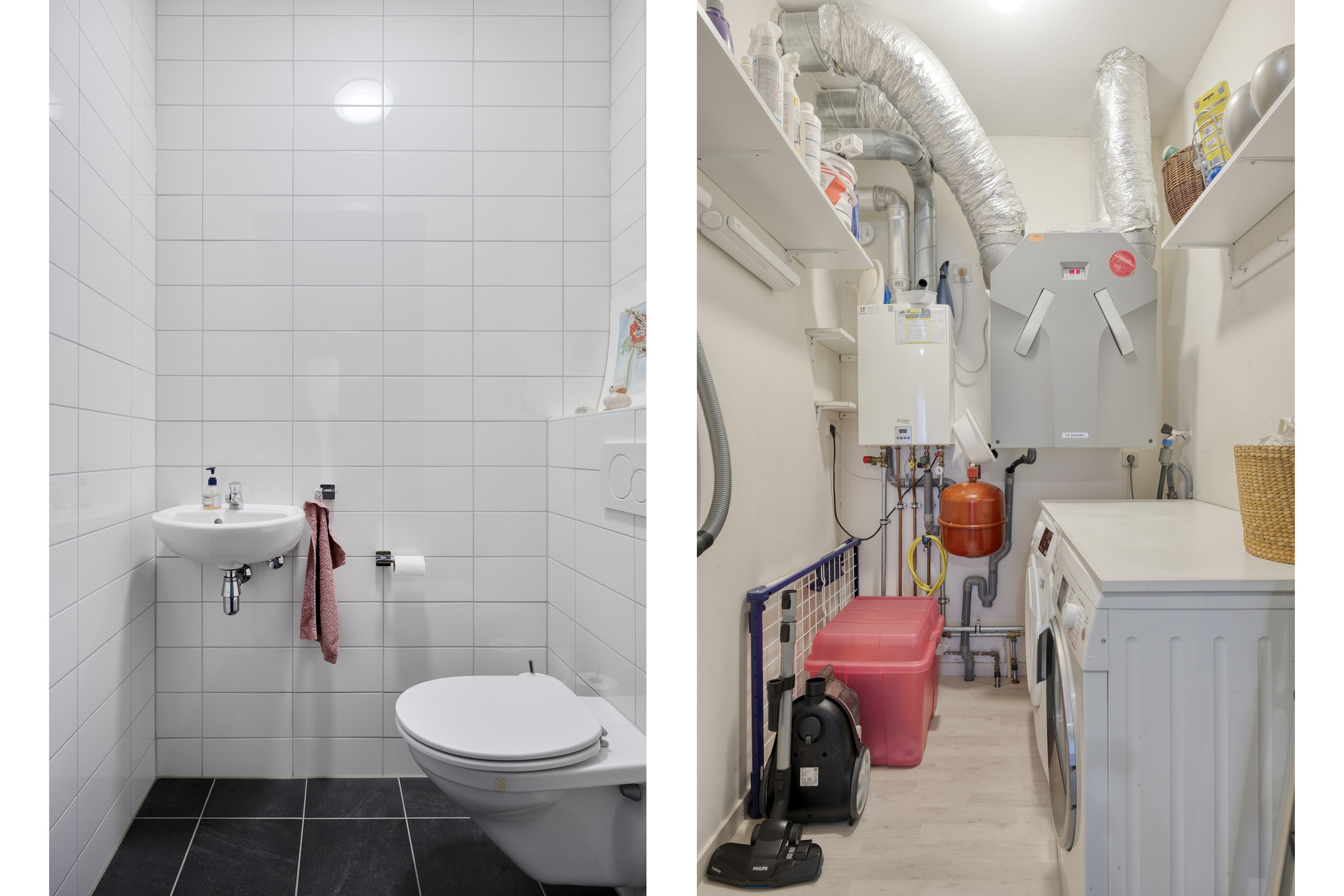 1e verdieping: royale entree/ hal, toiletruimte met een wandcloset en fonteintje, een praktische bergruimte met de aansluitingen ten behoeve van het witgoed, de cv-opstelling en WTW-unit. Twee royale en lichte slaapkamers en een badkamer in lichte kleurstelling voorzien van een…