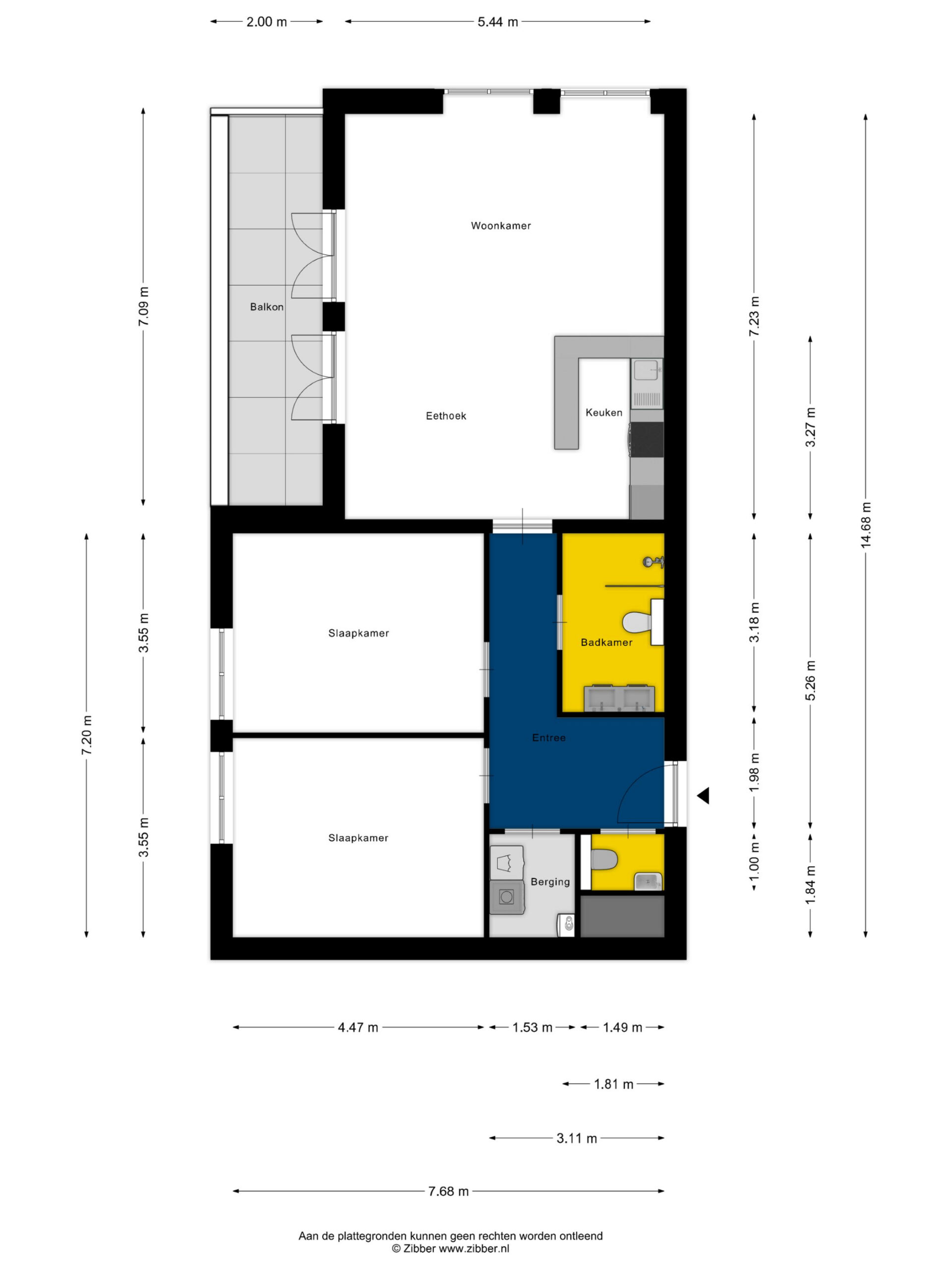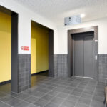 Begane grond: centrale entree, brievenbus en toegang tot de fietsenberging en parkeerkelder.