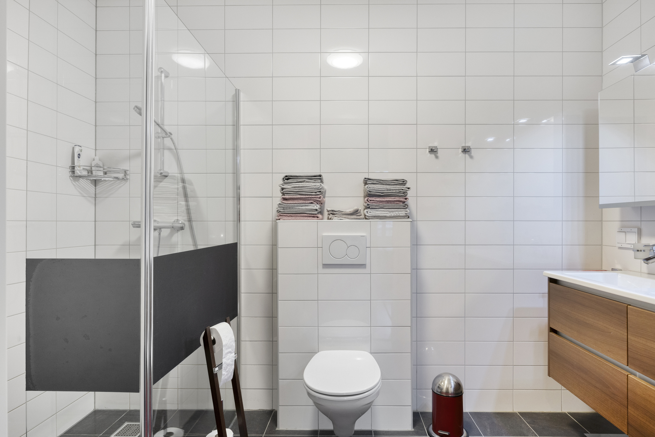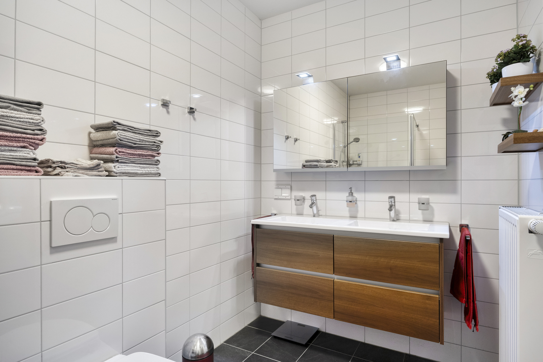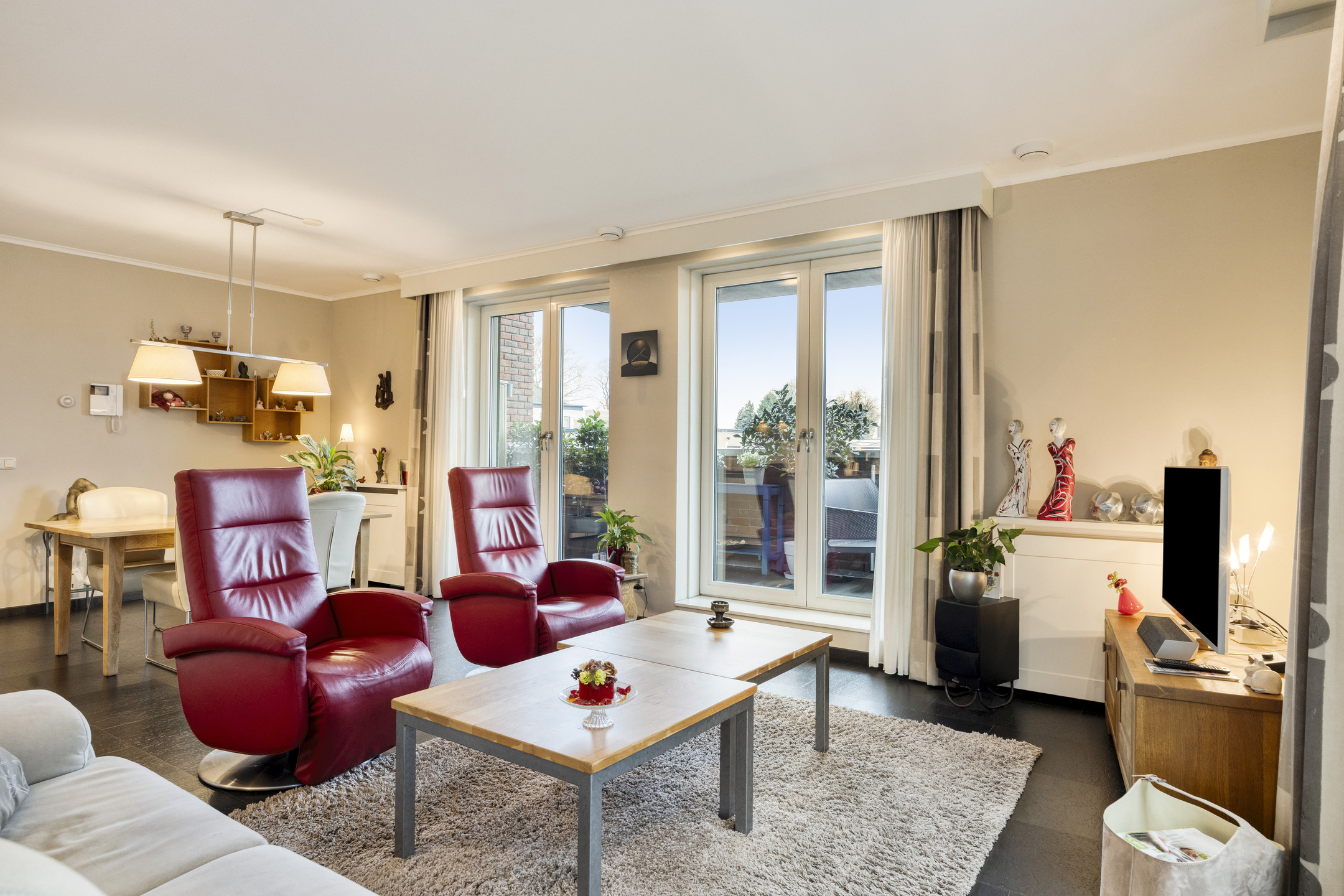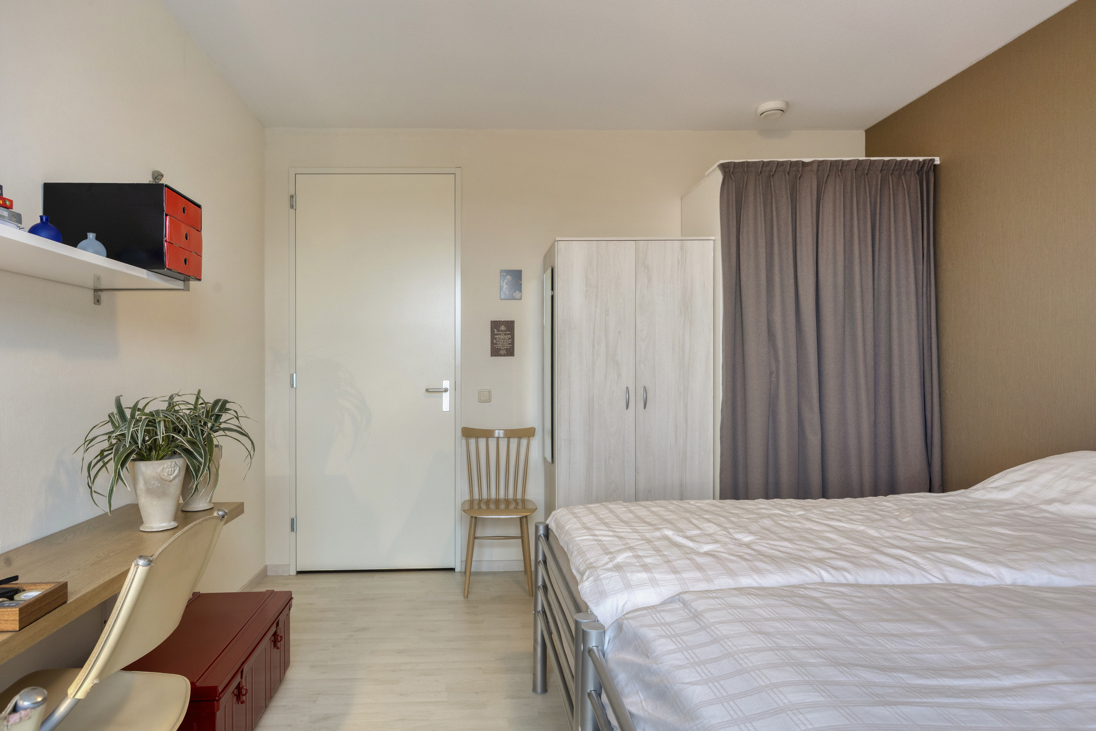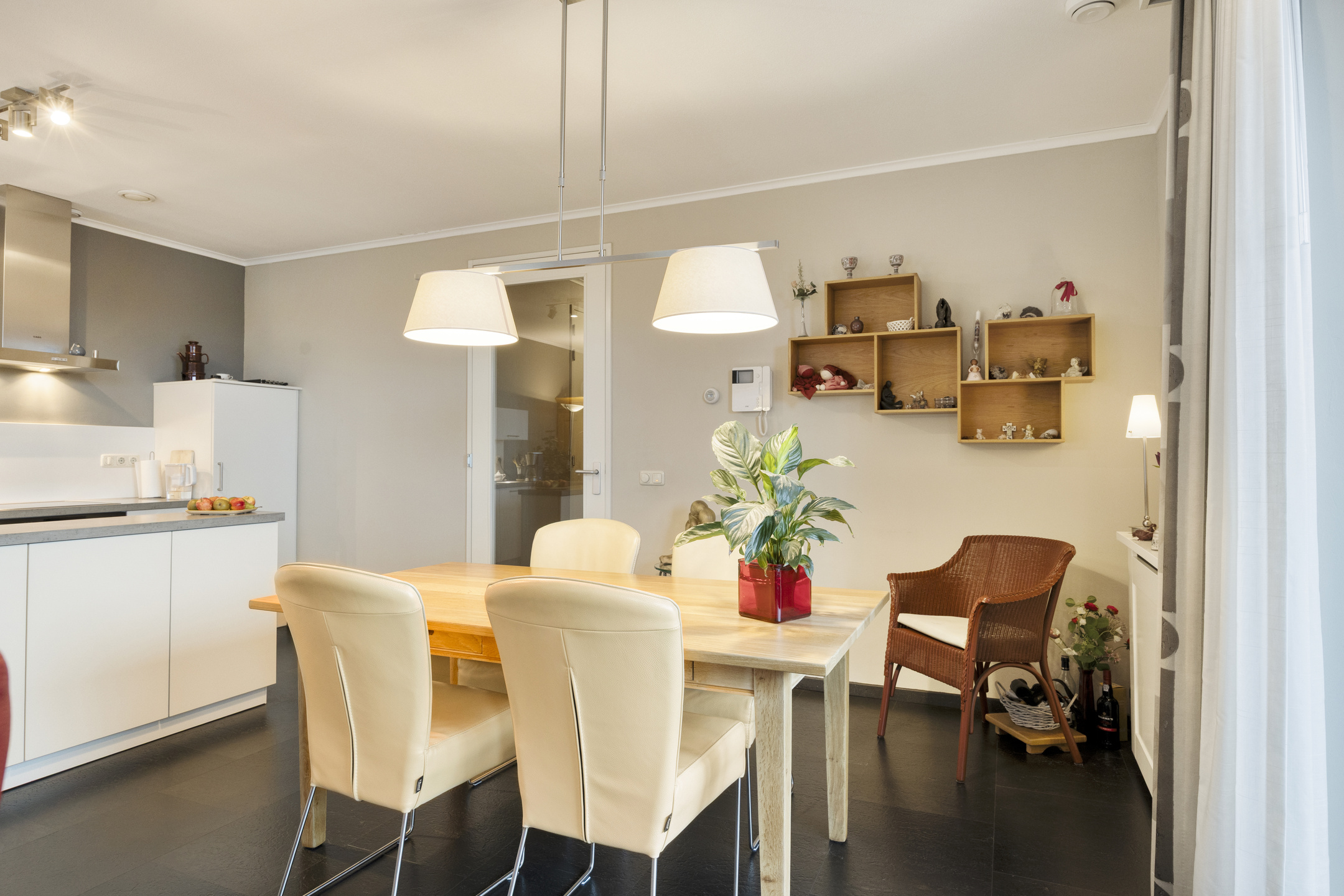 1e verdieping: royale entree/ hal, toiletruimte met een wandcloset en fonteintje, een praktische bergruimte met de aansluitingen ten behoeve van het witgoed, de cv-opstelling en WTW-unit. Twee royale en lichte slaapkamers en een badkamer in lichte kleurstelling voorzien van een douchecabine, dubbele wastafel met meubel en 2e toilet. De open keuken is ingericht met een luxe en zeer complete keukeninrichting, een mooie en lichte living met dubbele openslaande deuren die toegang bieden tot het royale balkon. Het appartement beschikt over een eigen parkeerplaats in de parkeerkelder onder het gebouw en over een privé berging.