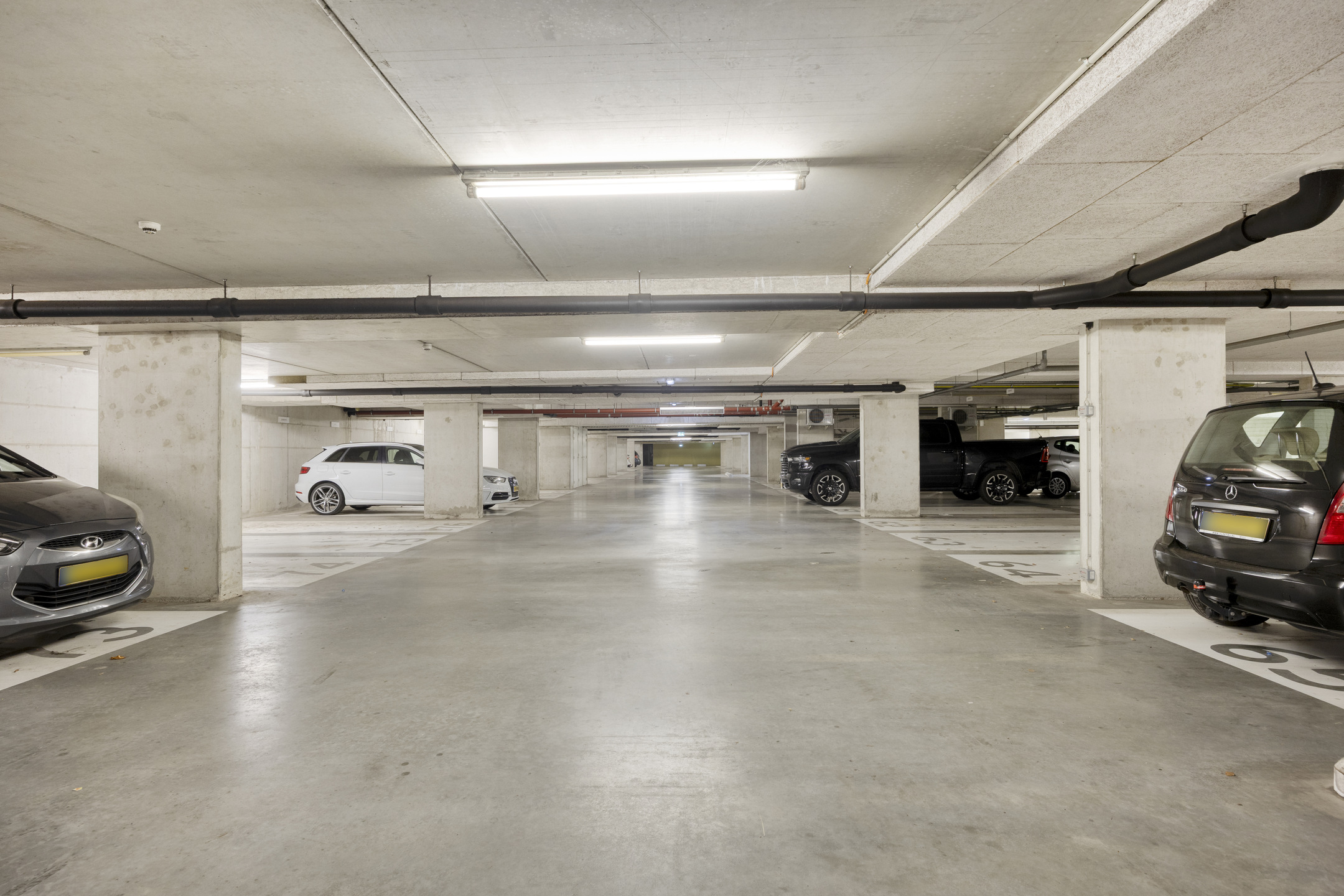 Een vaste parkeerplaats en privé berging in de afgesloten parkeergarage.