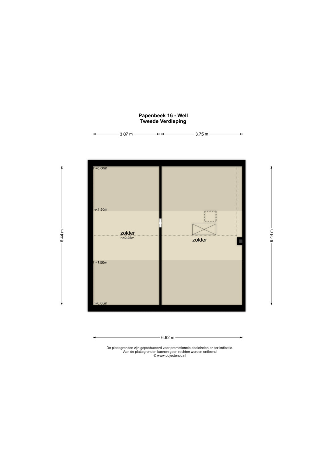 2e verdieping: bereikbaar middels een steektrap, vliering.