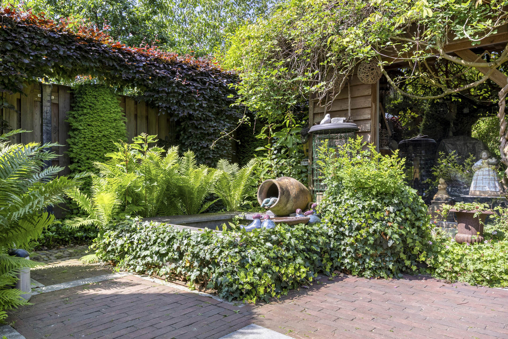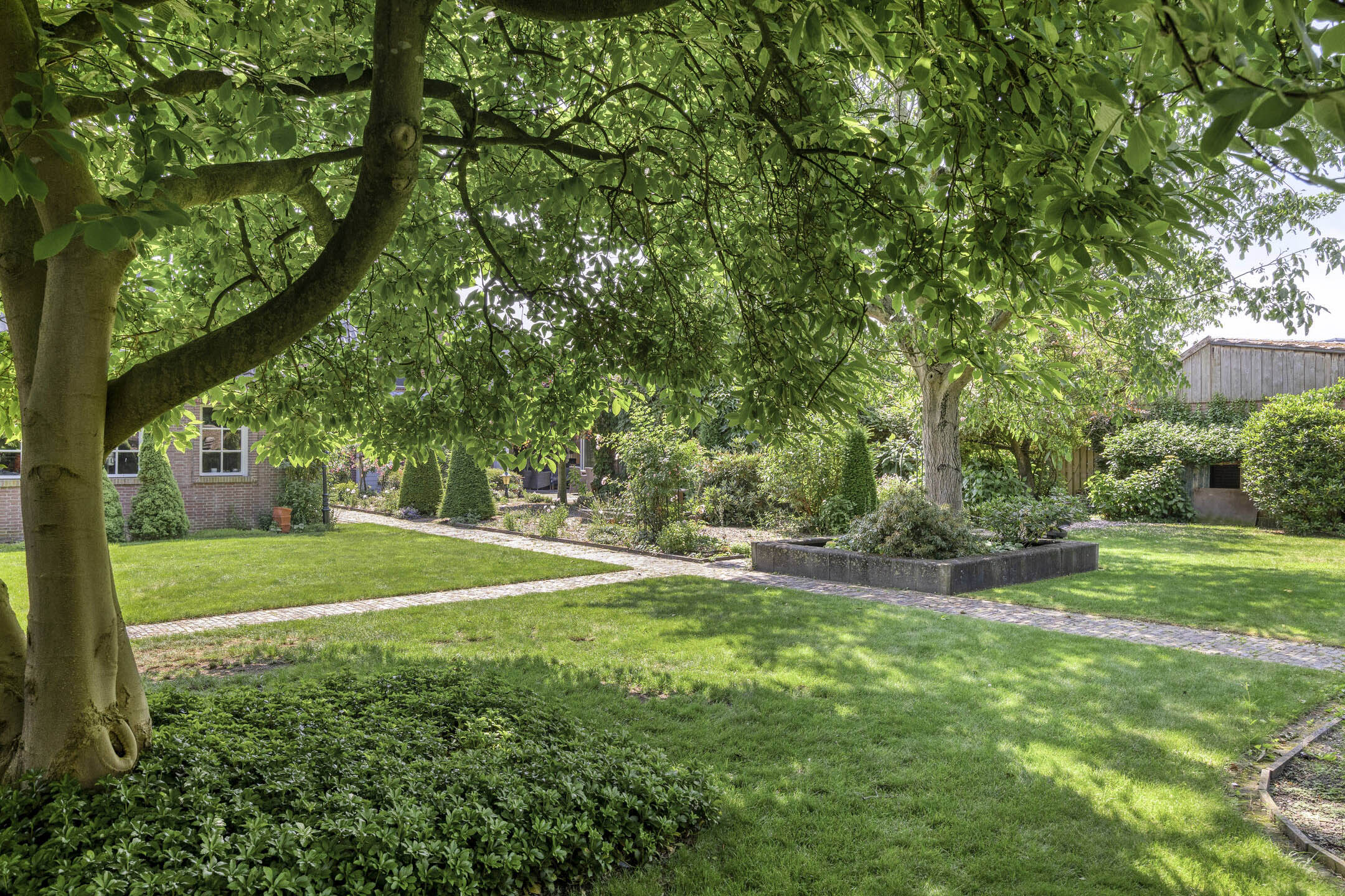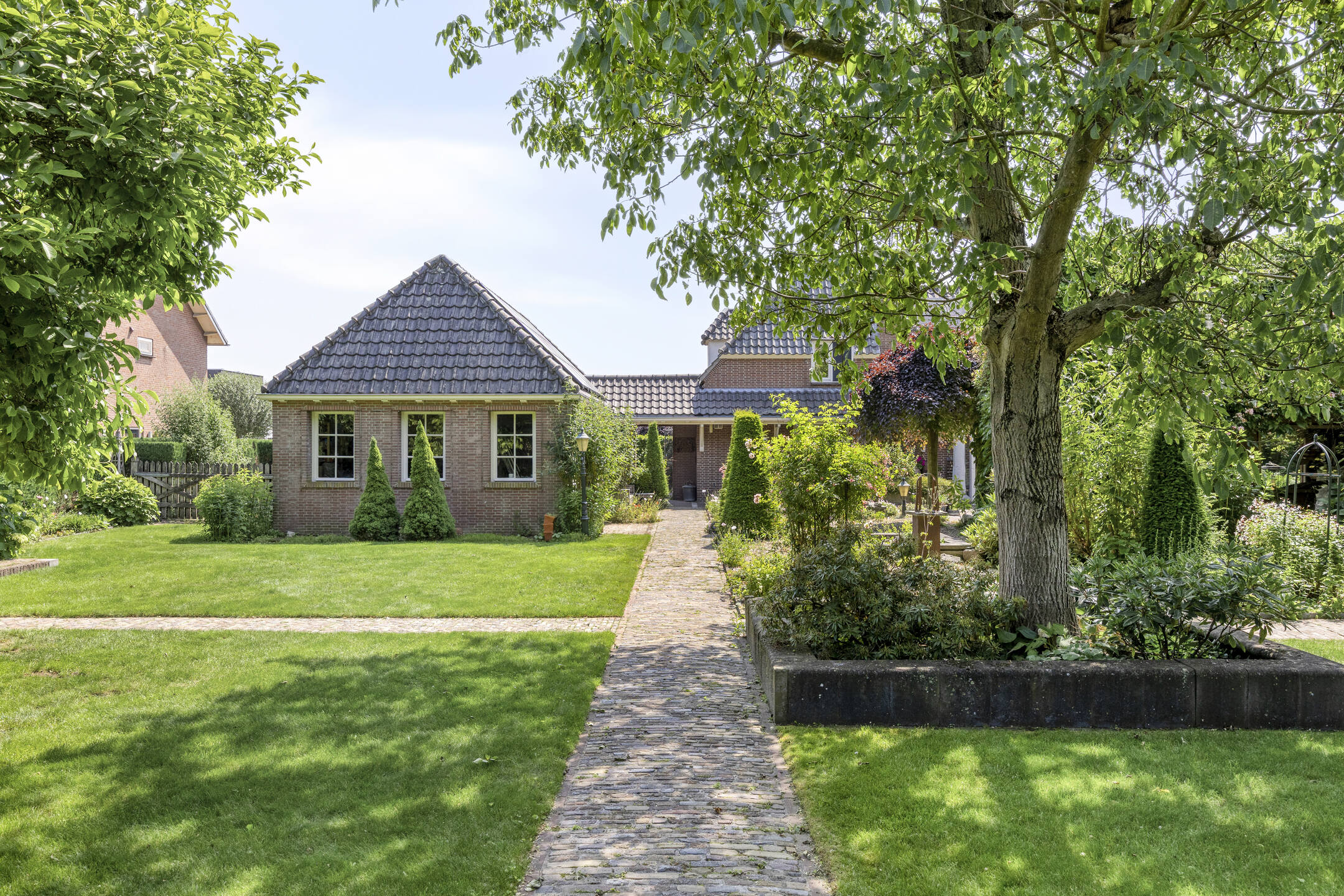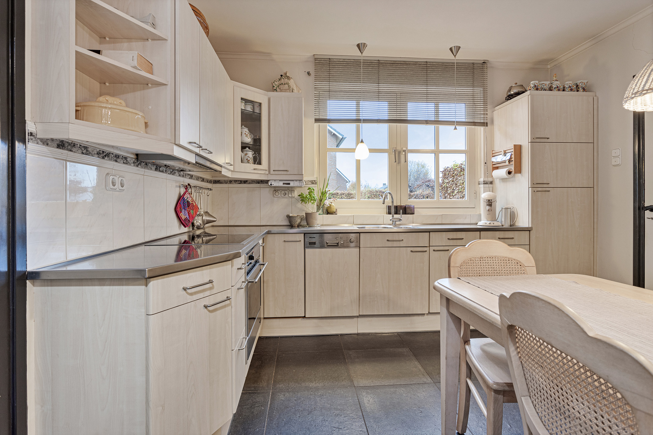 Begane grond: entree, hal, meterkast, woonkamer met vloerverwarming, een leistenen vloer en een open haard, toegang via de openslaande deuren naar de tuinkamer met een open haard en schuifpui welke toegang biedt tot de privacybiedende achtertuin. De woonkeuken is voorzien van diverse inbouwapparatuur, ruime bijkeuken met toiletruimte en wasruimte met de aansluitingen t.b.v. het witgoed en een wastafel.