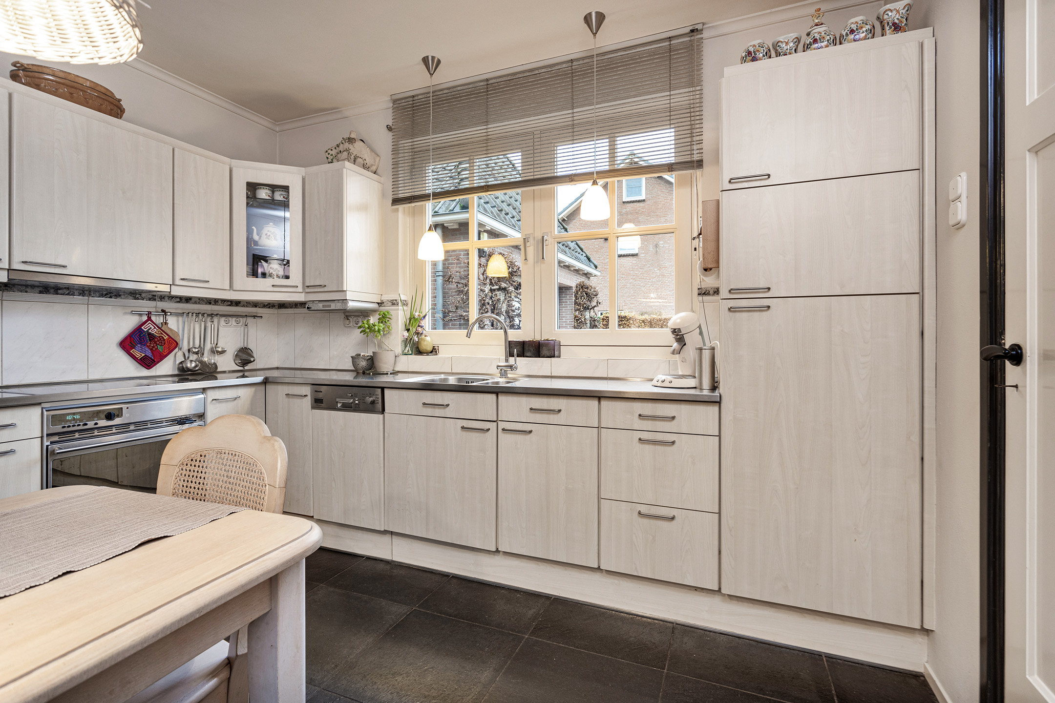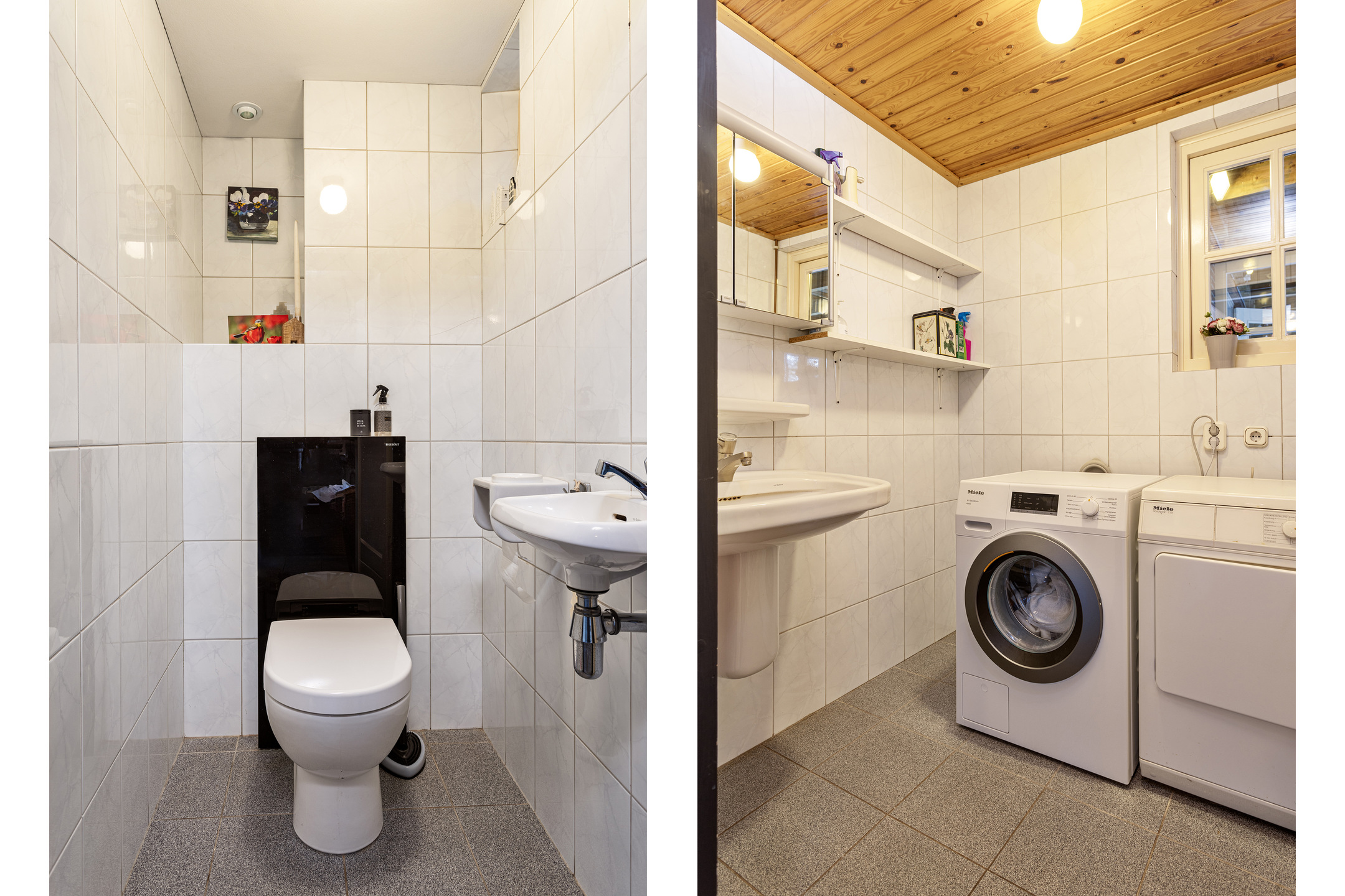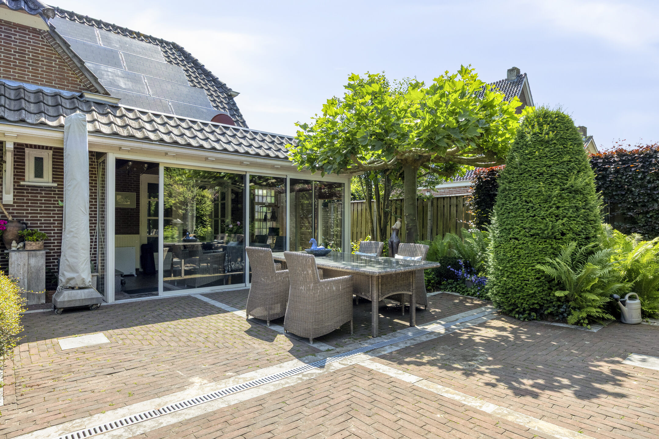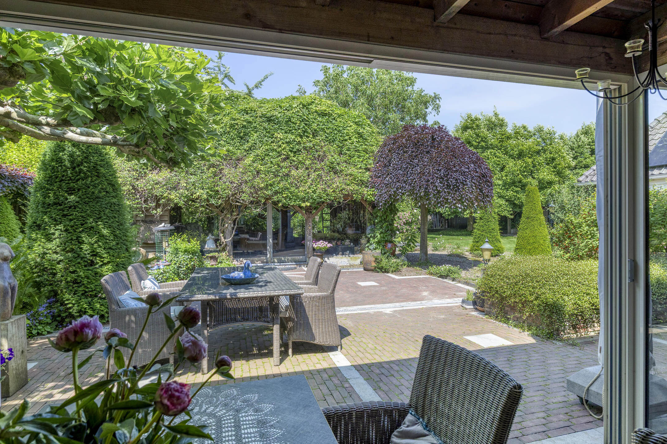 Begane grond: entree, hal, meterkast, woonkamer met vloerverwarming, een leistenen vloer en een open haard, toegang via de openslaande deuren naar de tuinkamer met een open haard en schuifpui welke toegang biedt tot de privacybiedende achtertuin. De woonkeuken is voorzien van diverse inbouwapparatuur, ruime bijkeuken met toiletruimte en wasruimte met de aansluitingen t.b.v. het witgoed en een wastafel.