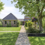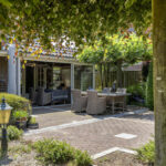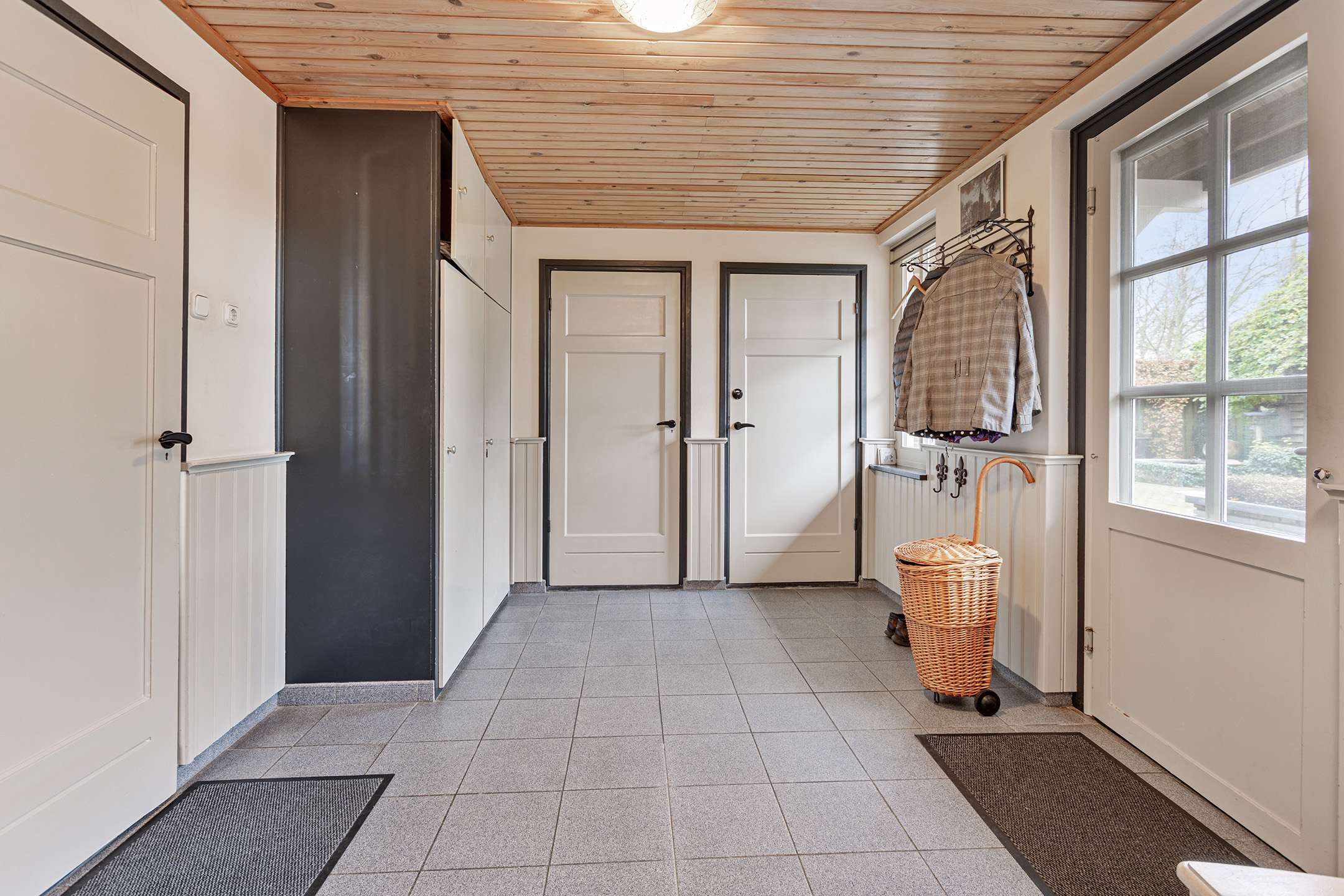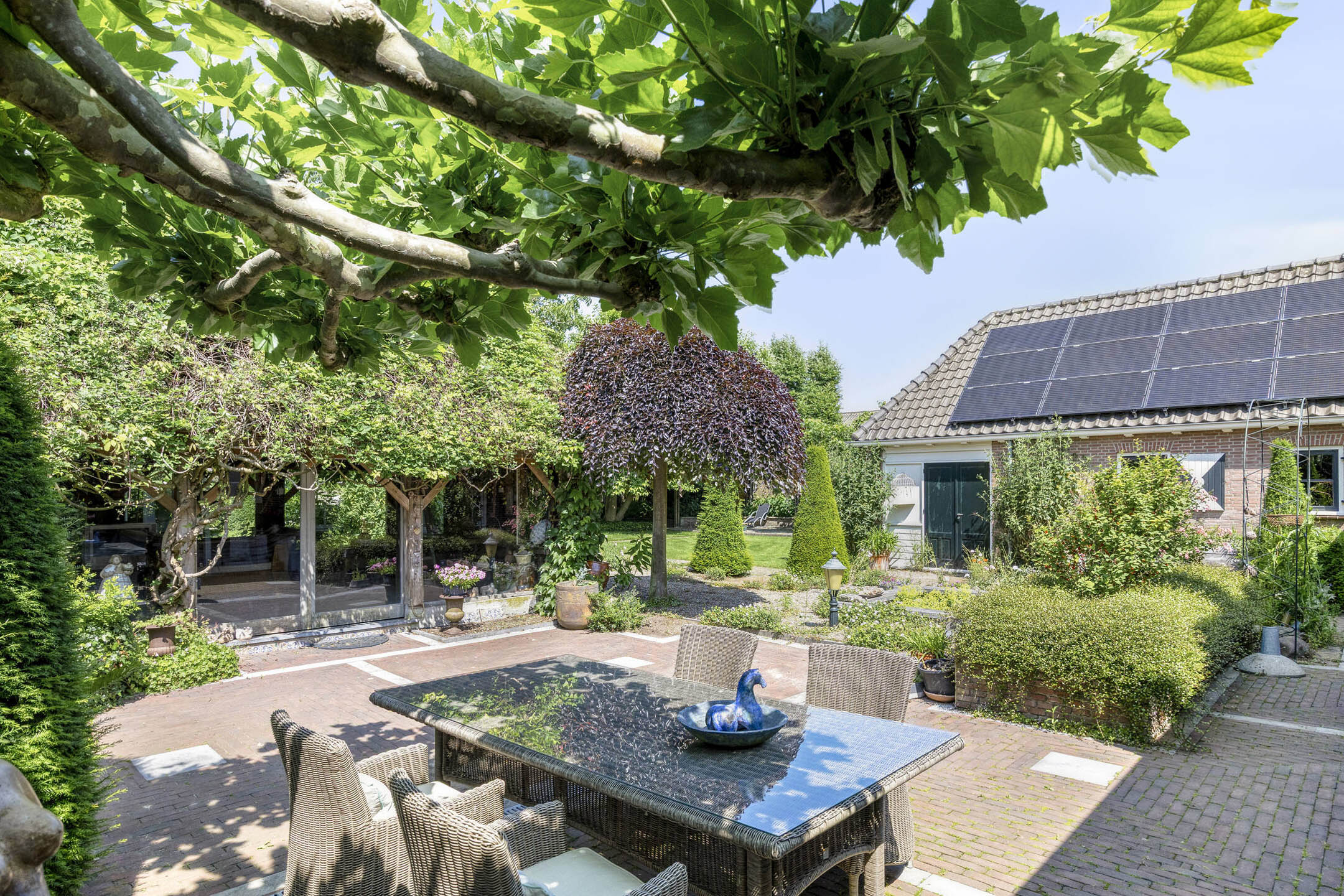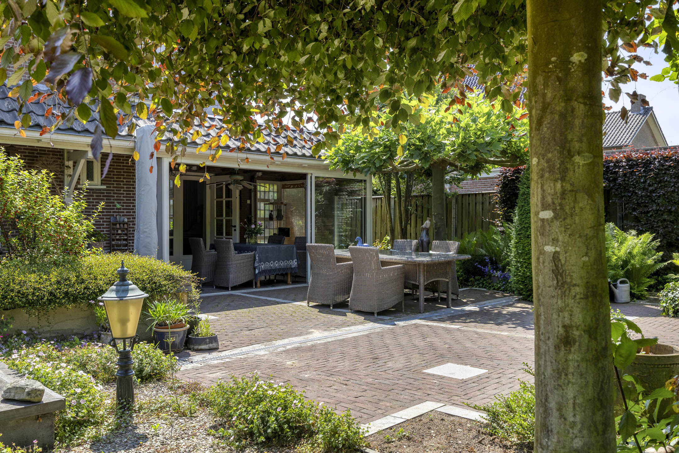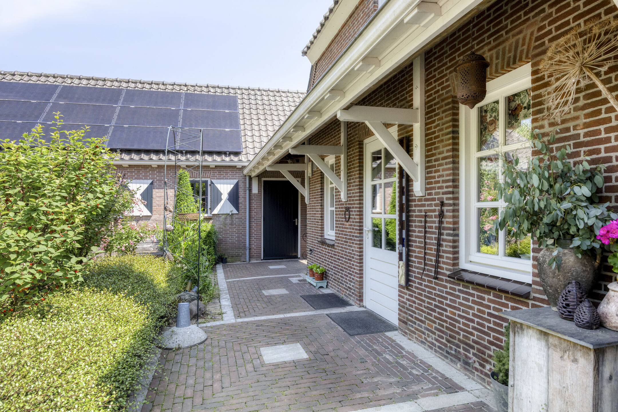 Begane grond: entree, hal, meterkast, woonkamer met vloerverwarming, een leistenen vloer en een open haard, toegang via de openslaande deuren naar de tuinkamer met een open haard en schuifpui welke toegang biedt tot de privacybiedende achtertuin. De woonkeuken is voorzien van diverse inbouwapparatuur, ruime bijkeuken met toiletruimte en wasruimte met de aansluitingen t.b.v. het witgoed en een wastafel.