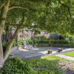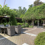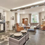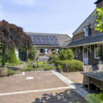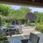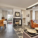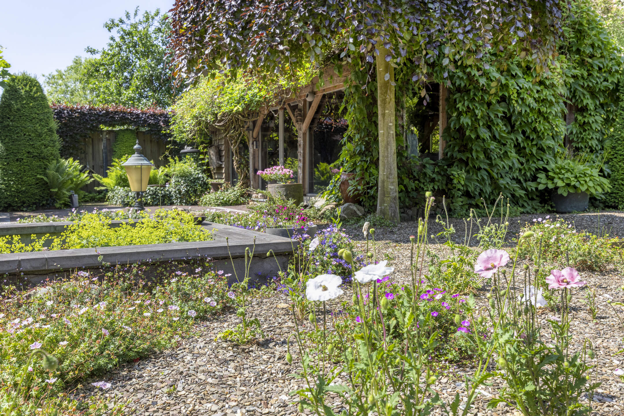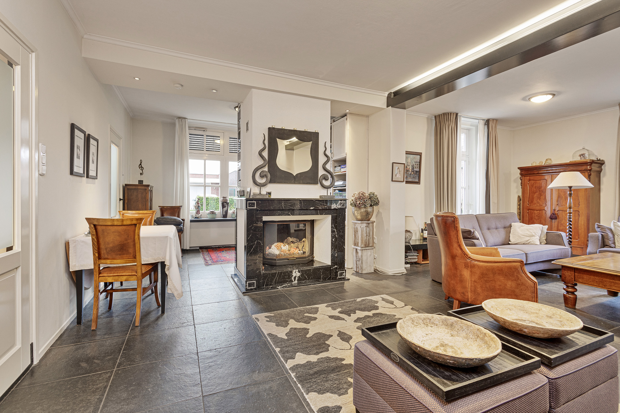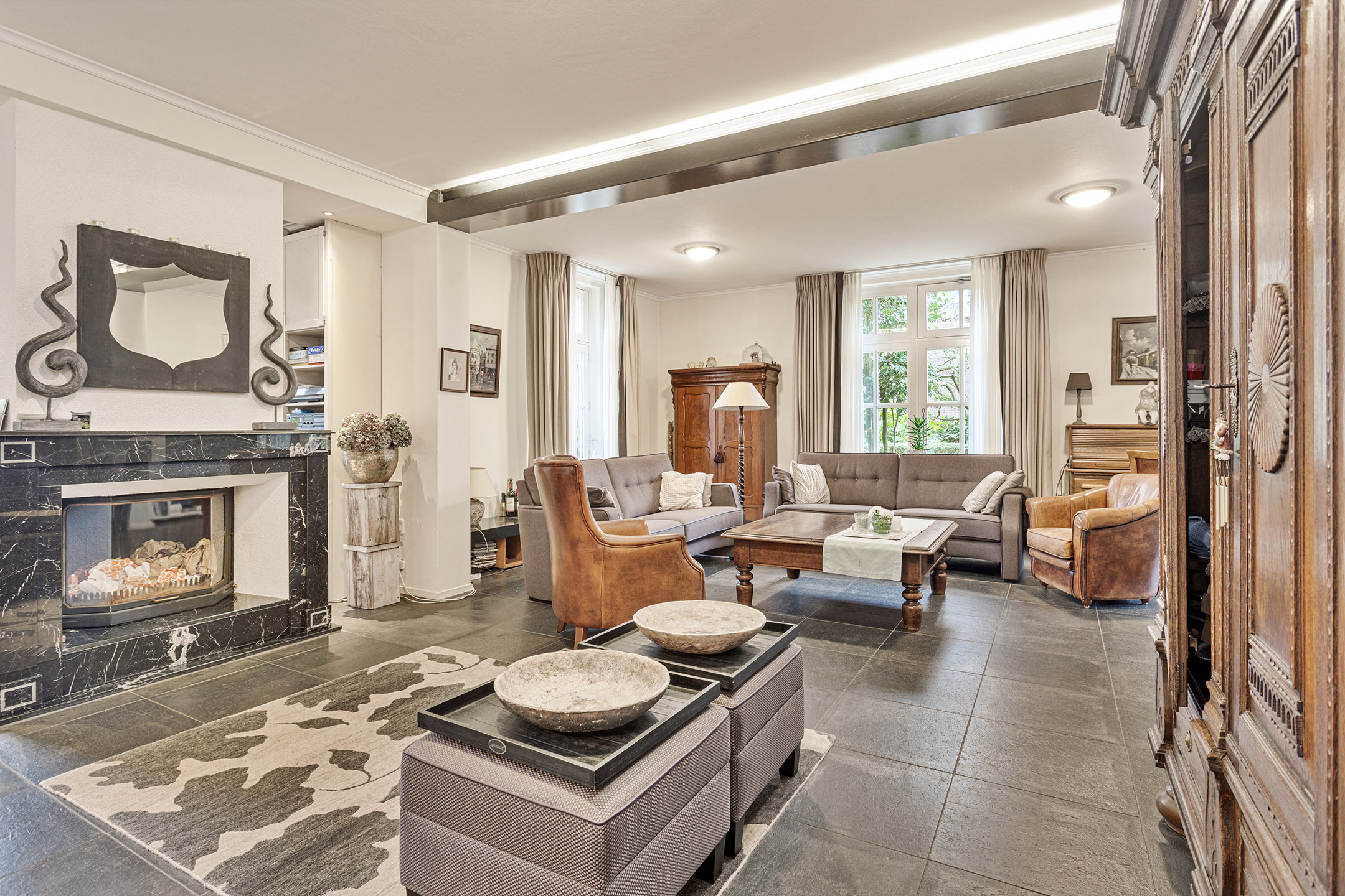 Begane grond: entree, hal, meterkast, woonkamer met vloerverwarming, een leistenen vloer en een open haard, toegang via de openslaande deuren naar de tuinkamer met een open haard en schuifpui welke…
