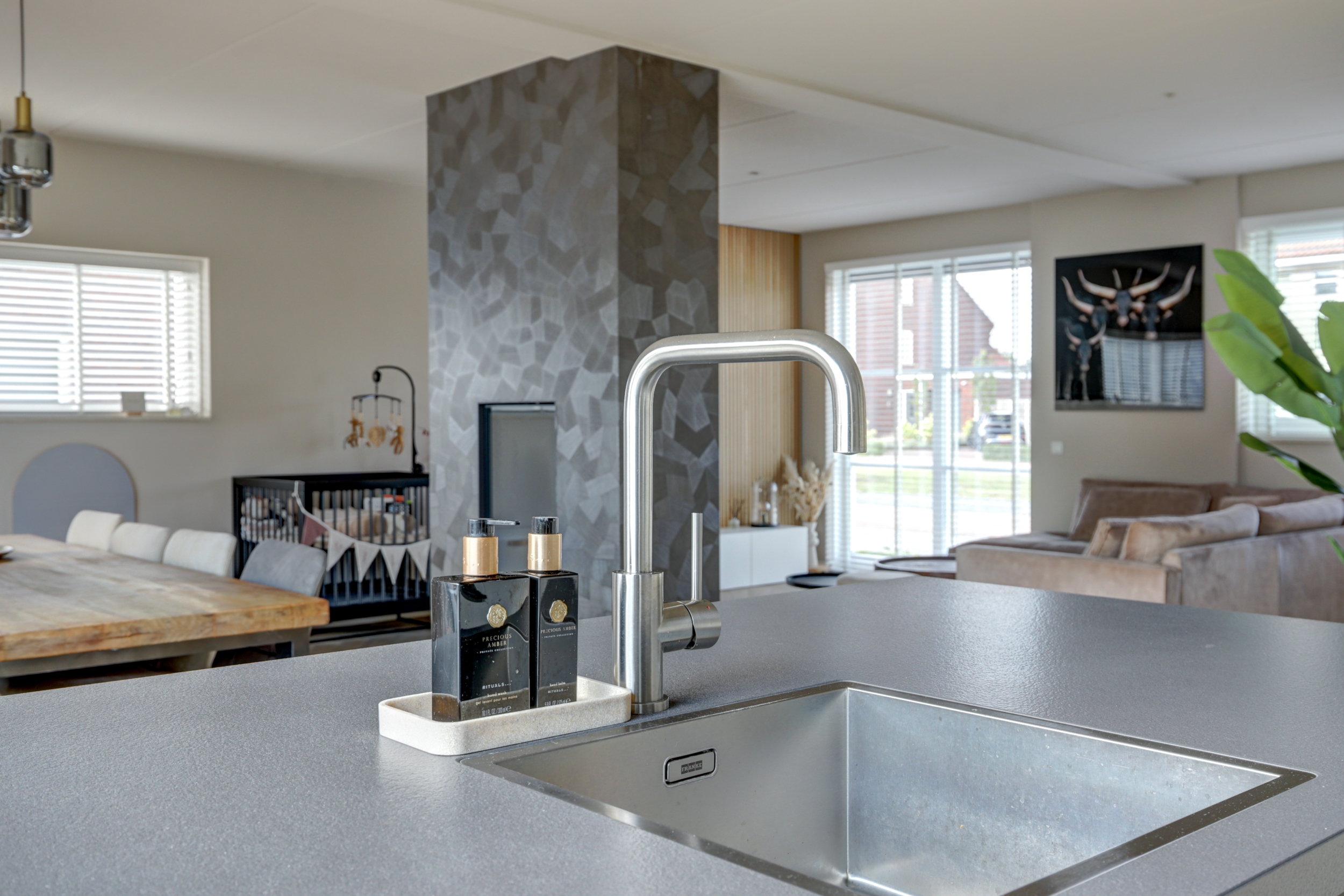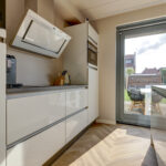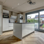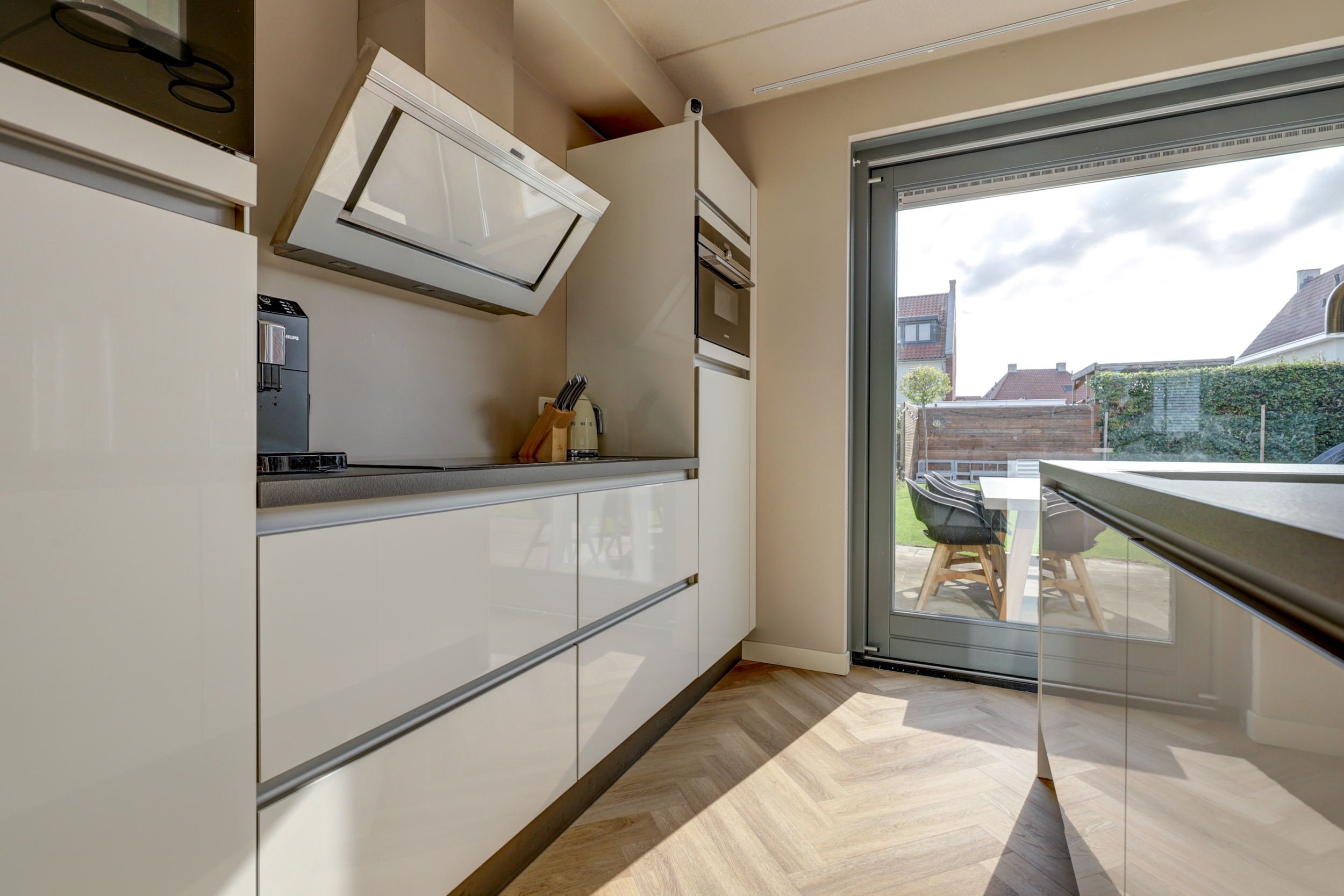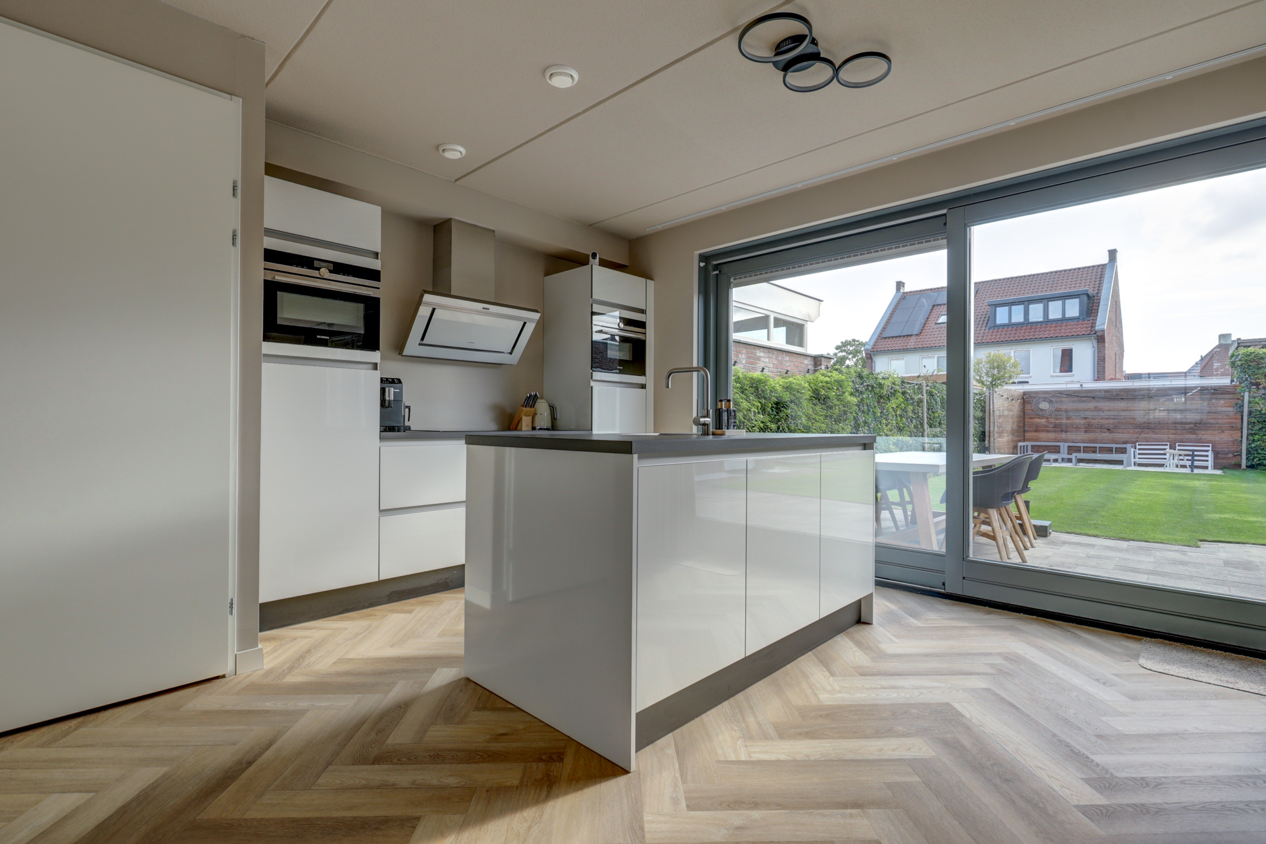De keuken is voorzien van Siemens inbouwapparatuur met o.a. een inductiekookplaat, afzuigkap, vaatwasser, combioven, stoomoven, koelkast en vriezer.