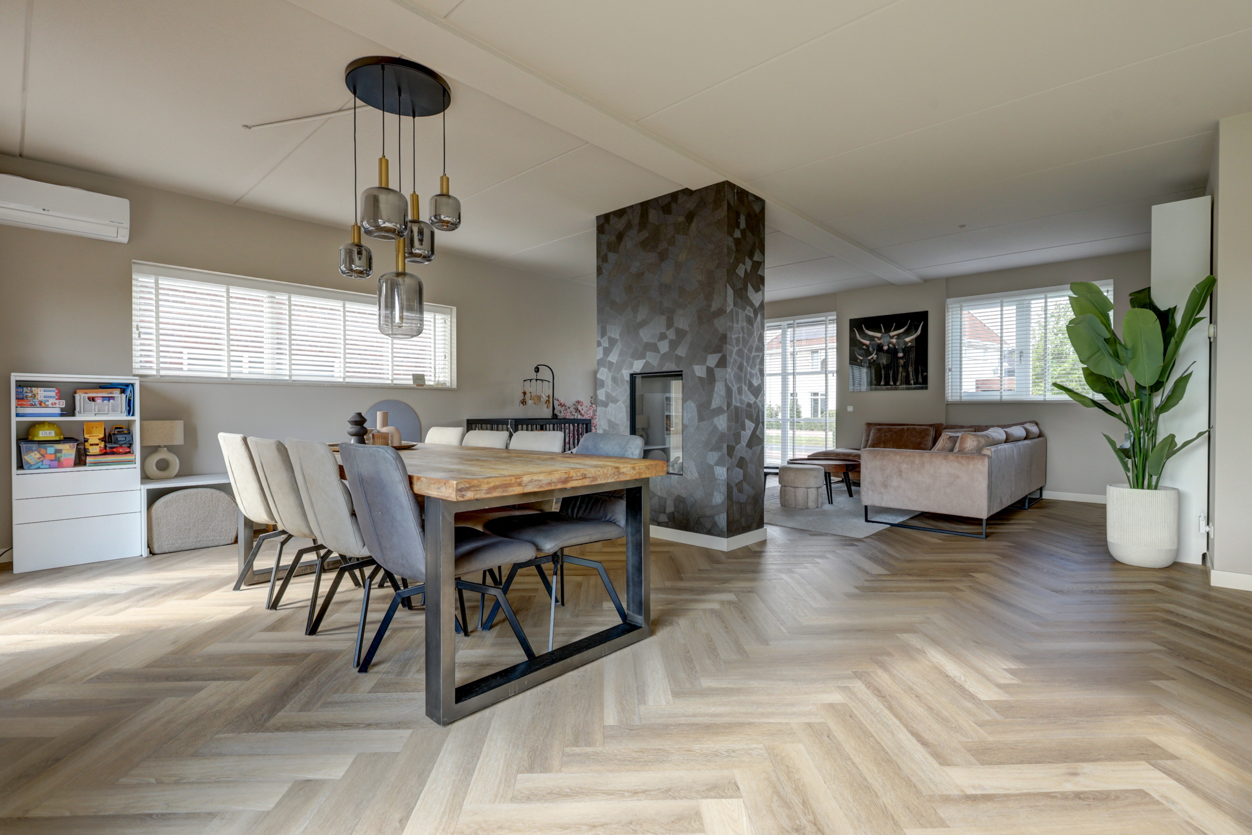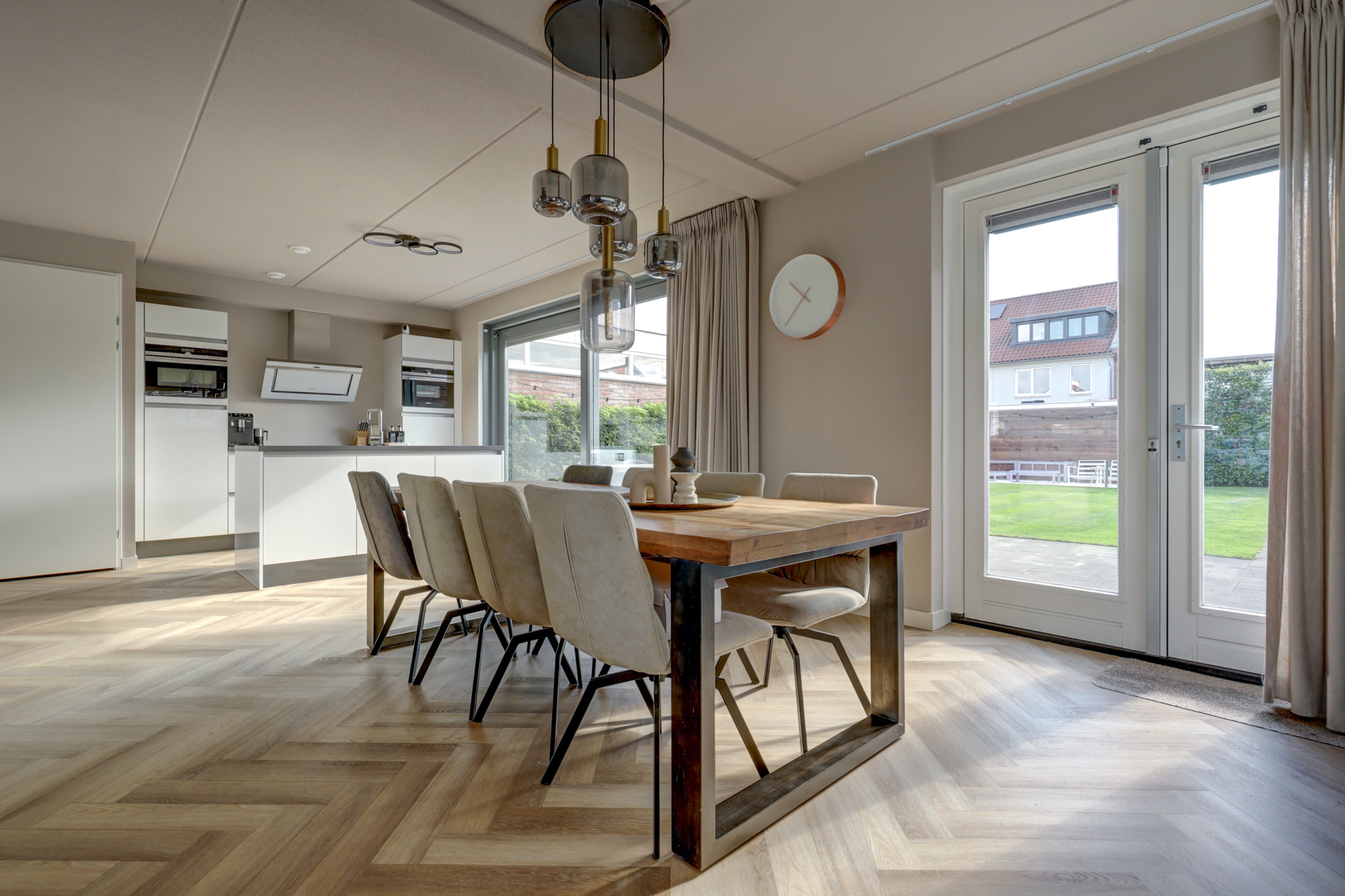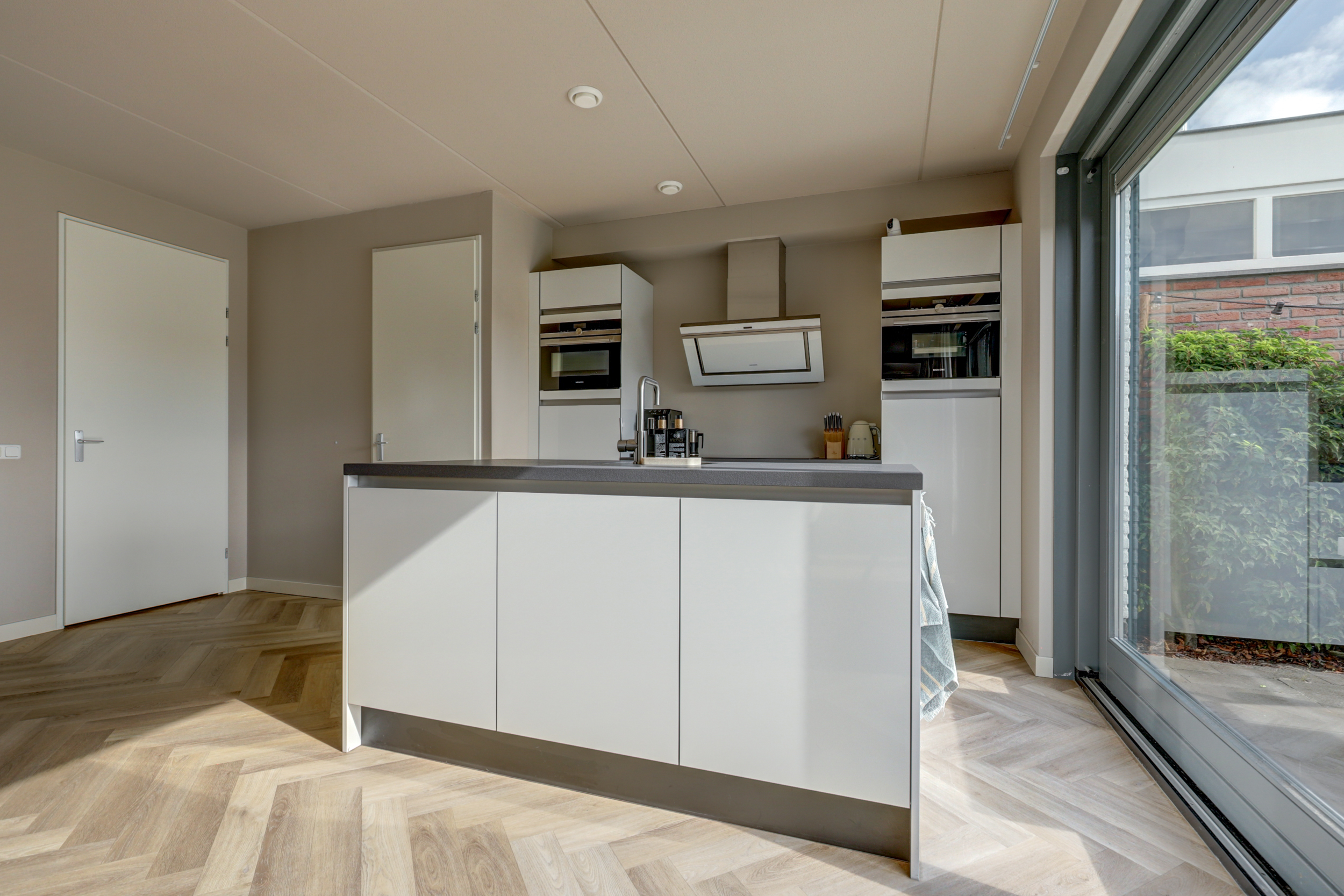 De keuken is voorzien van Siemens inbouwapparatuur met o.a. een inductiekookplaat, afzuigkap, vaatwasser, combioven, stoomoven, koelkast en vriezer.