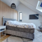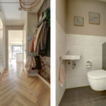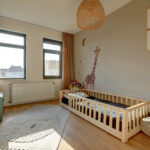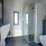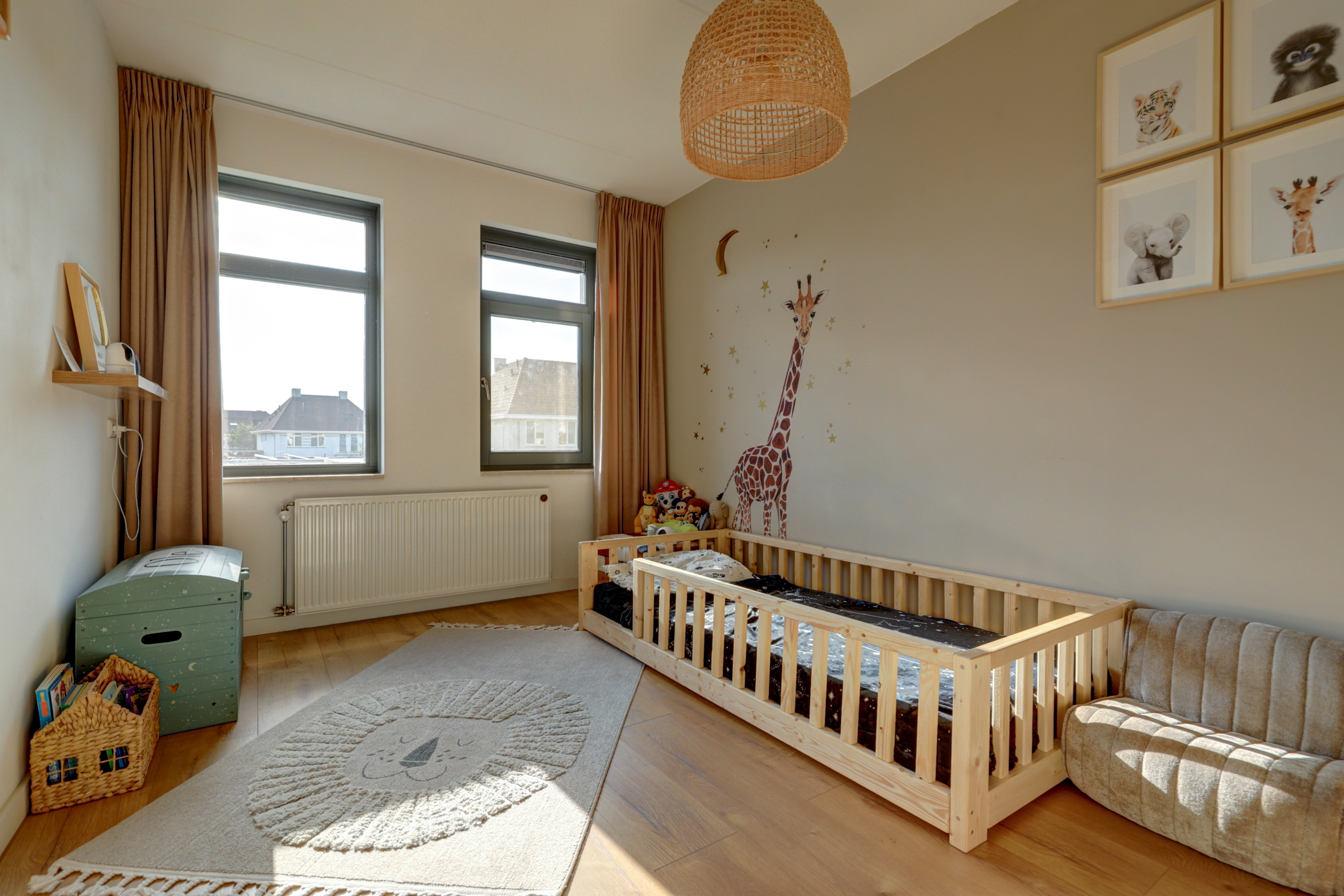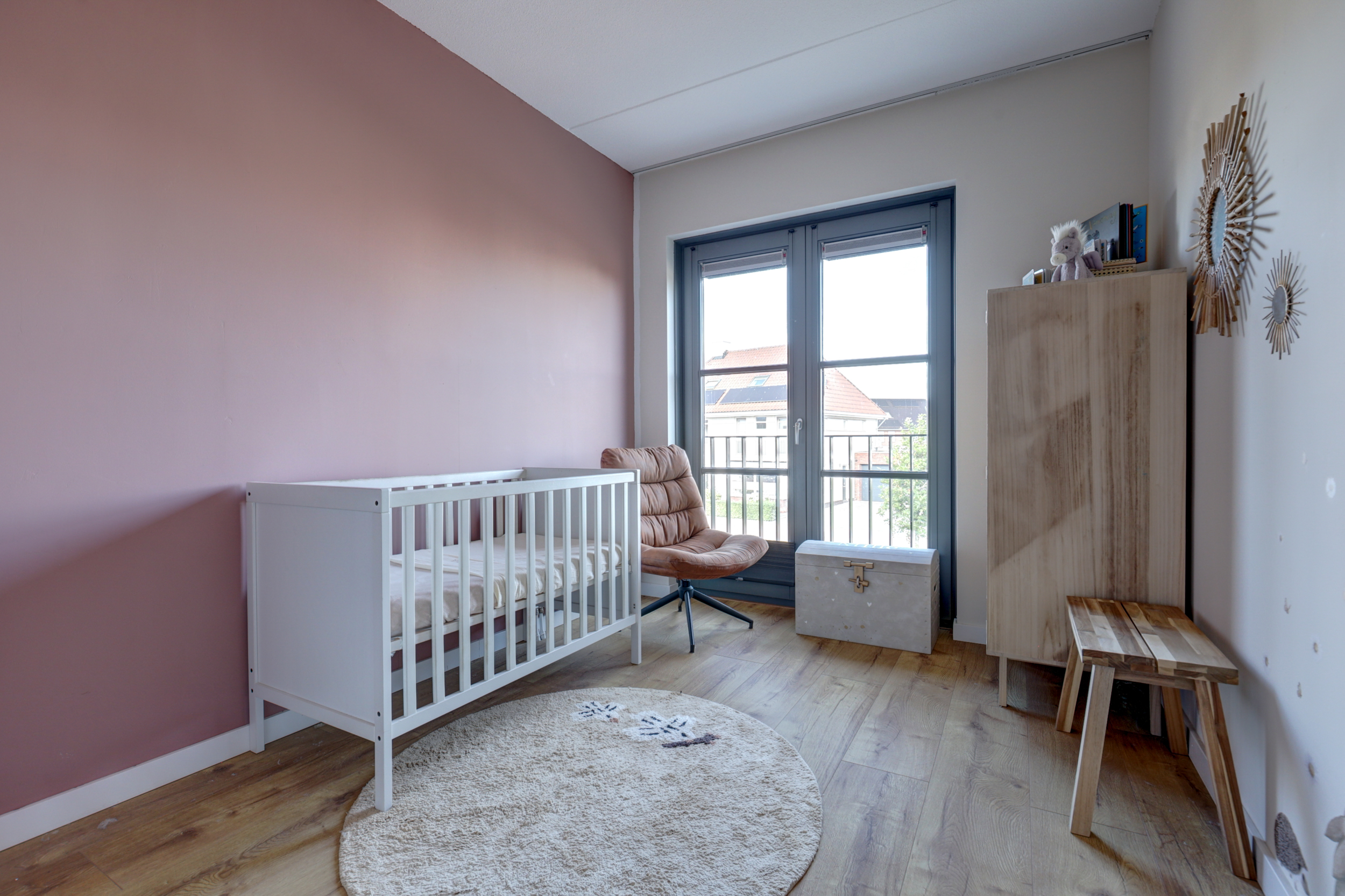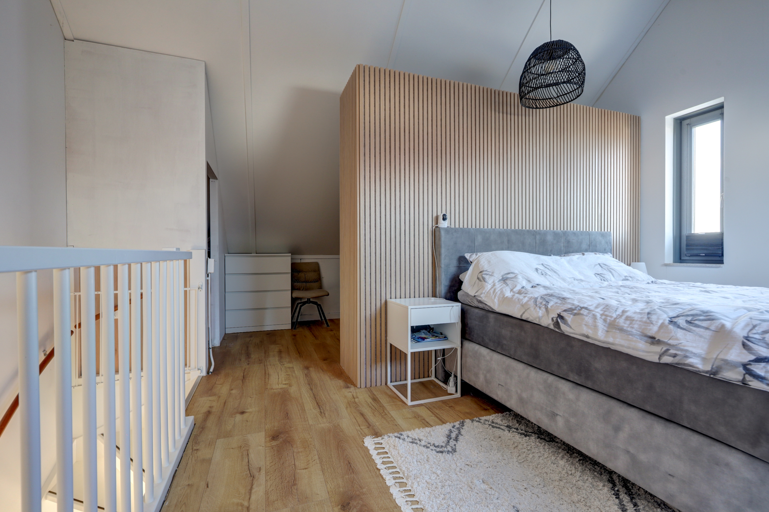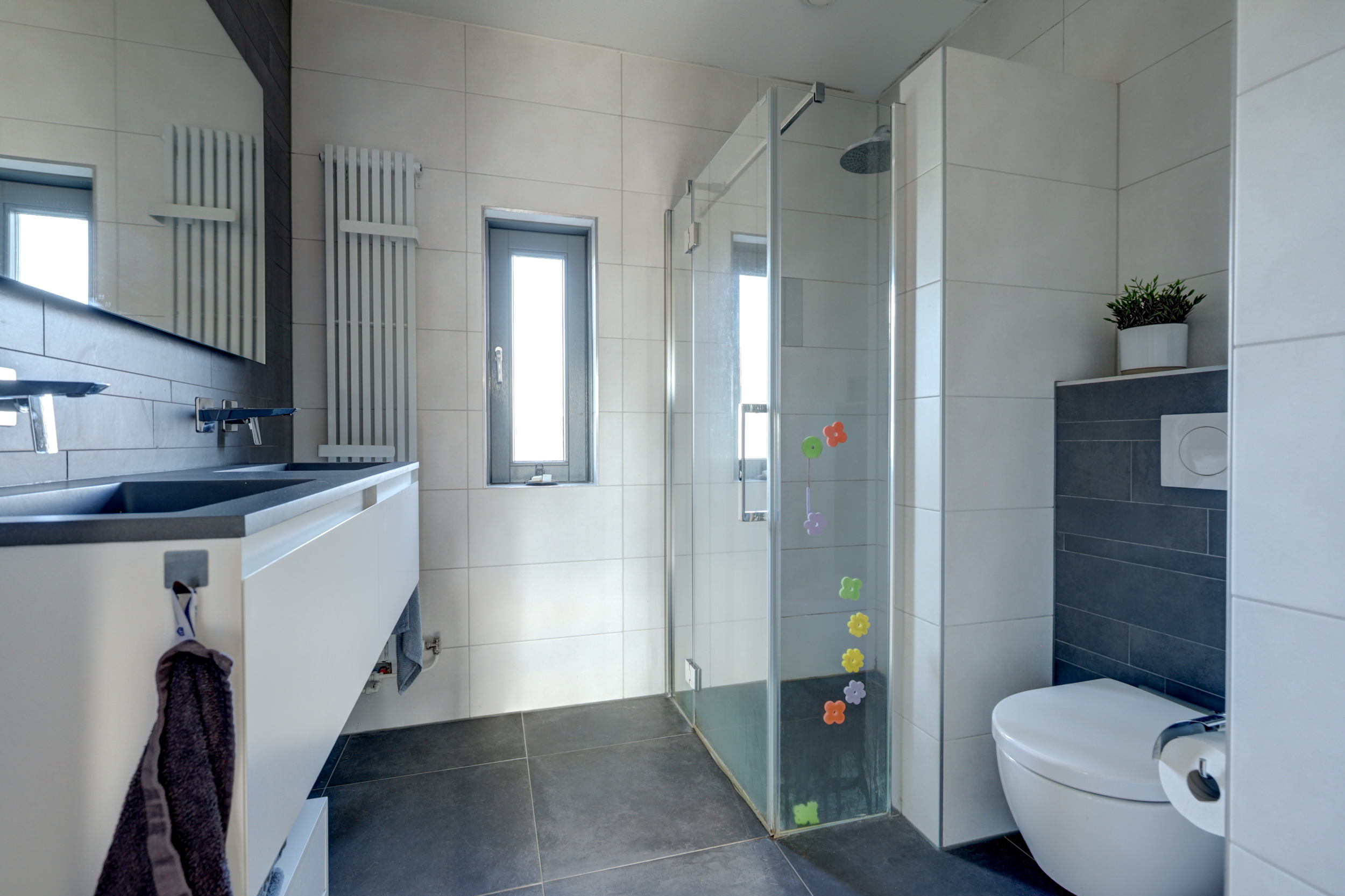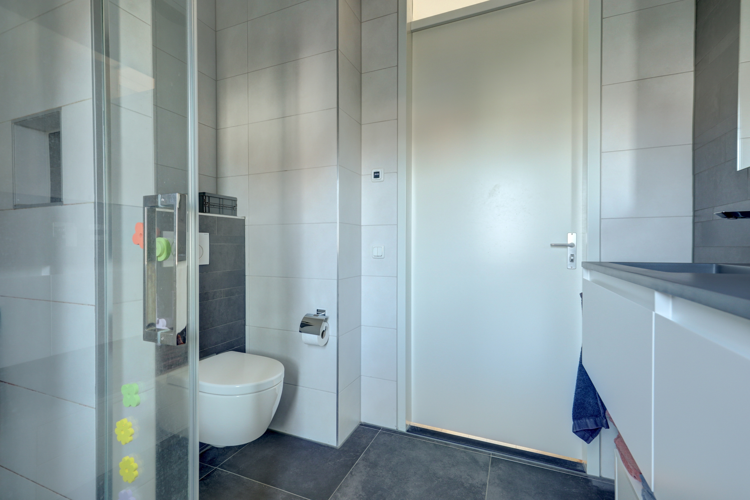 1e verdieping: overloop, 3 slaapkamers, waarvan 1 slaapkamer is voorzien van een Frans balkon met openslaande deuren. Luxe badkamer voorzien van een inloopdouche, wandcloset, dubbele wastafel met meubel en vloerverwarming.