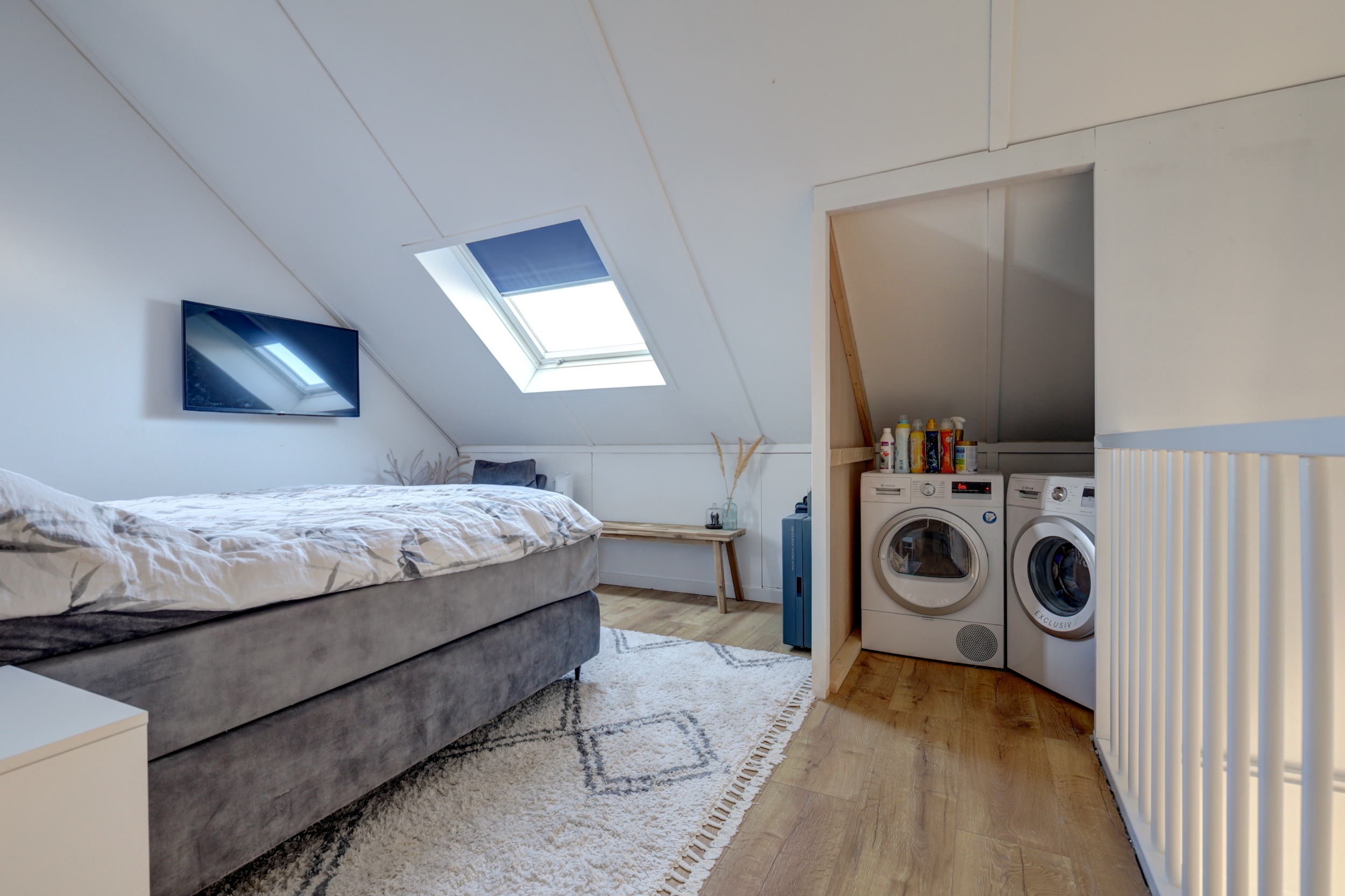 2e verdieping: middels vaste trap te bereiken zolderverdieping met de witgoedaansluitingen, ventilatie-unit en een dakraam. Hier kan eenvoudig een vierde slaapkamer gerealiseerd worden.